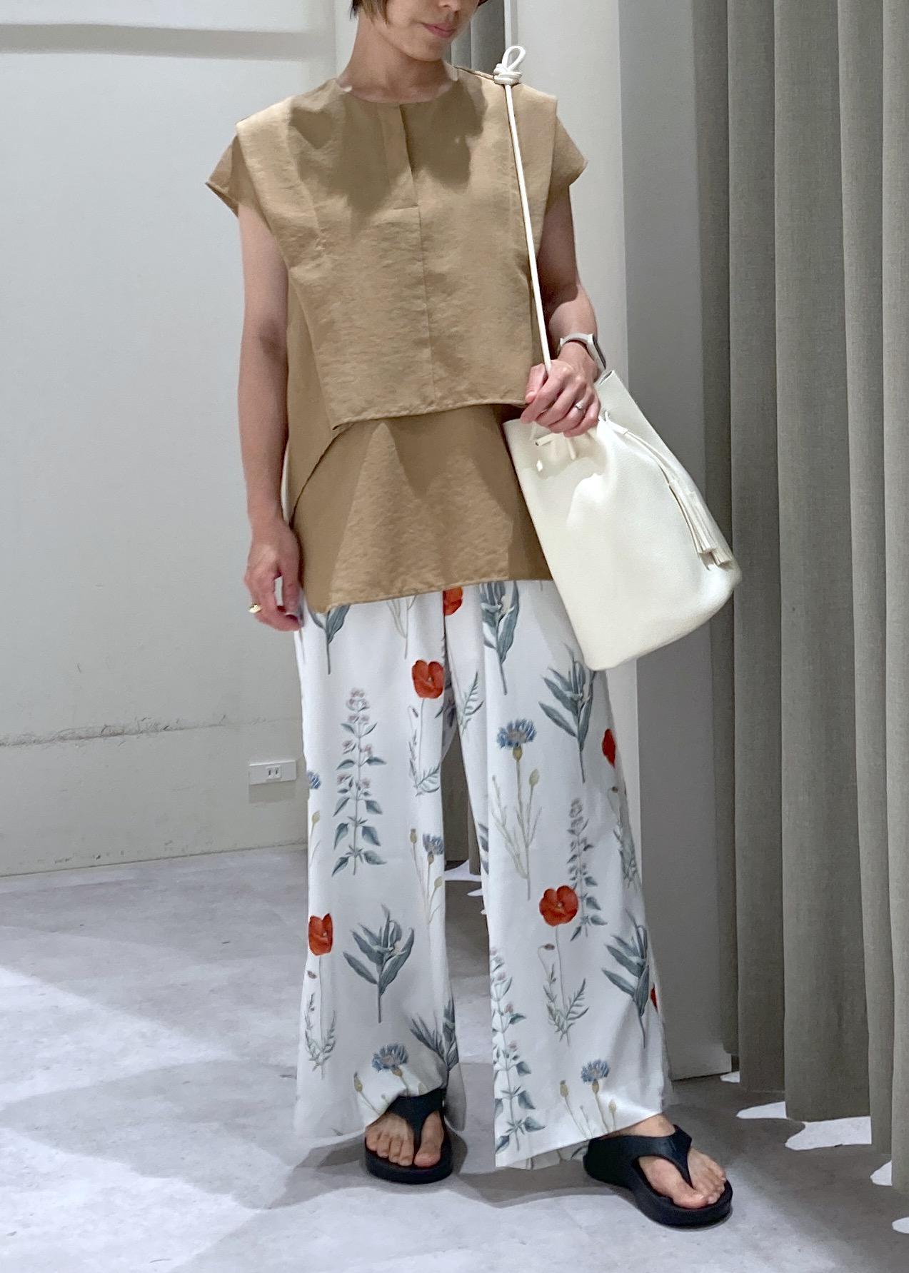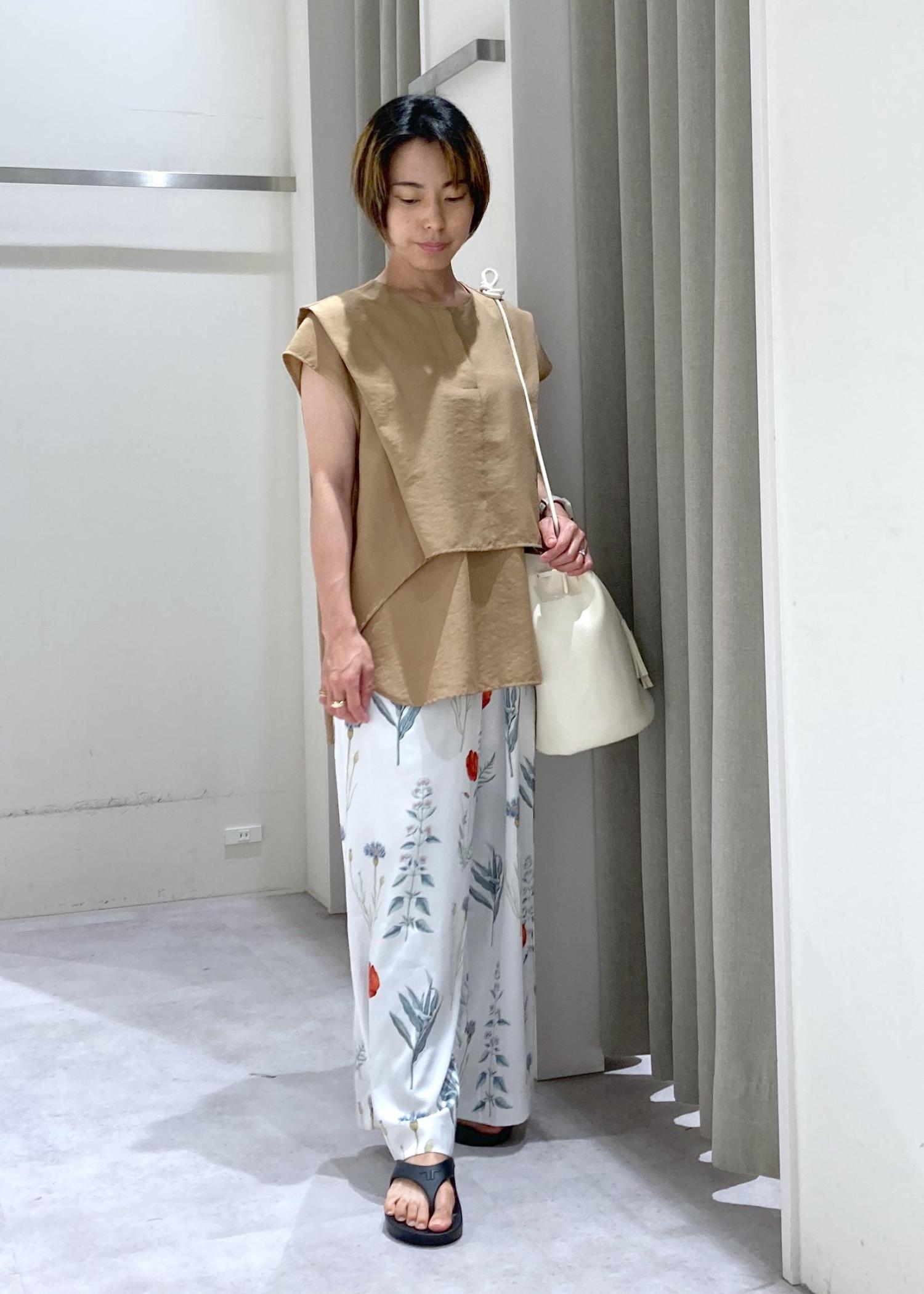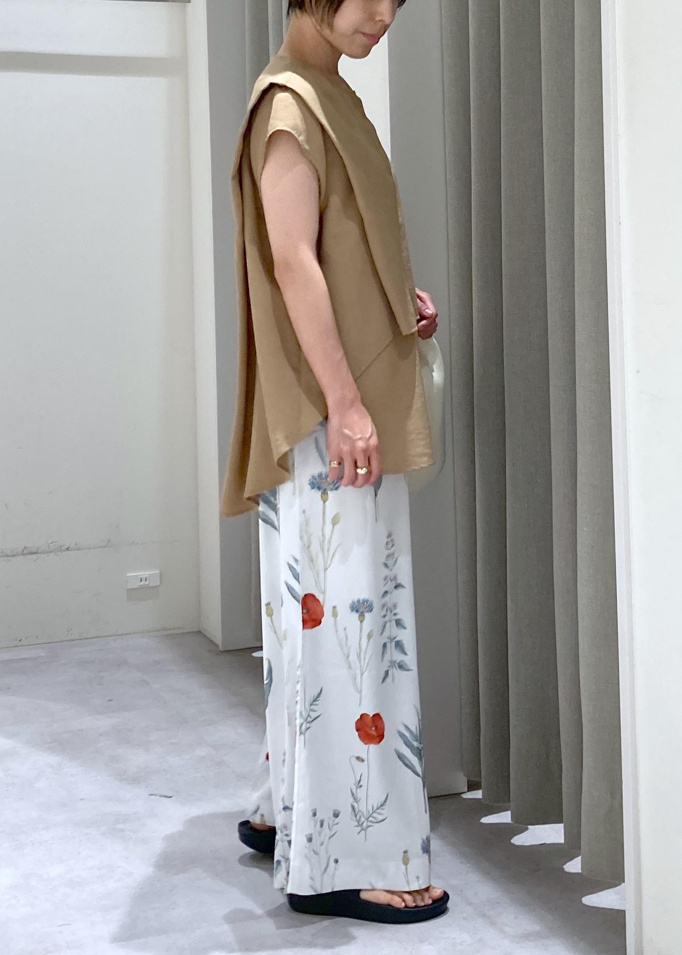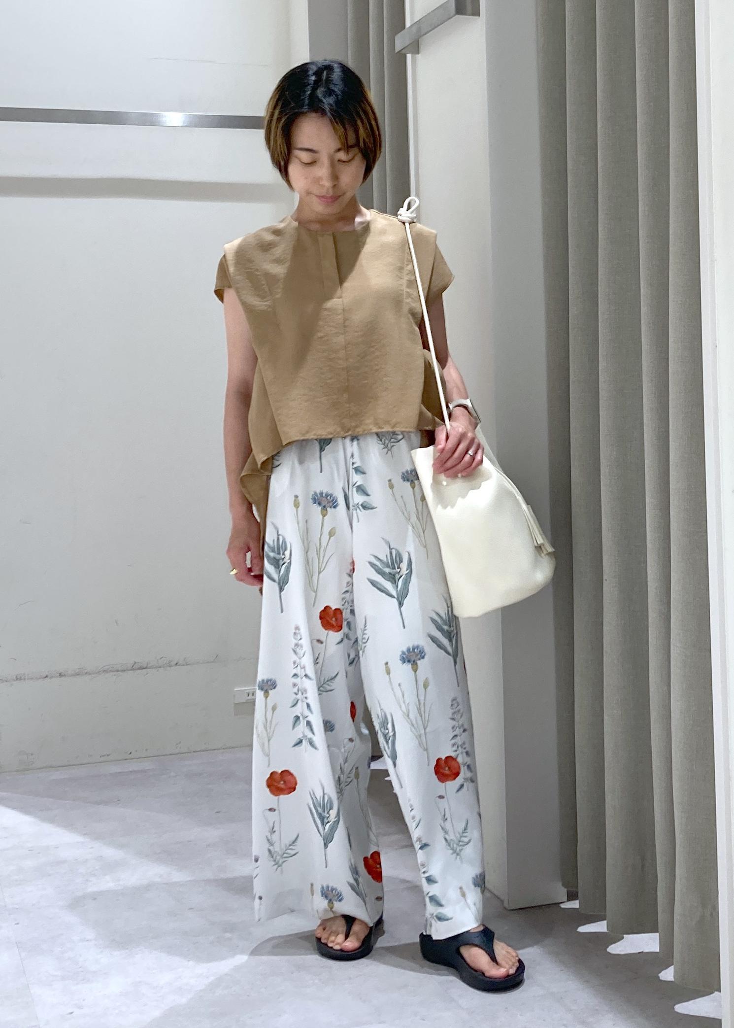 植物の柄なので、Topsはキャメルカラーでアースカラーを意識。