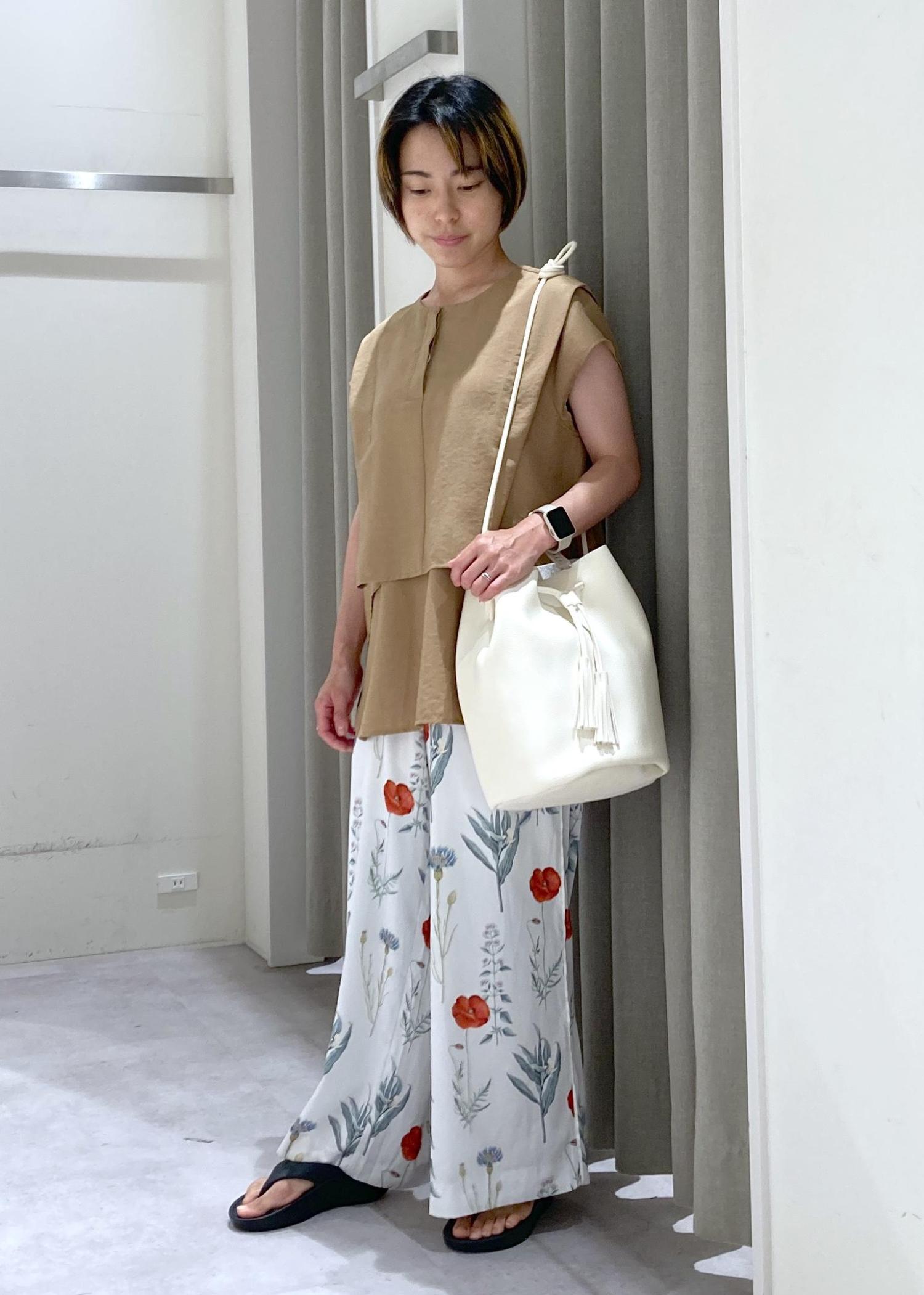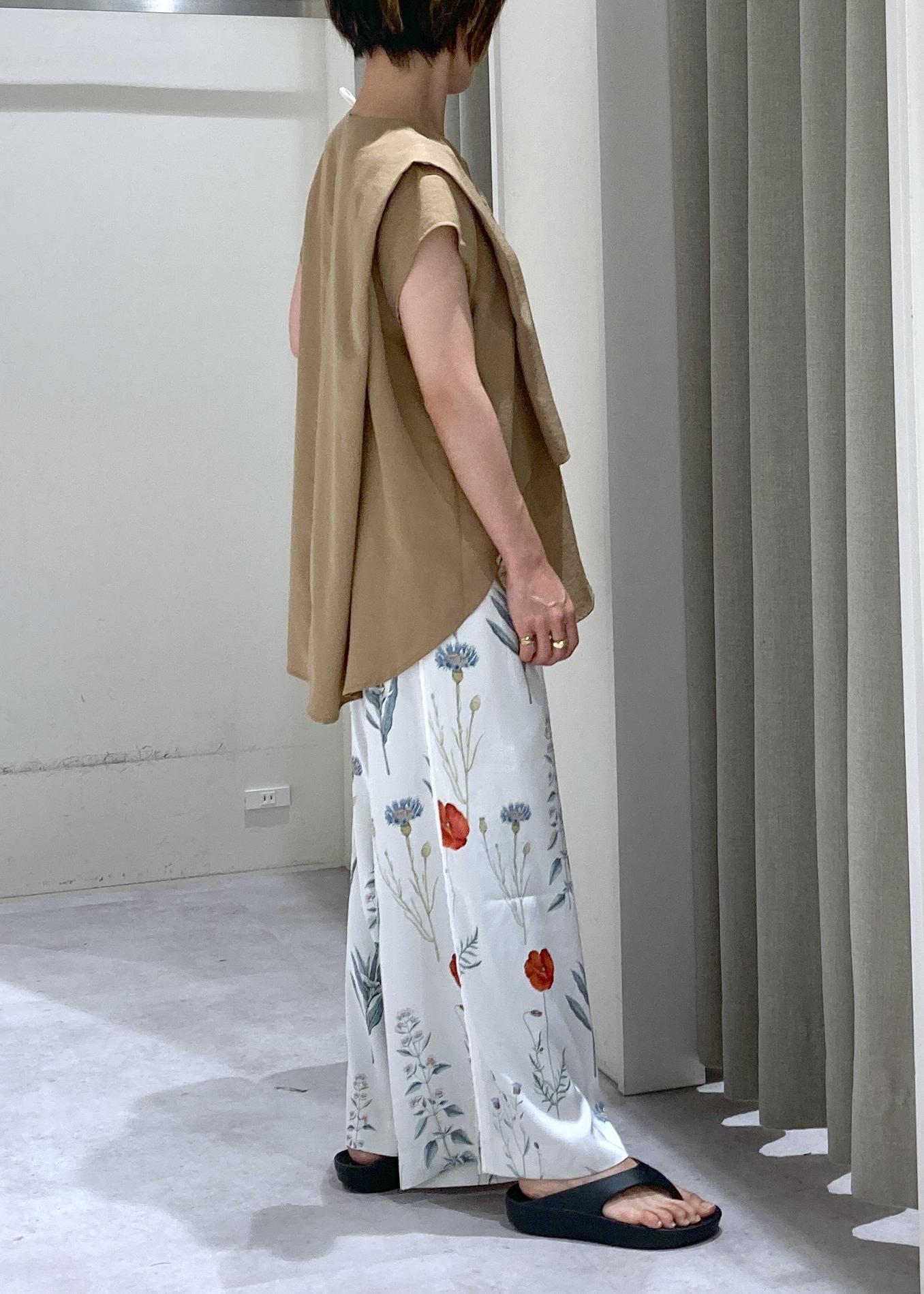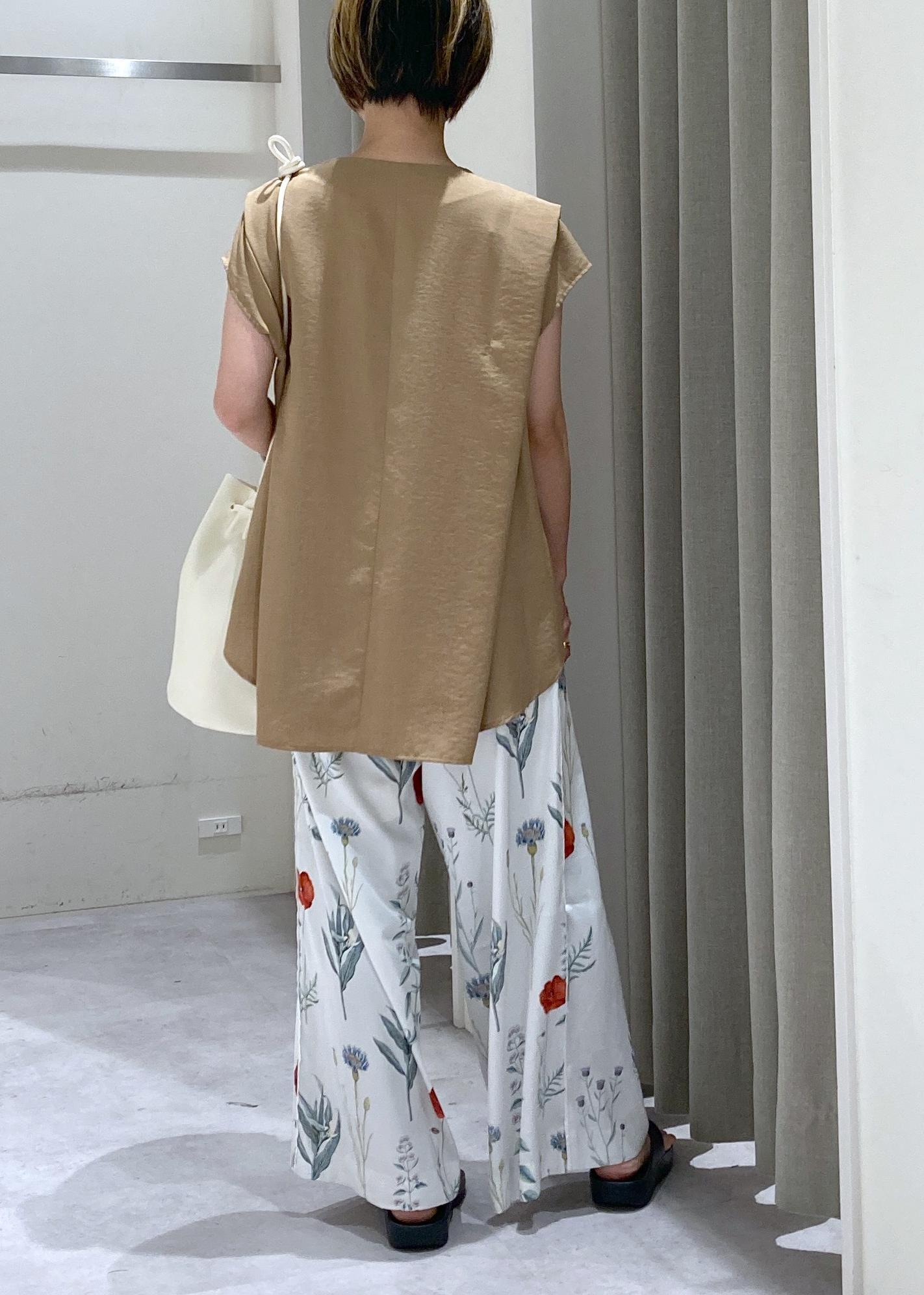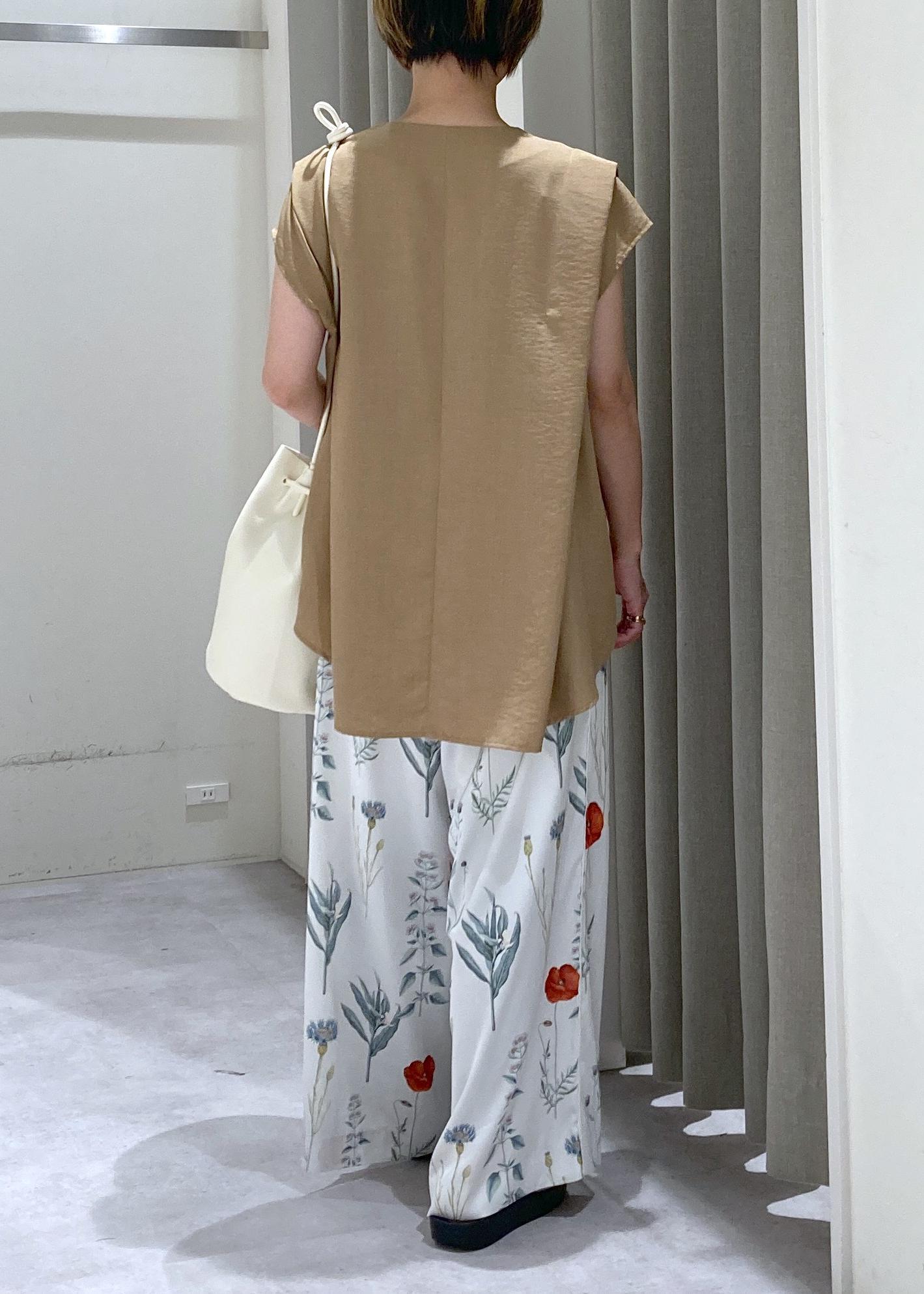 植物の柄なので、Topsはキャメルカラーでアースカラーを意識。