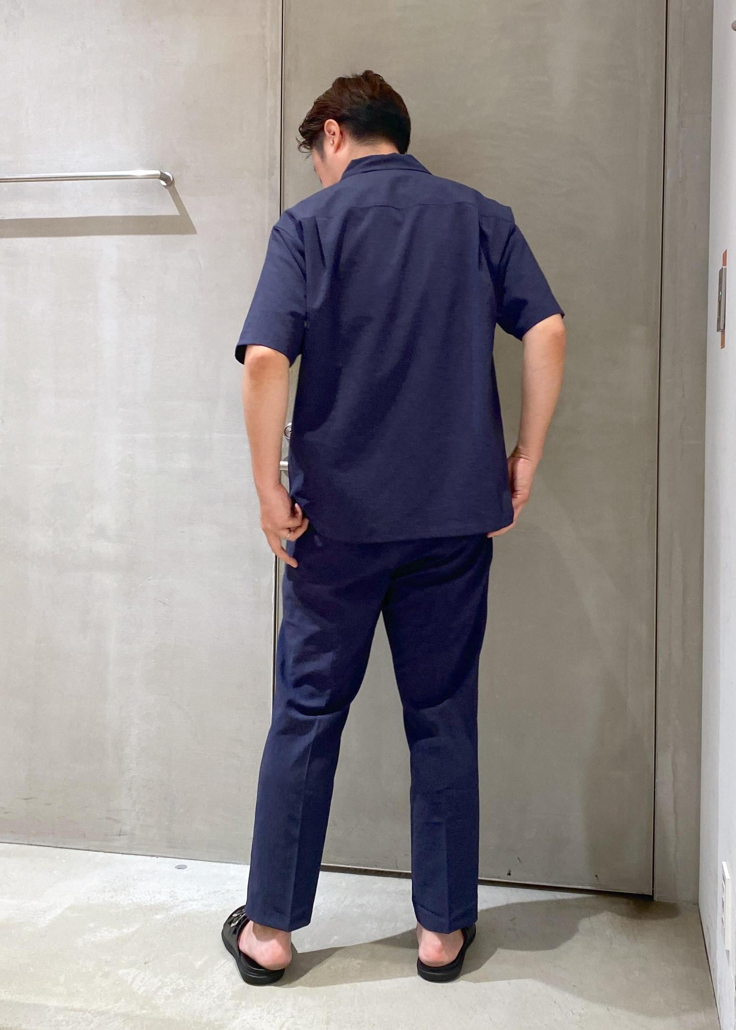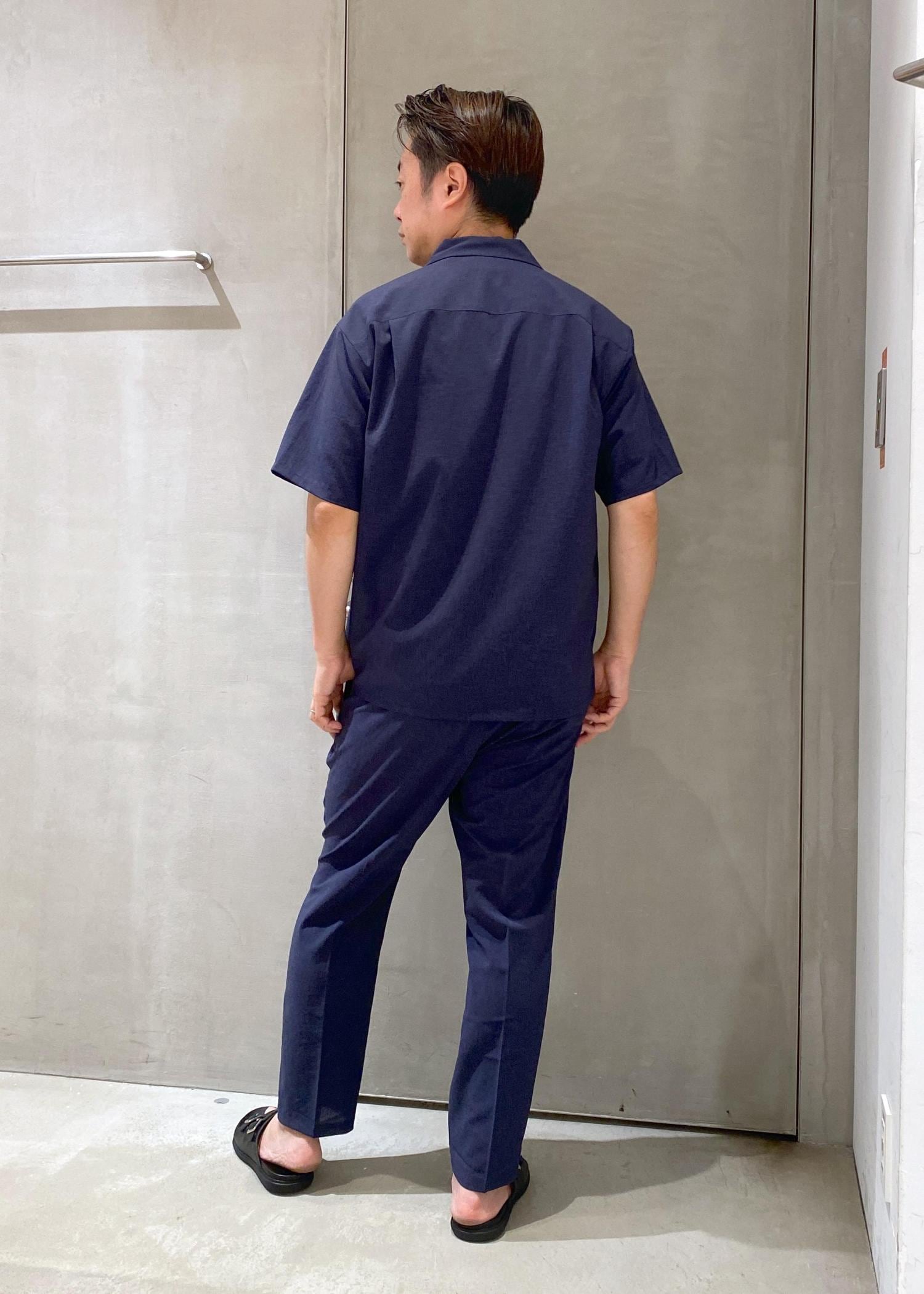 ADAM ET ROPÉ HOMME【RIRANCHA】サマーセットアップ / オープンカラーシャツ & スラックス / イージーケア / 接触冷感 / 吸水速乾ネイビー系 / XL¥17,930レビュー・182cmの体格の良い私はLLサイズを着用。
