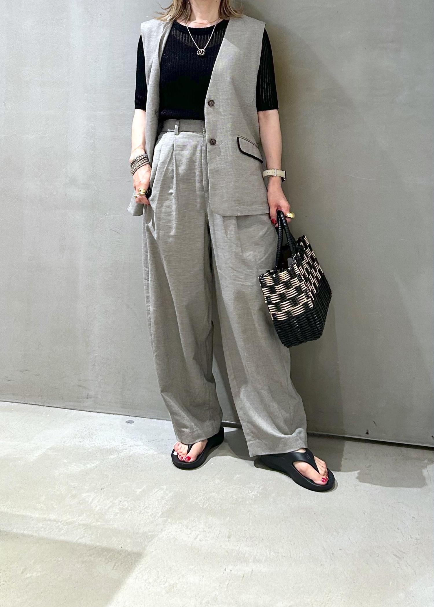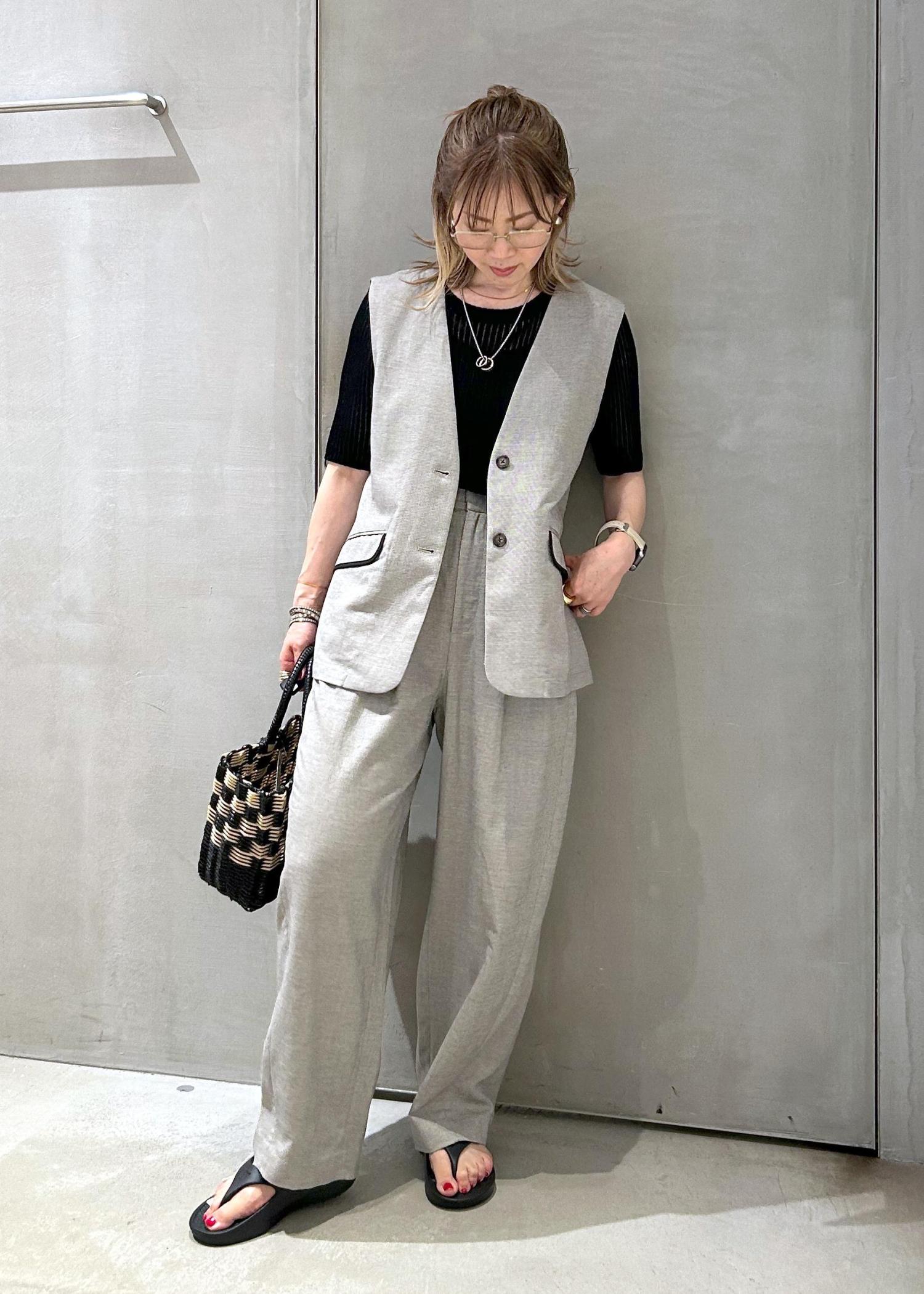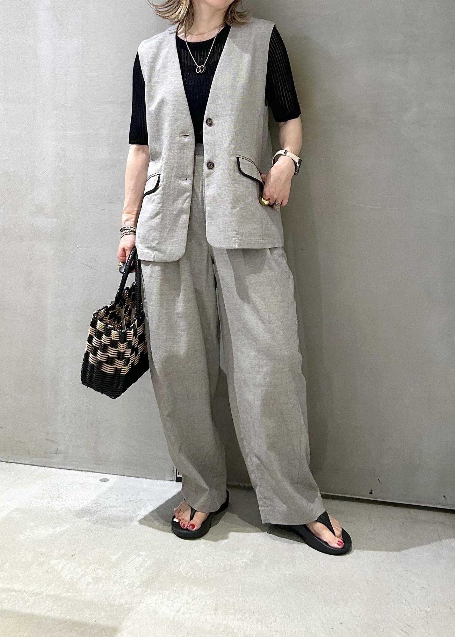 夏のレイヤードにオススメのジレをセットアップで着用しました。