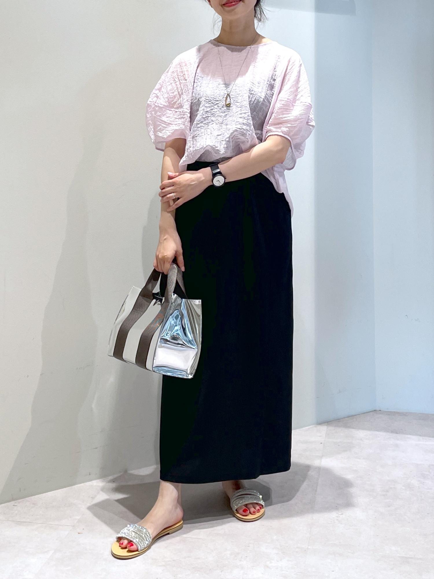 女性らしい柔らかな印象のドルマンブラウスを使ったコーディネートです。