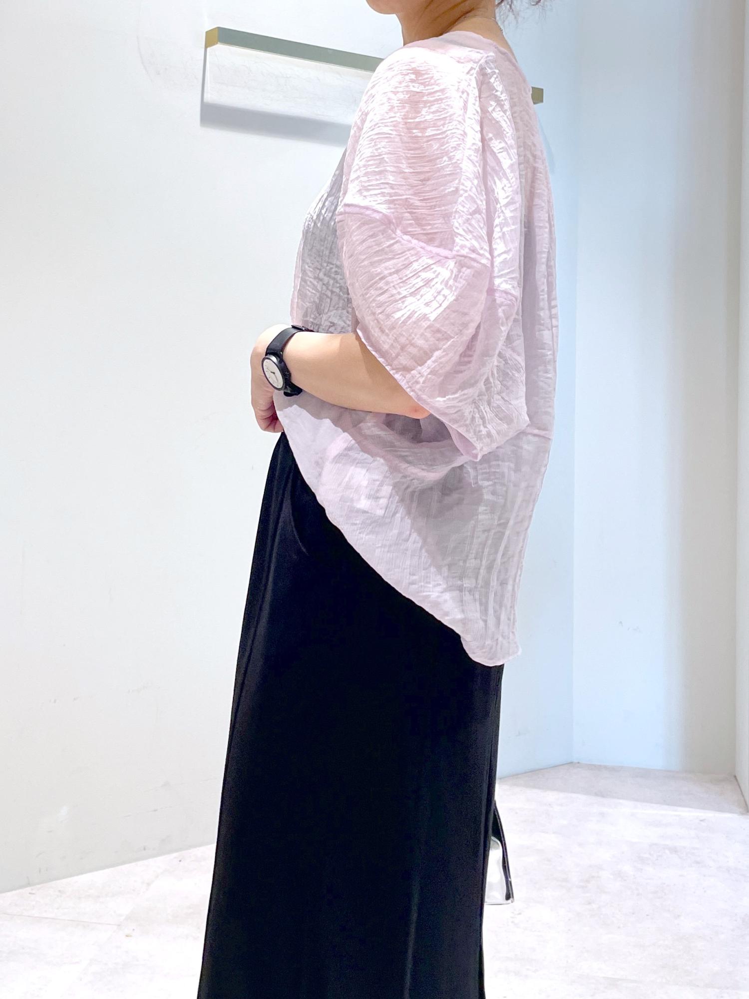 透け感も気にならず、綺麗めブラウスにもカジュアルTシャツにも、様々なテイストに合わせやすい万能なアイテムです。
