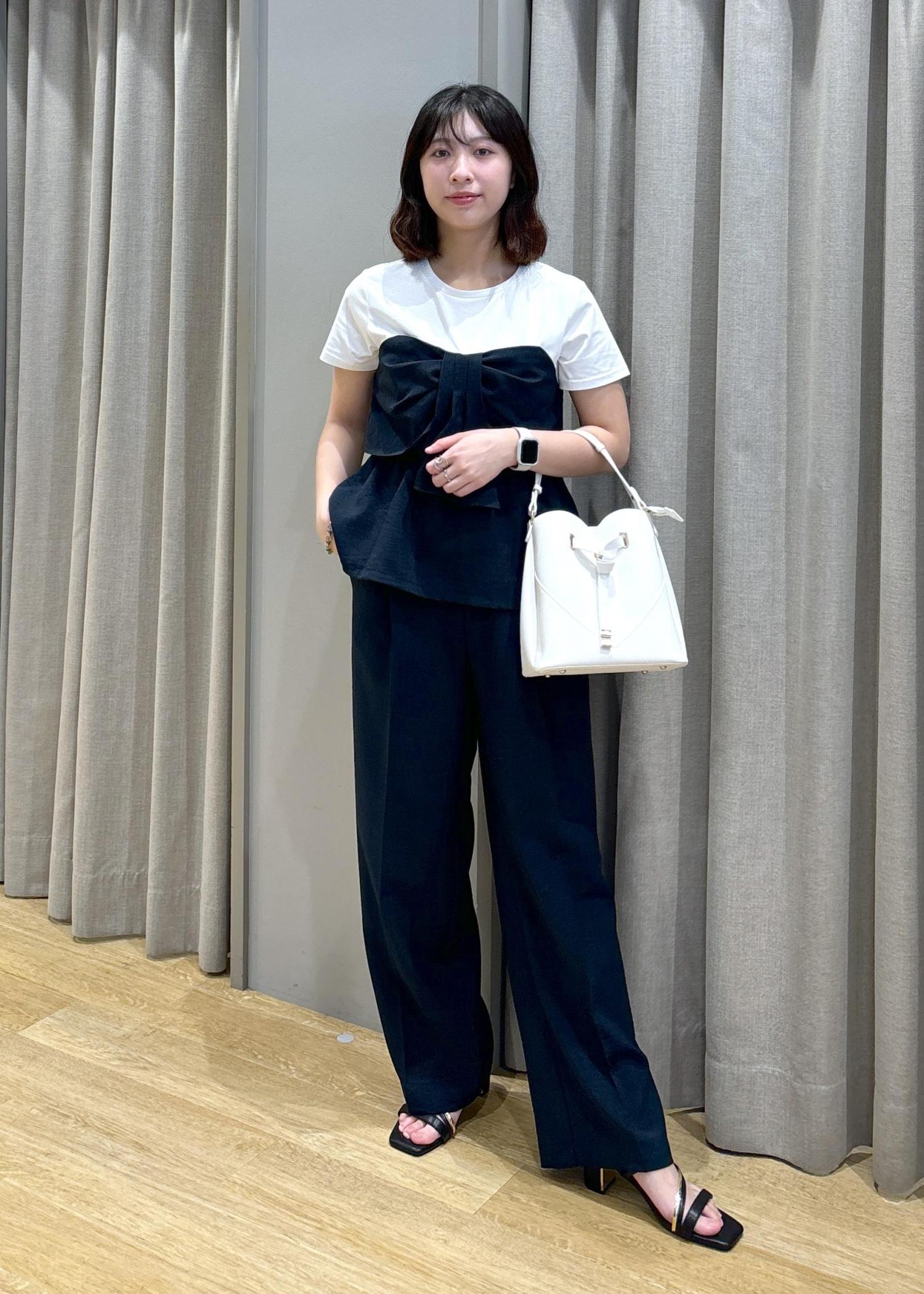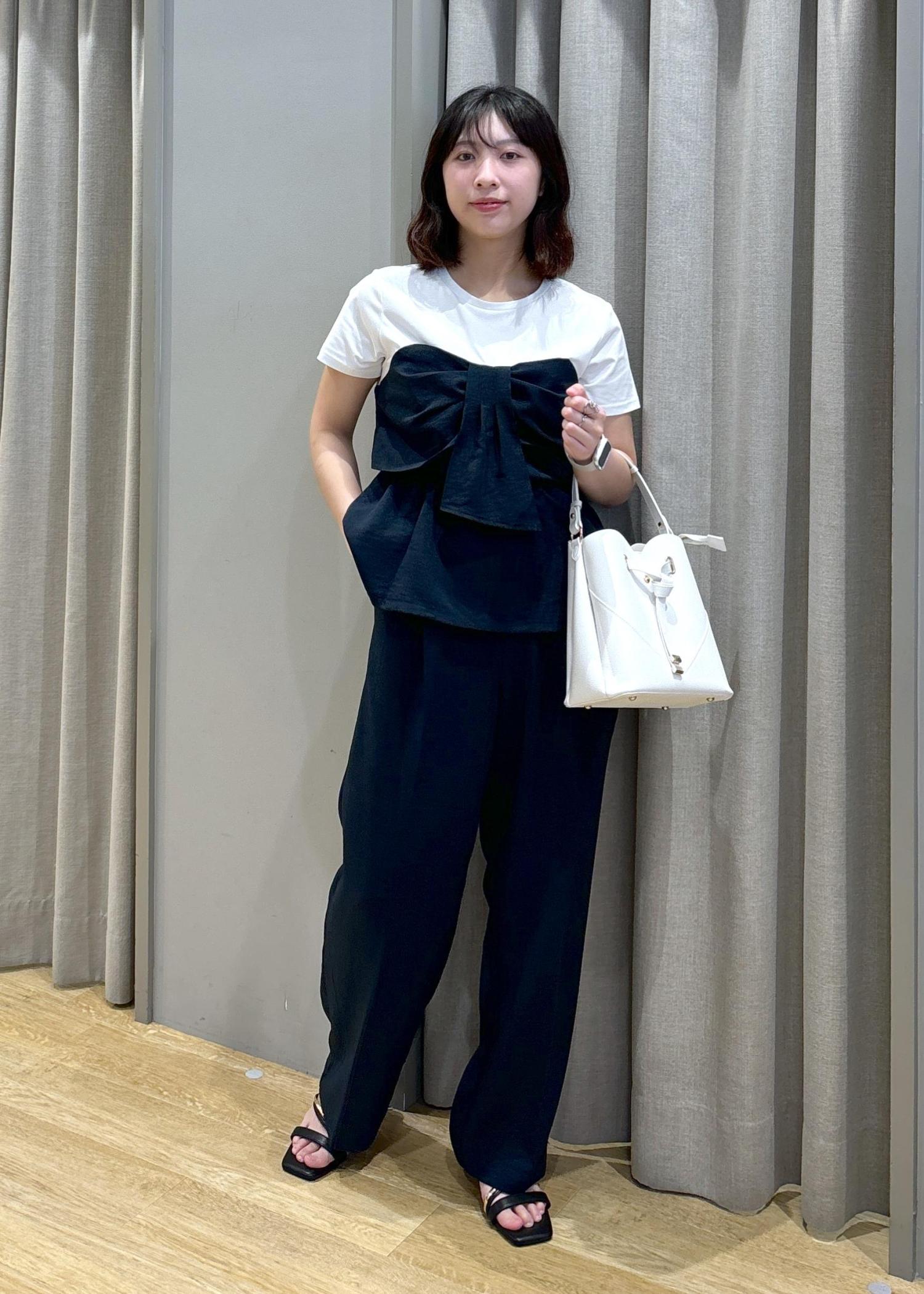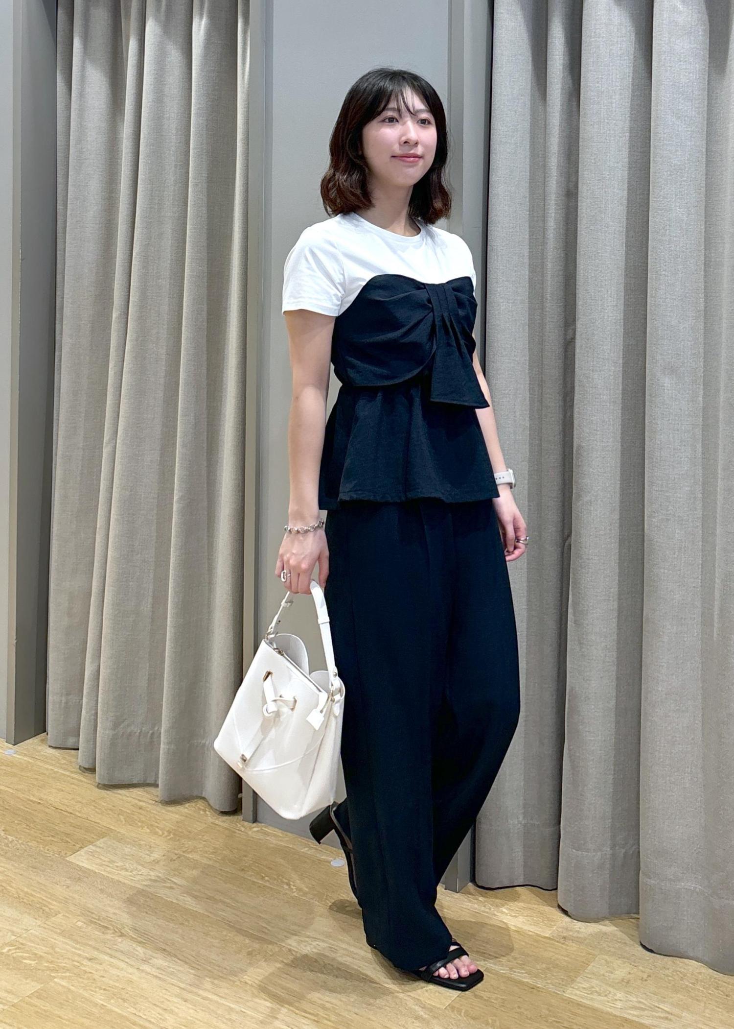 VIS【新色追加】【美easy】ねじりリボンTシャツドッキングプルオーバー【接触冷感/洗える】ネイビー / F¥5,489レビュー身長158cm、Fサイズ着用。
