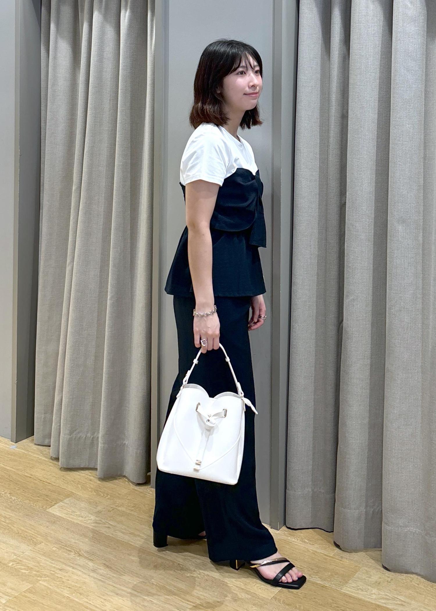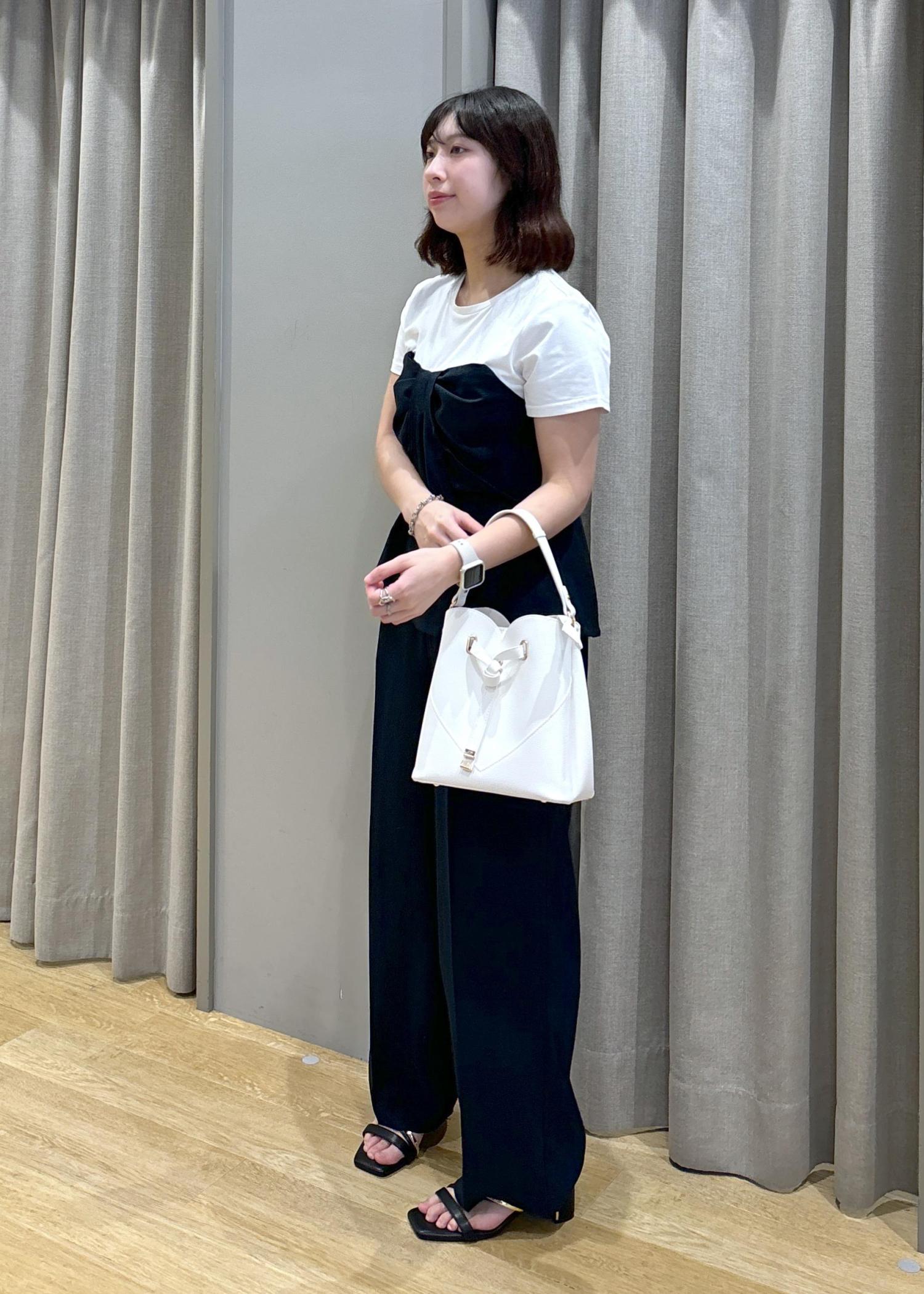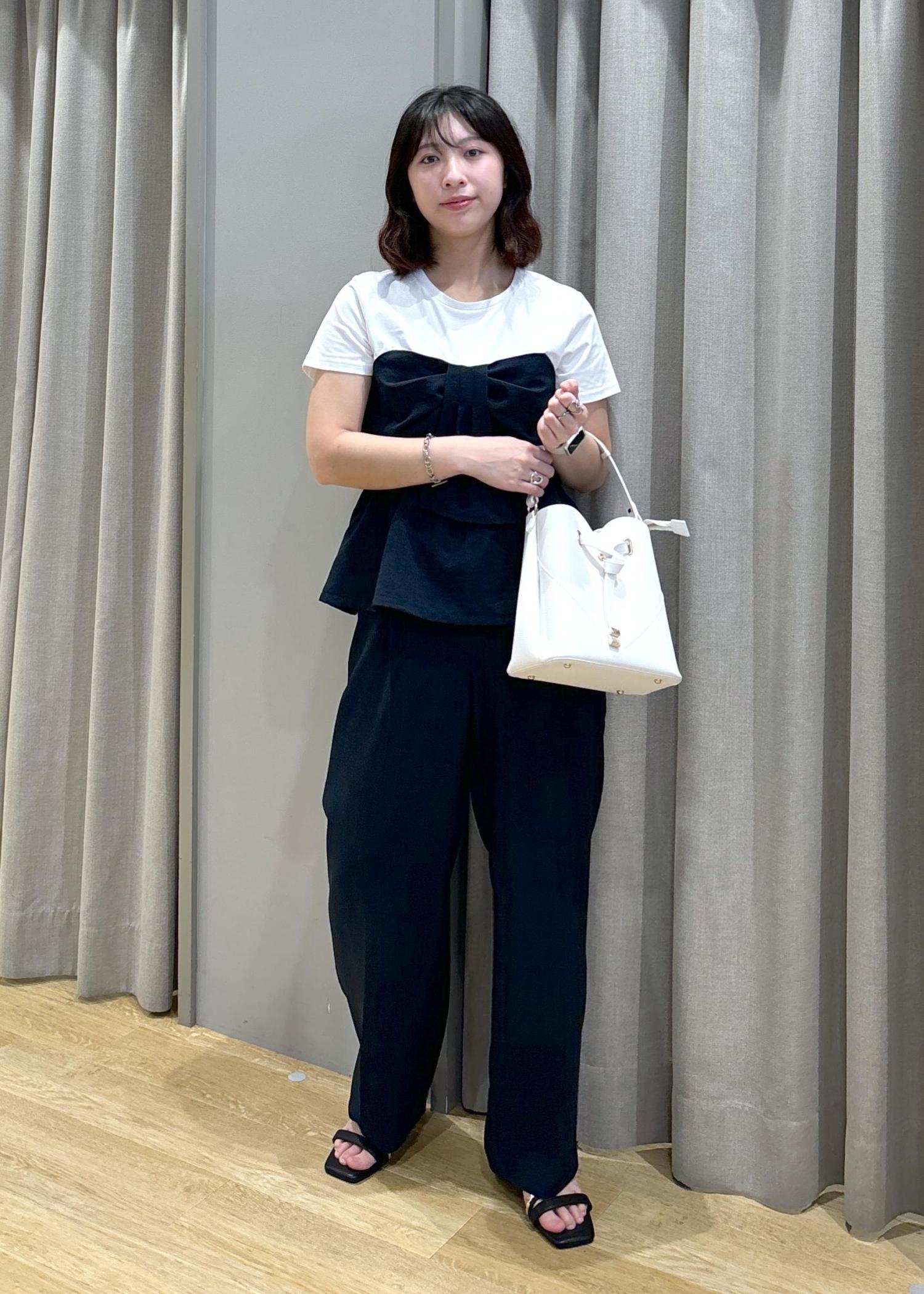 VIS【新色追加】【美easy】ねじりリボンTシャツドッキングプルオーバー【接触冷感/洗える】ネイビー / F¥5,489レビュー身長158cm、Fサイズ着用。