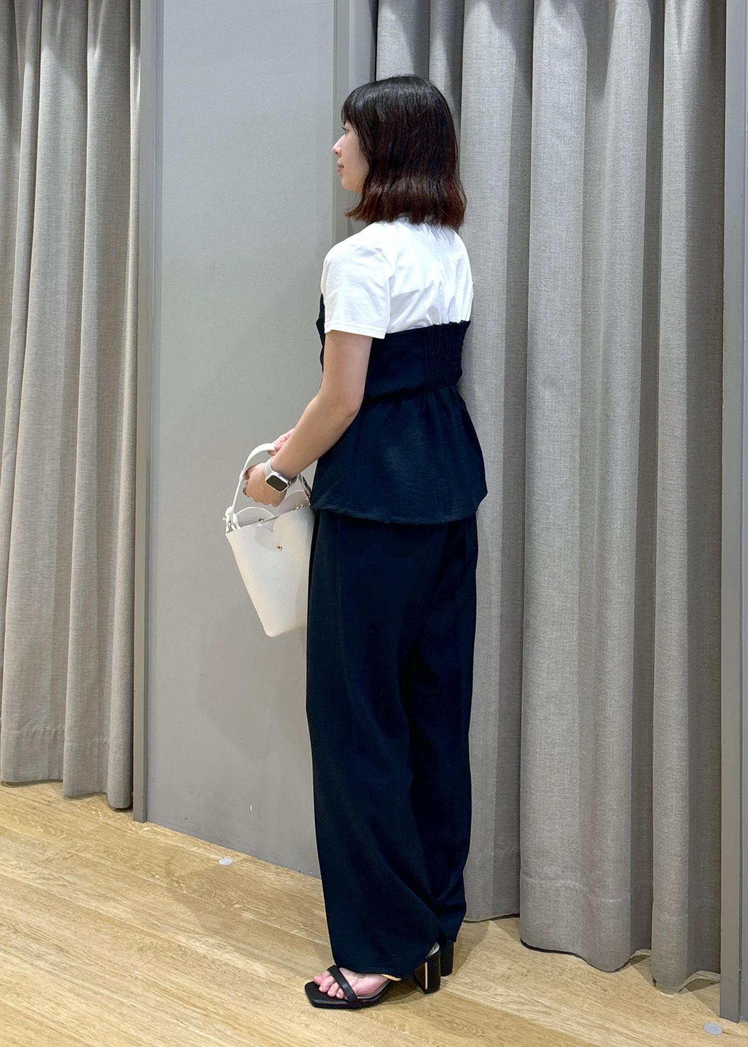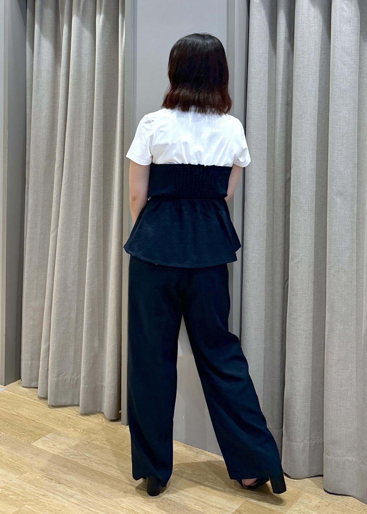 ウエストがサイドのボタンで調節できるので、サイズ選びに迷った時は着丈で選ぶのがオススメです。 -