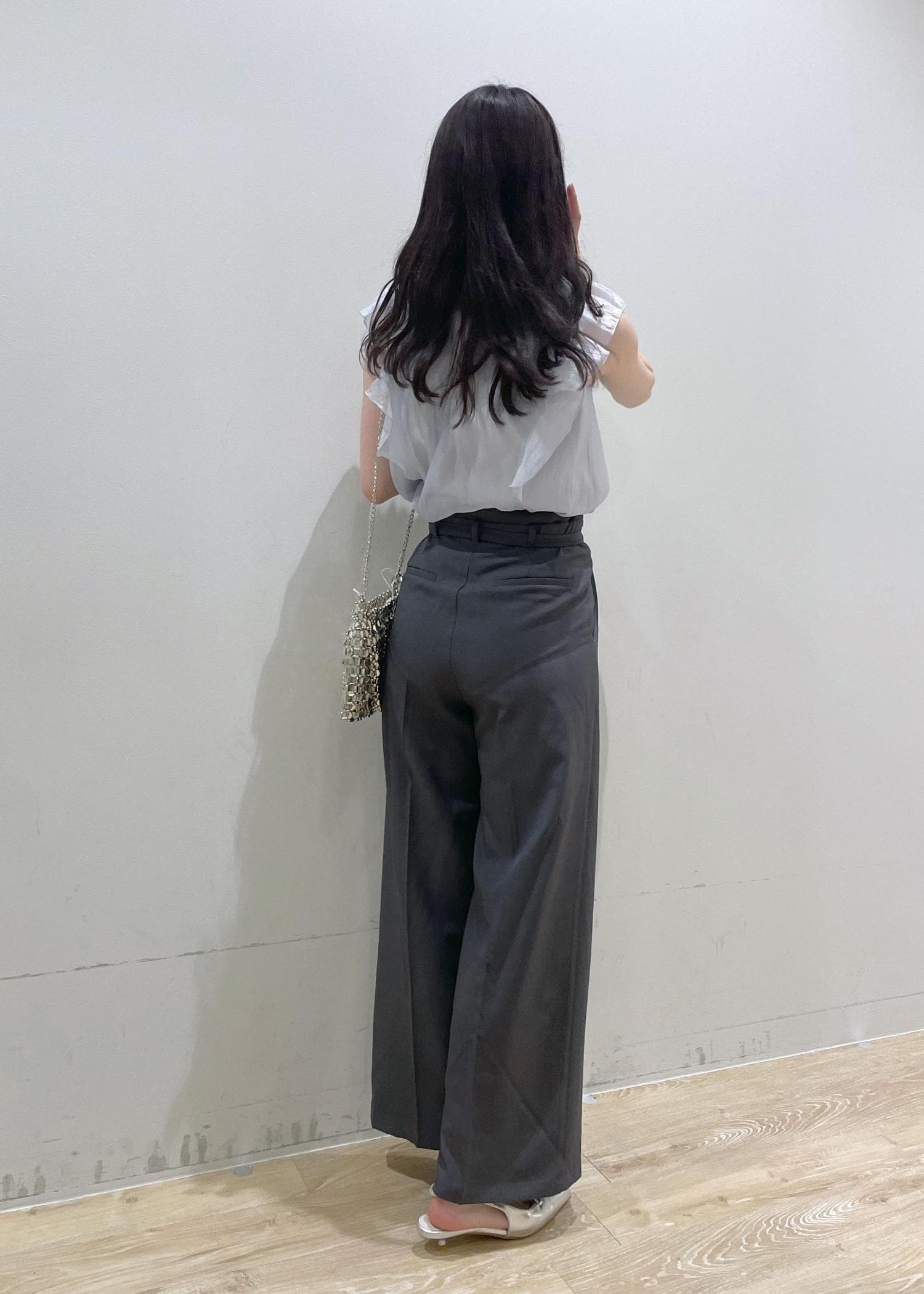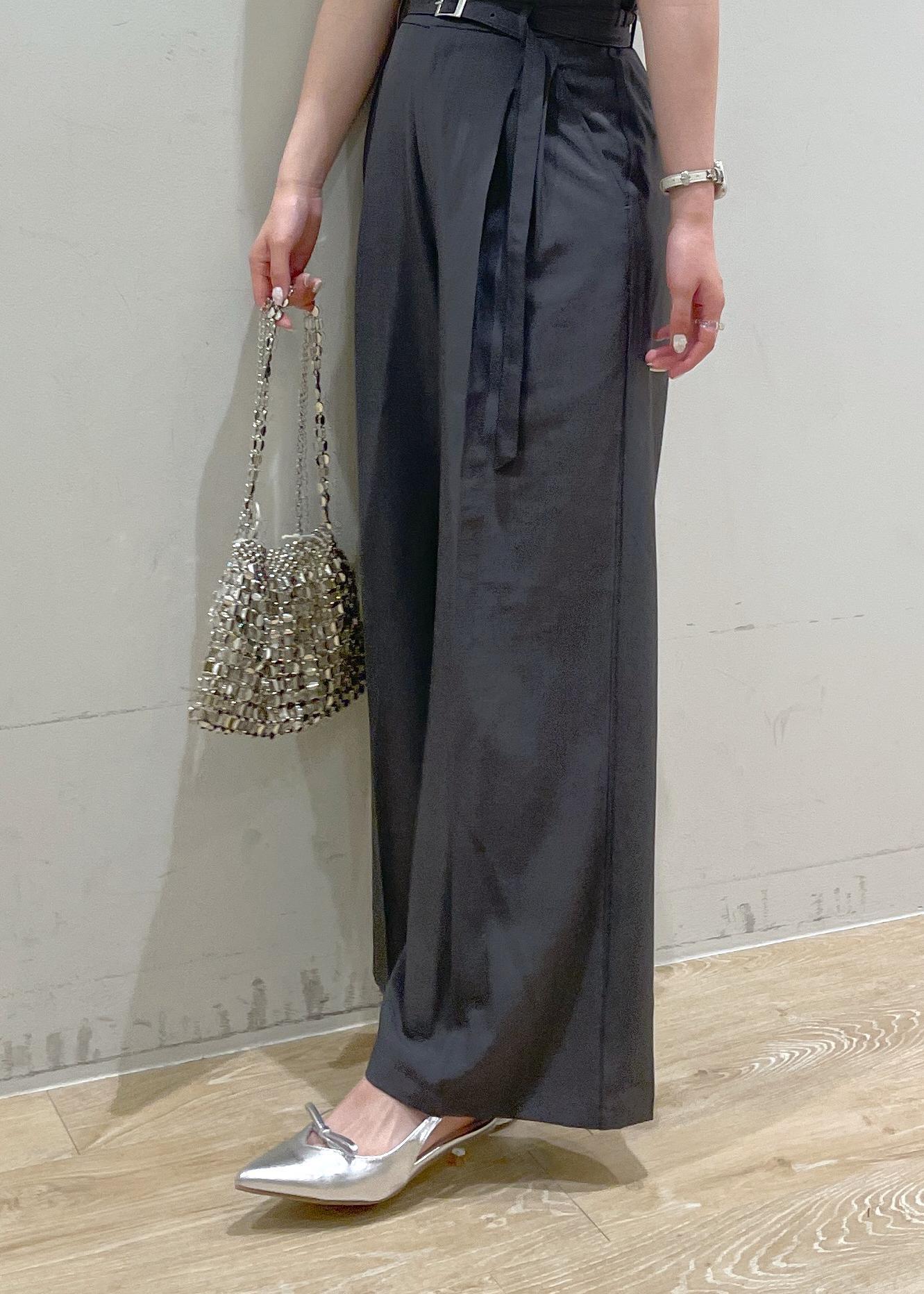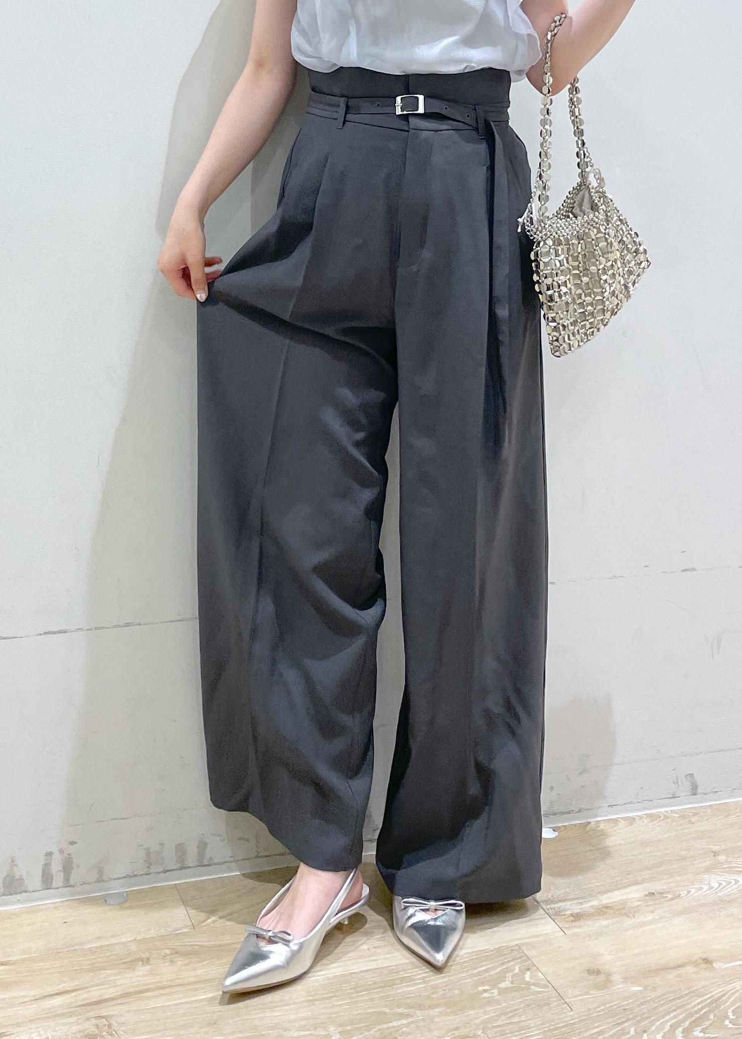 VIS【新色追加】【防シワ/接触冷感】ベルトディテールタックワイドスラックスパンツチャコール / S¥6,589レビュー身長160cmで、くるぶしくらいの丈です。