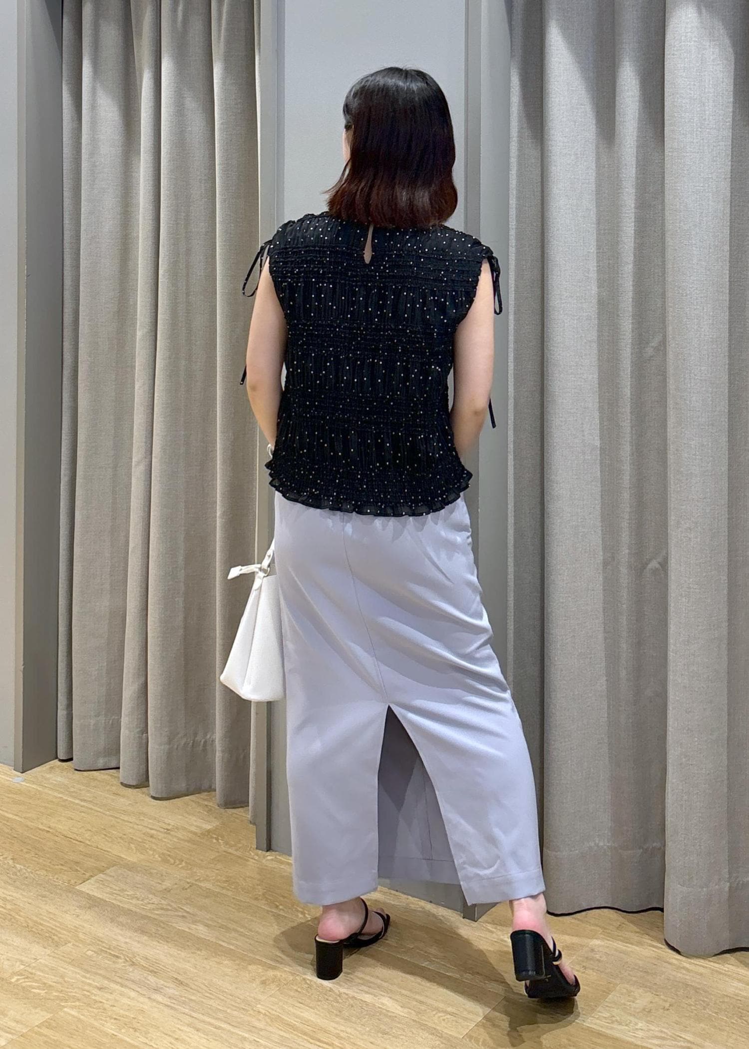 アウトレットVISプリーツシアーシャーリングブラウスブラック系 / F¥3,842レビュー身長158cm、Fサイズ着用。