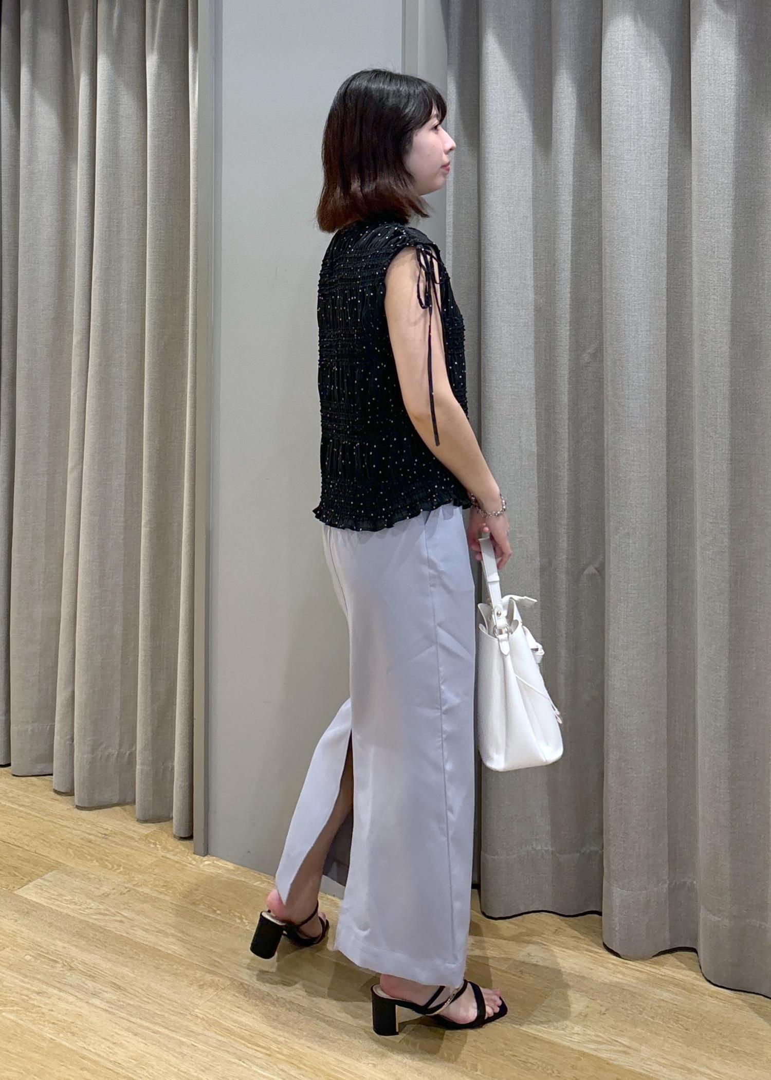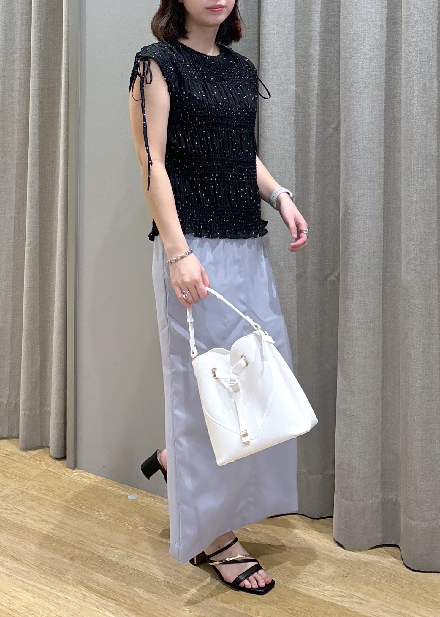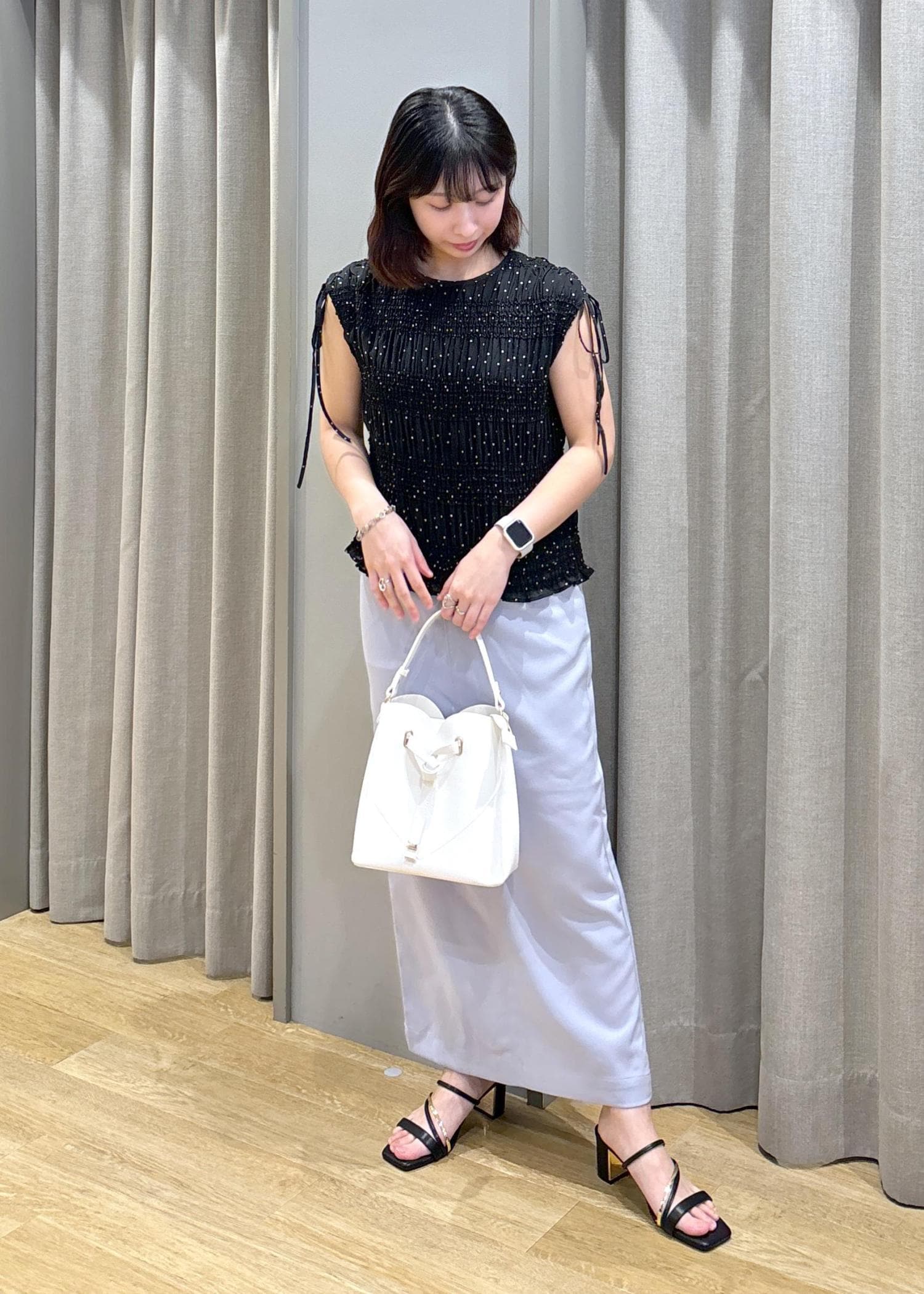 肩のシャーリング部分は少しだけ調節できるので広げたり狭くしたりして方が見える範囲を調節できます。