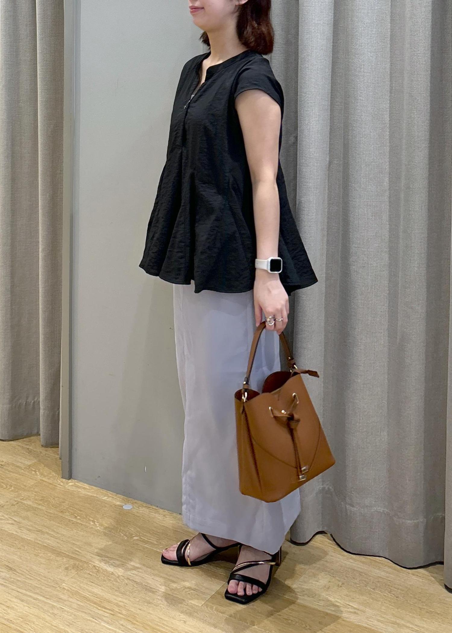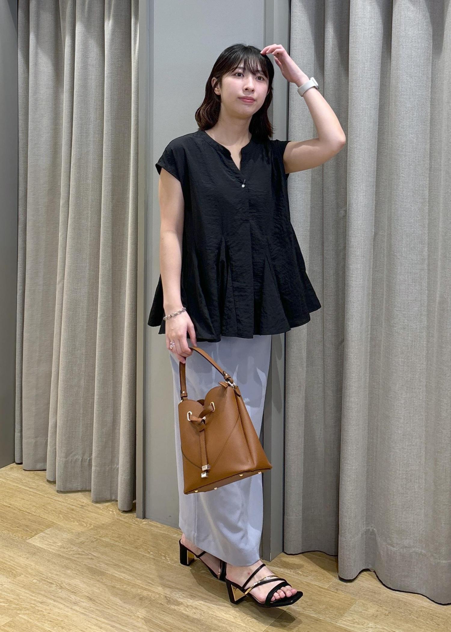 柔らかいシアー感のあるペプラムシルエットのブラウスです!