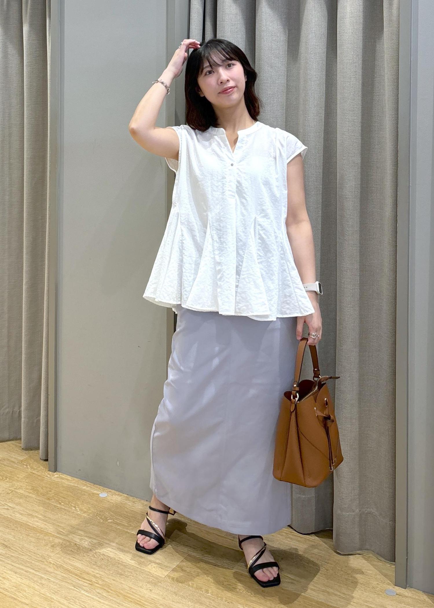 柔らかいシアー感のあるペプラムシルエットのブラウスです!