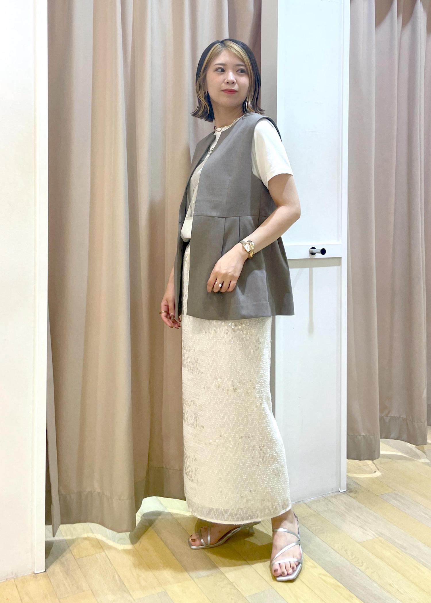 パンツでもカッコよく決まりますが、Iラインスカートを合わせて女性らしさもプラス◎