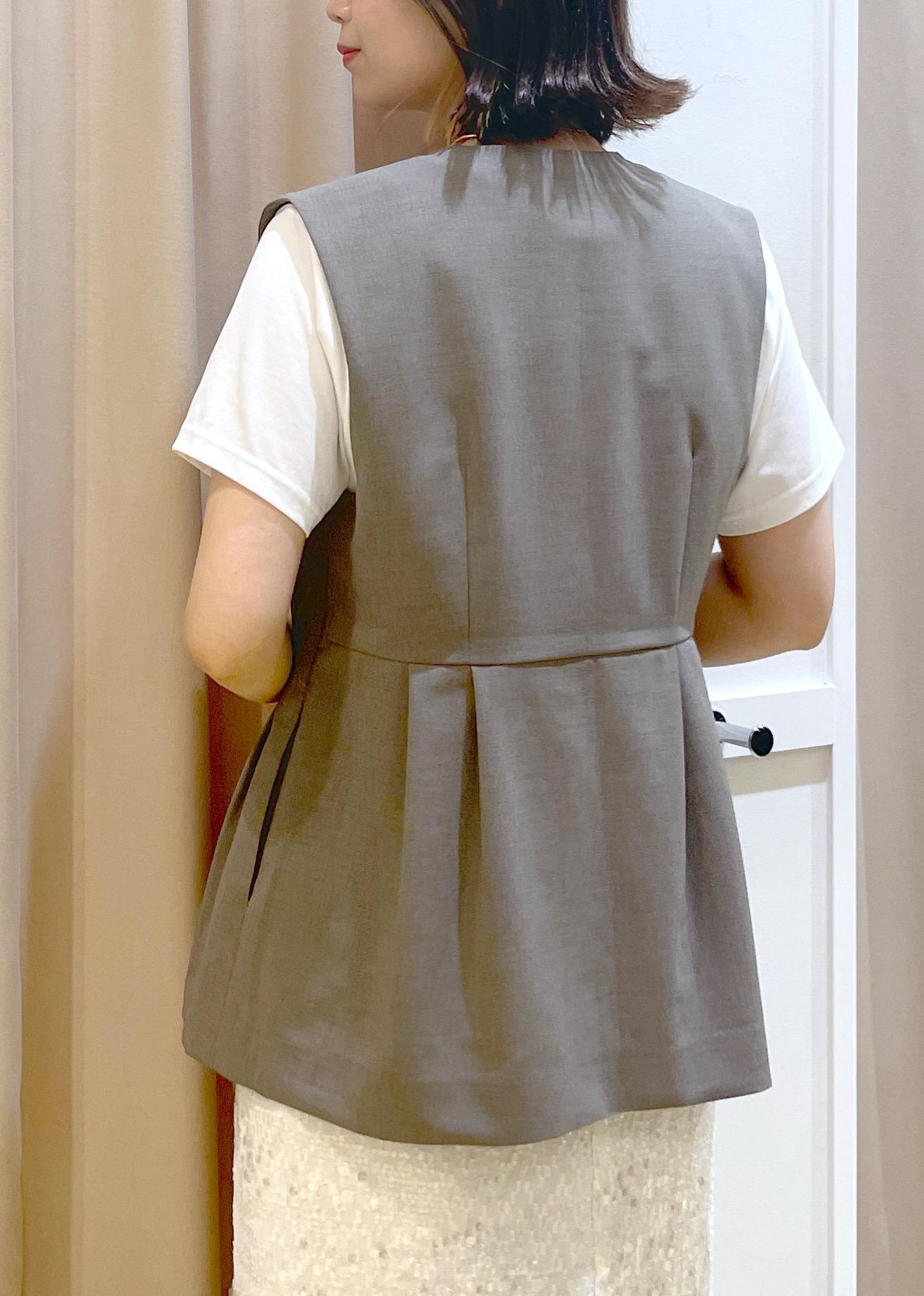 【UV対応】【リネンライク・シリーズ】ペプラムジレベスト/通勤・セットアップ対応