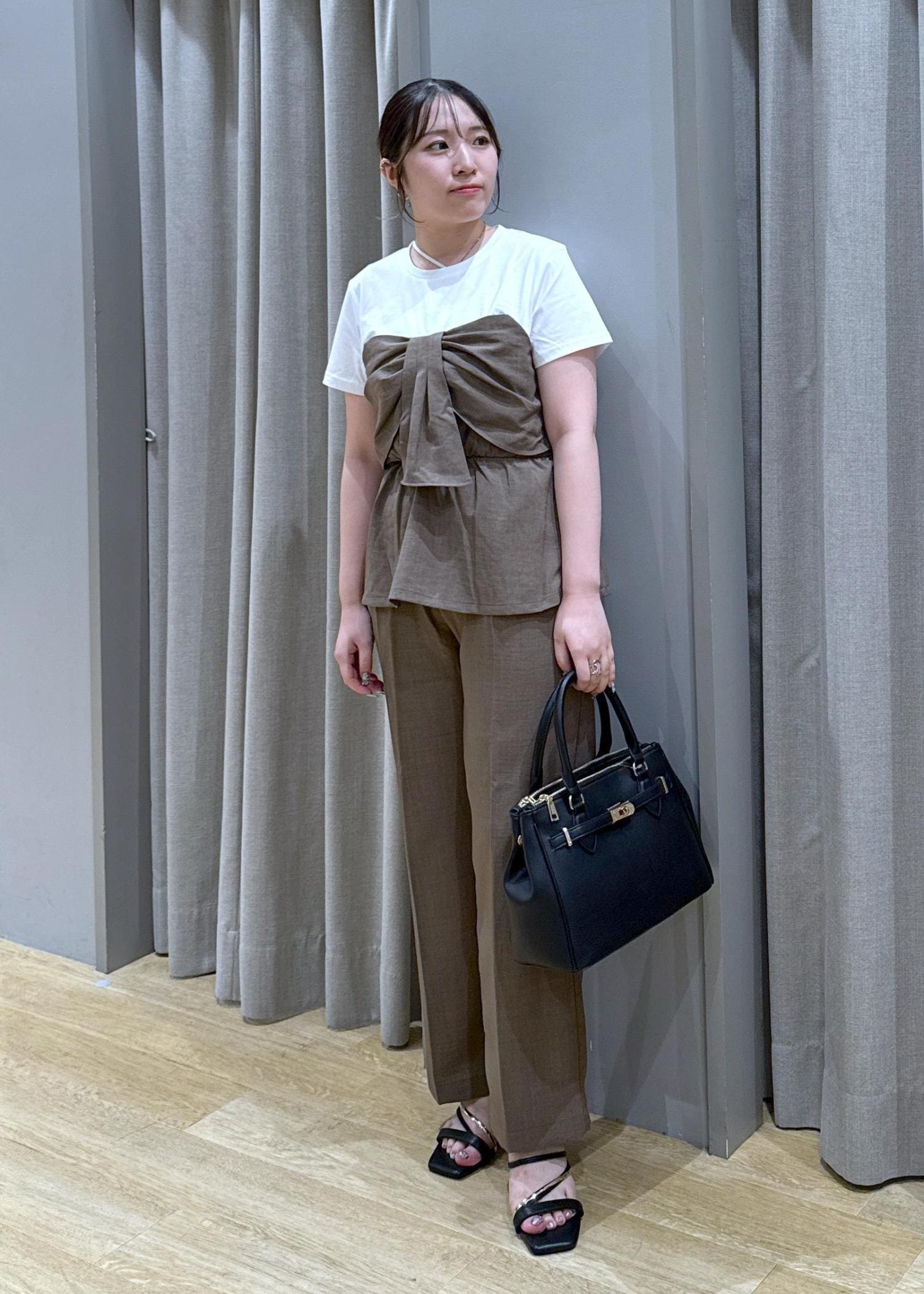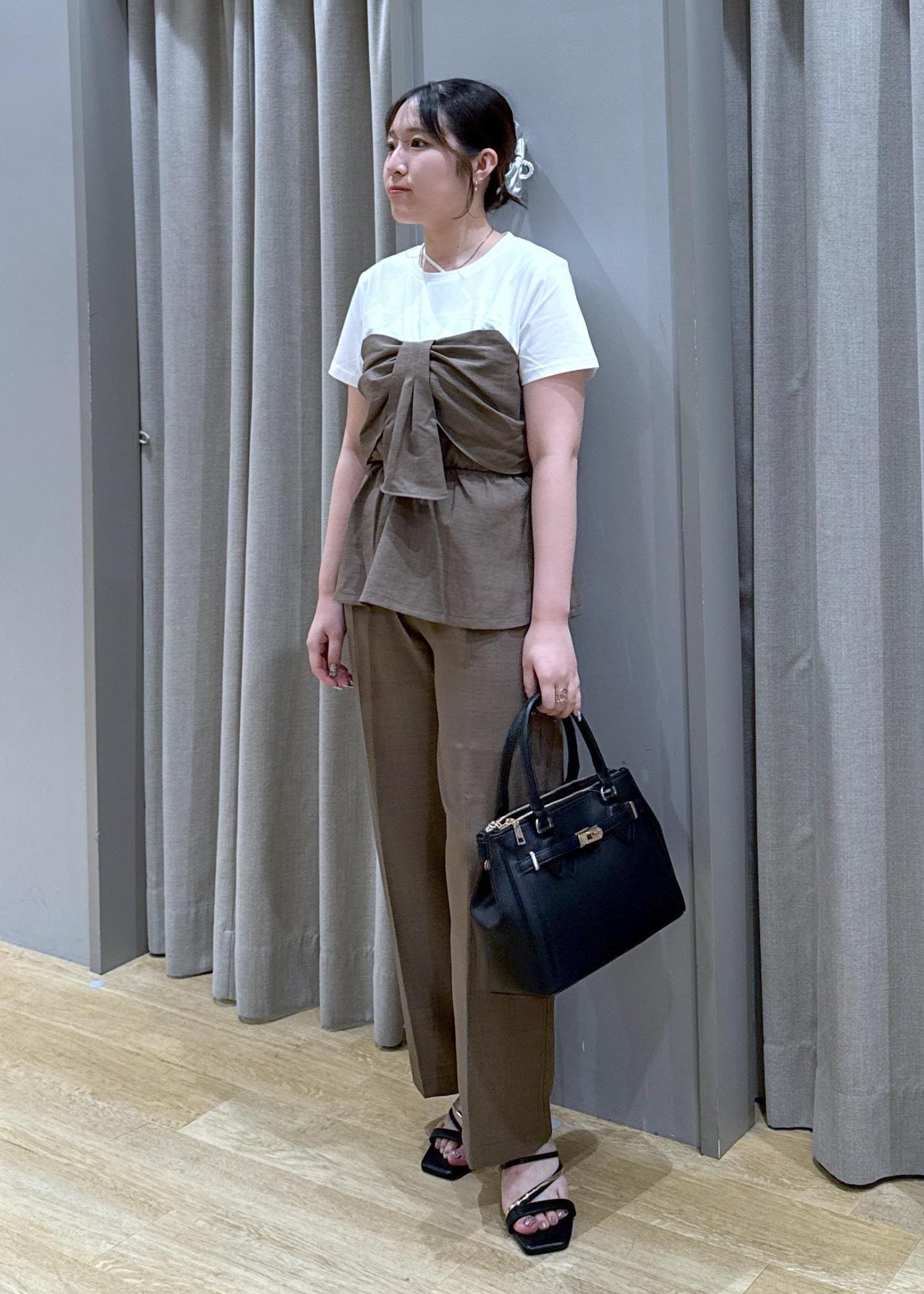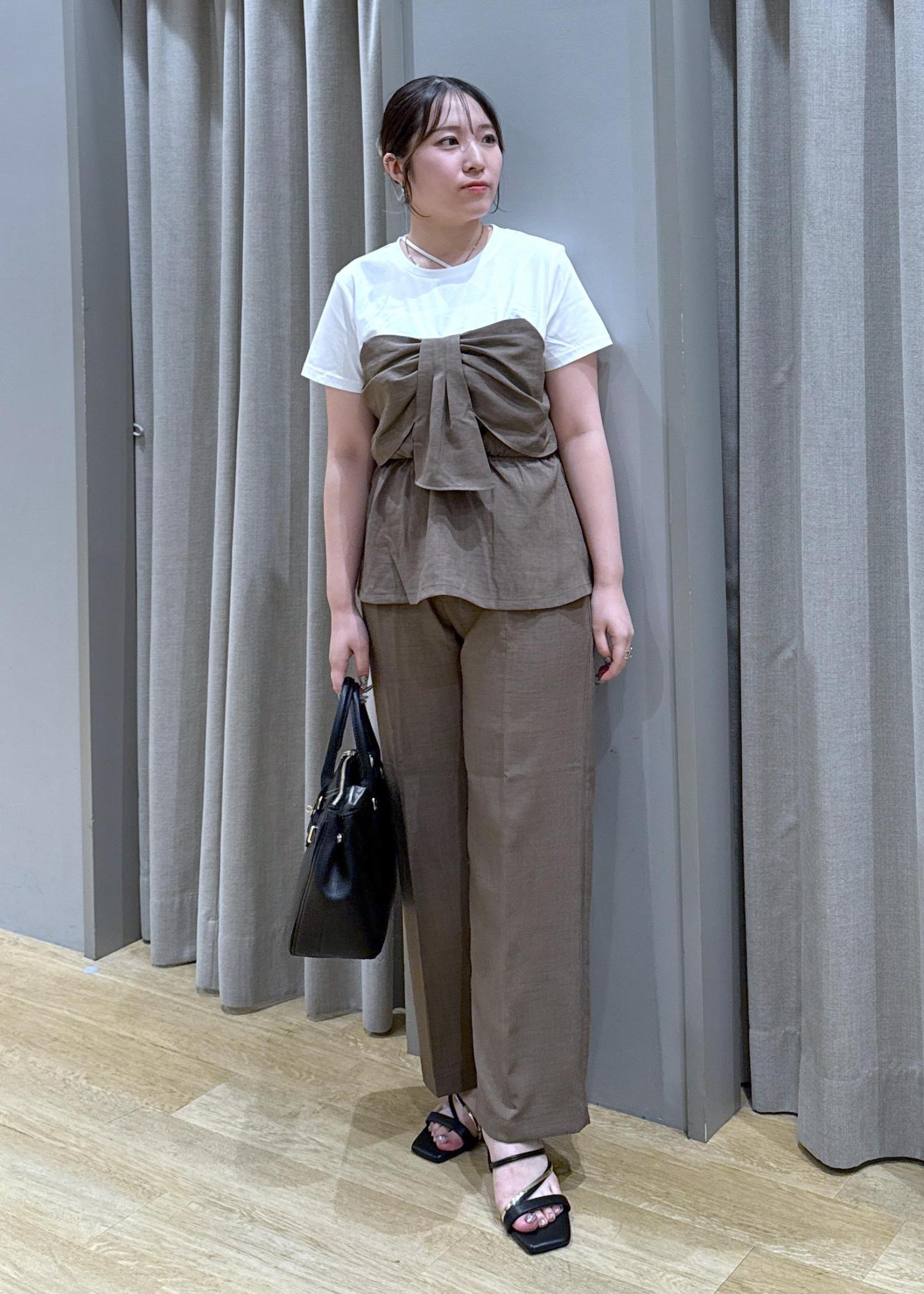VIS【新色追加】【美easy】ねじりリボンTシャツドッキングプルオーバー【接触冷感/洗える】カーキ系 / F¥5,489レビューvis定番のリネンシリーズのセットアップ対応
