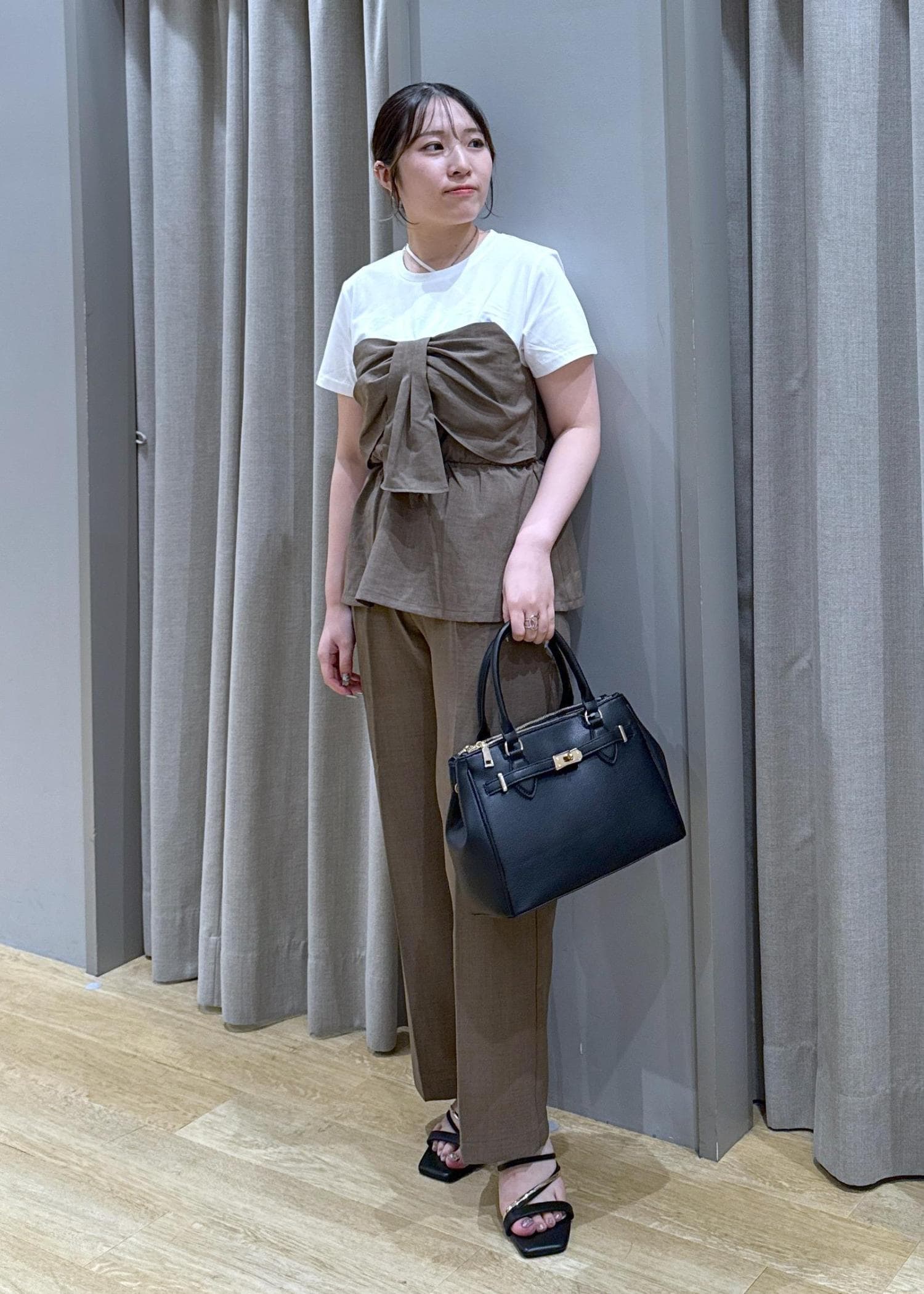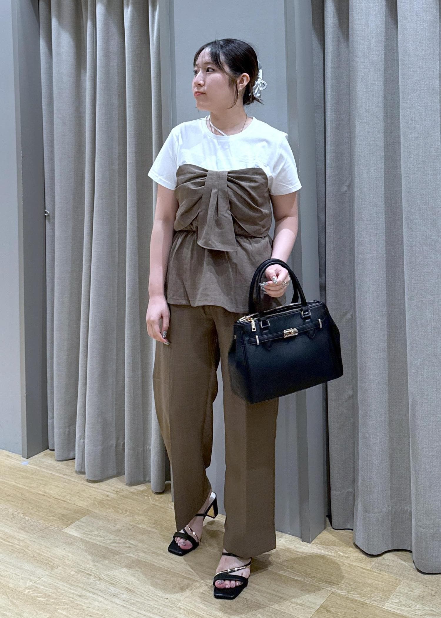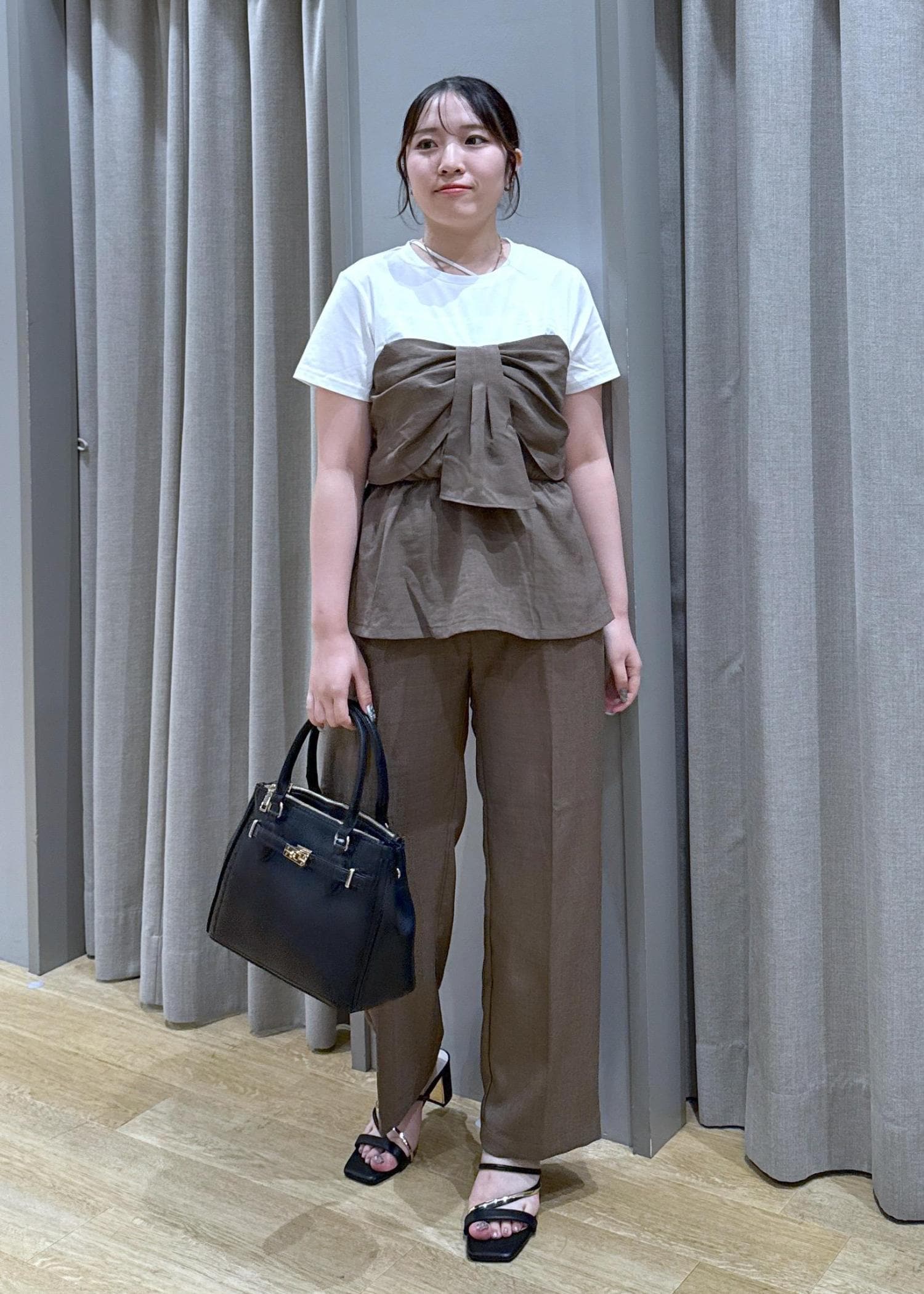 VIS【新色追加】【美easy】ねじりリボンTシャツドッキングプルオーバー【接触冷感/洗える】カーキ系 / F¥5,489レビューvis定番のリネンシリーズのセットアップ対応