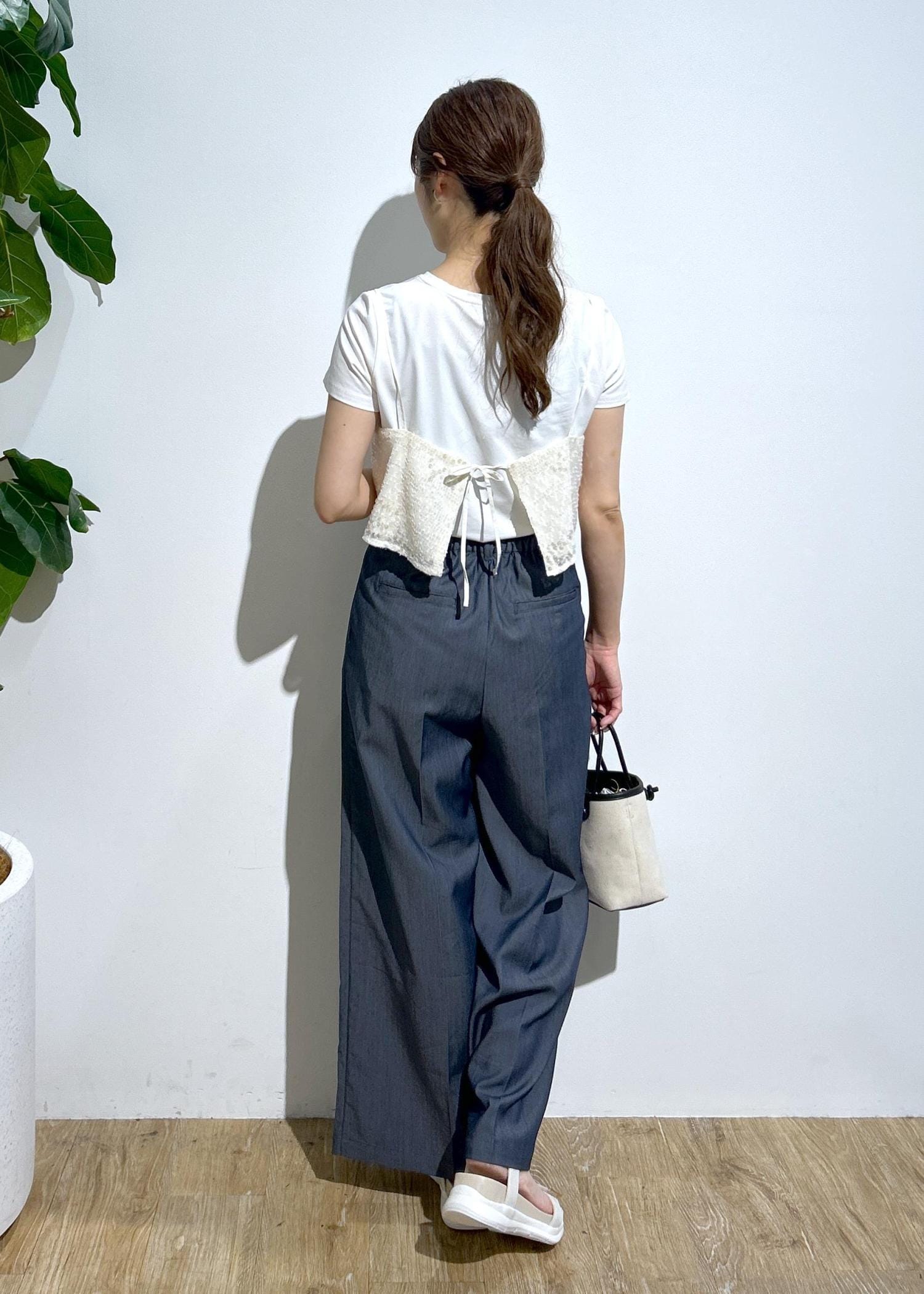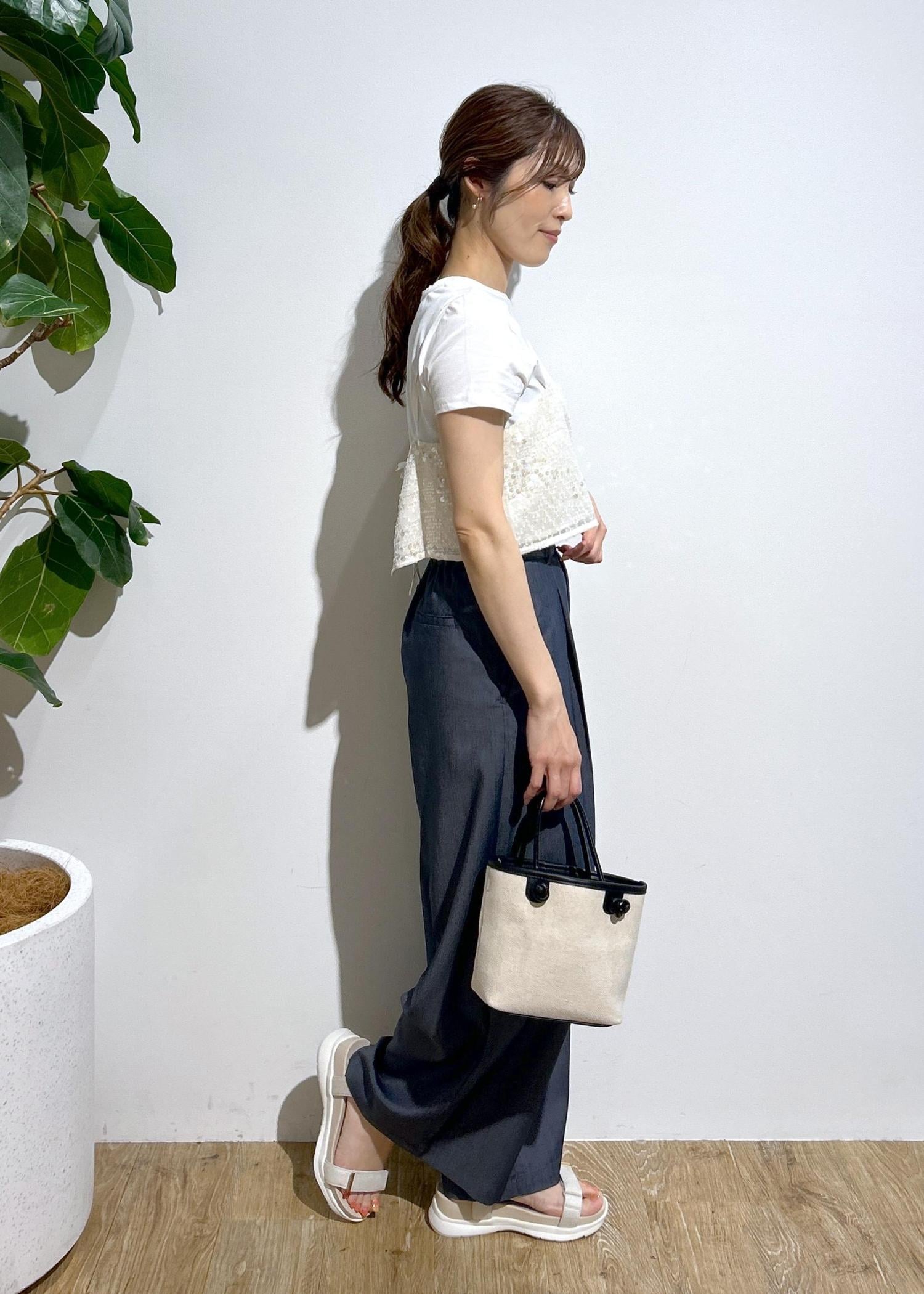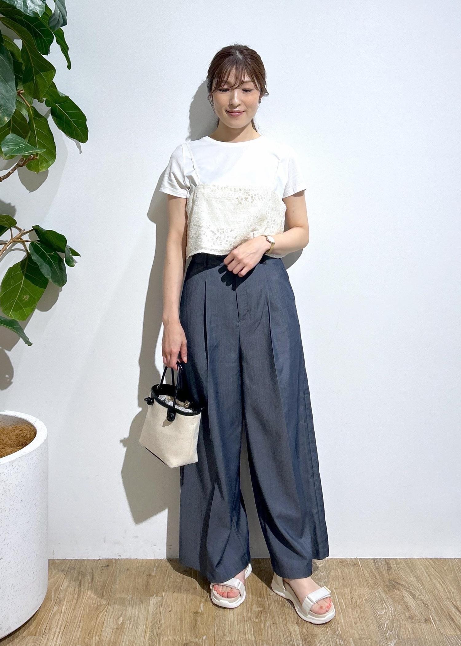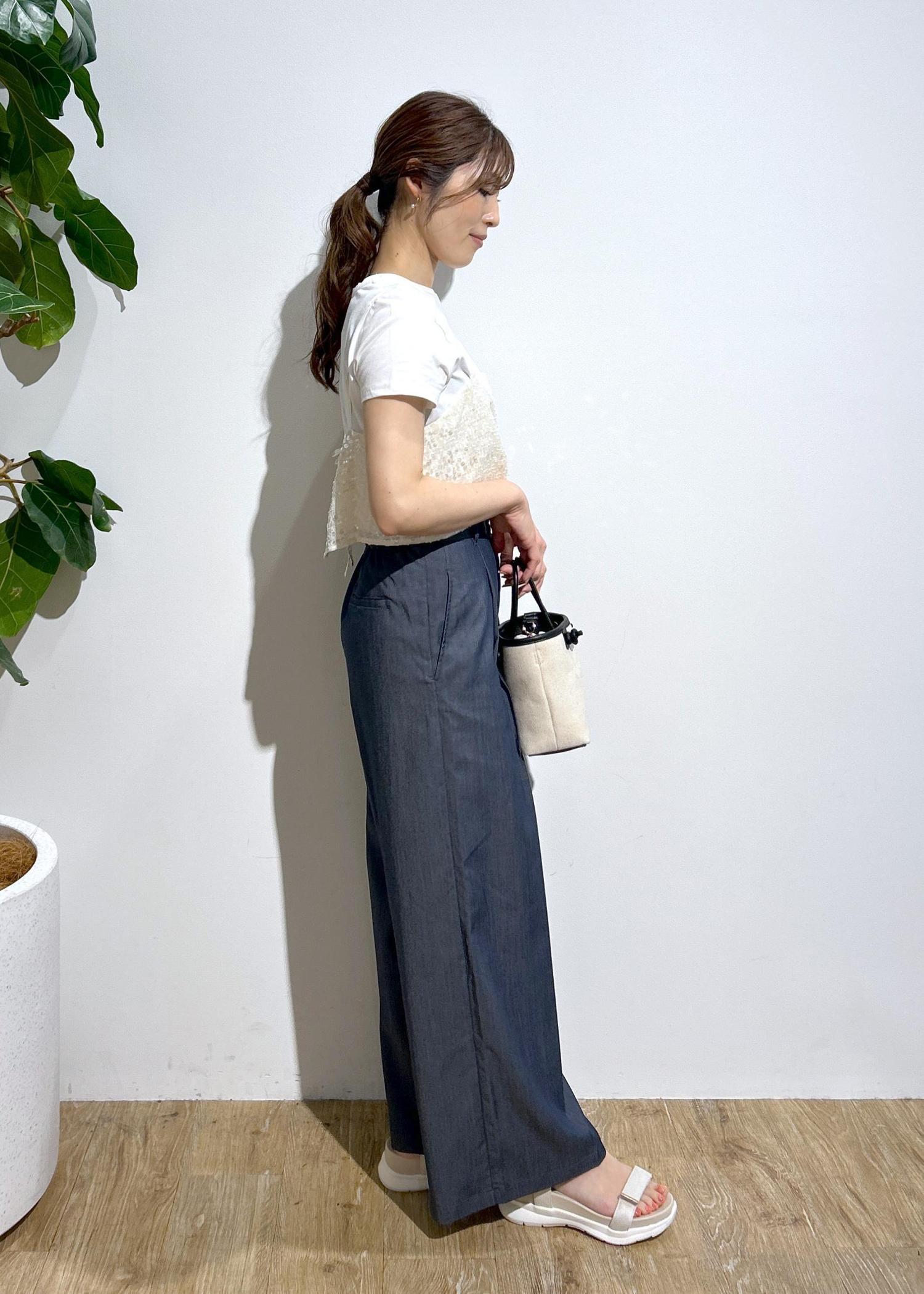トップスが華やかなのでボトムはシンプルなものを合わせました。