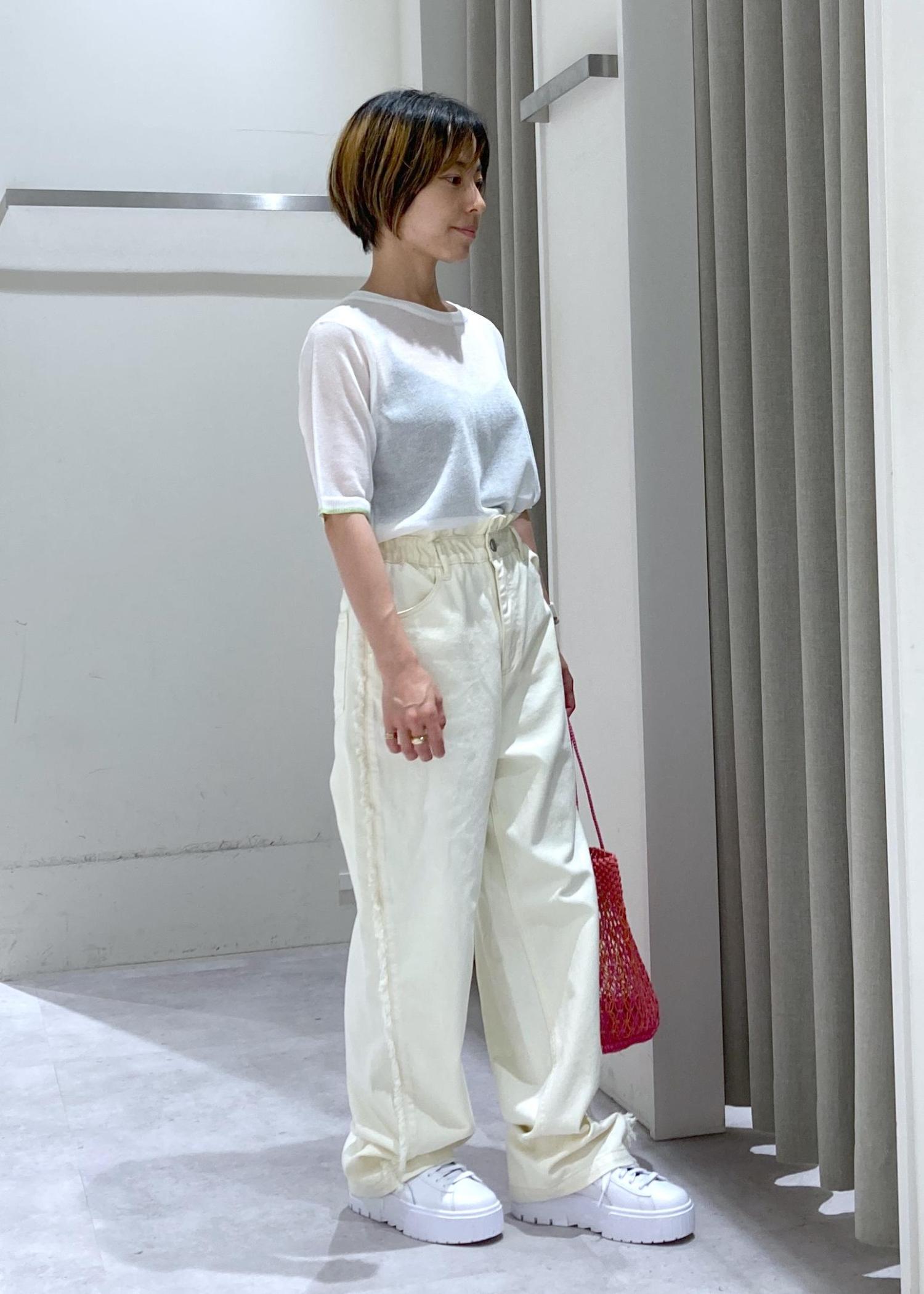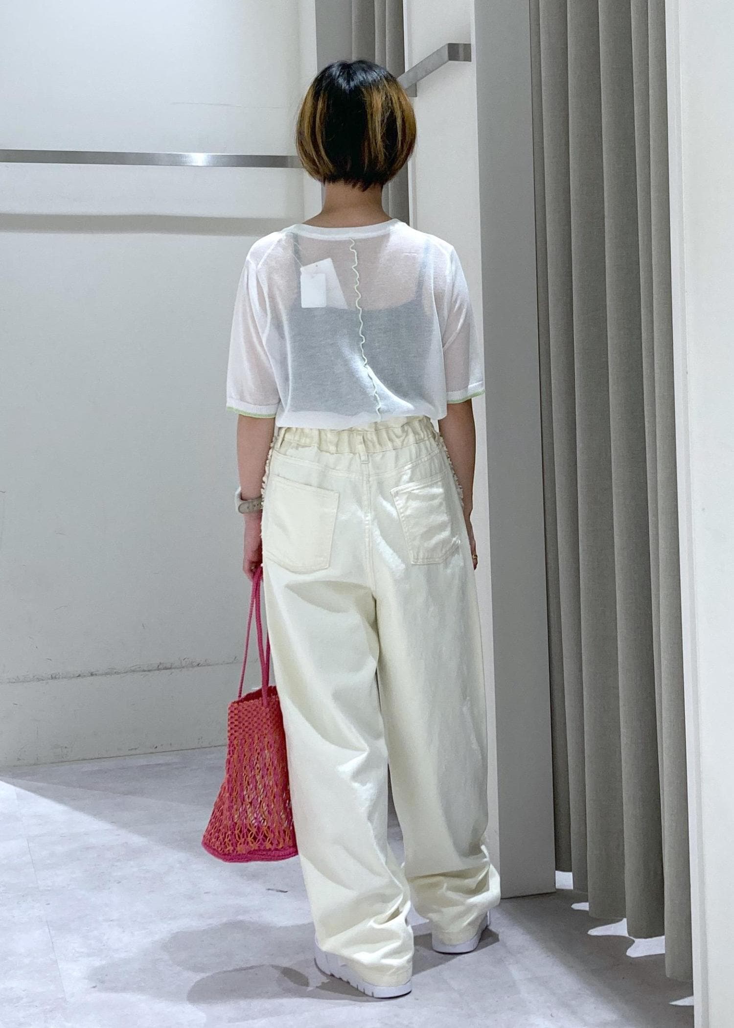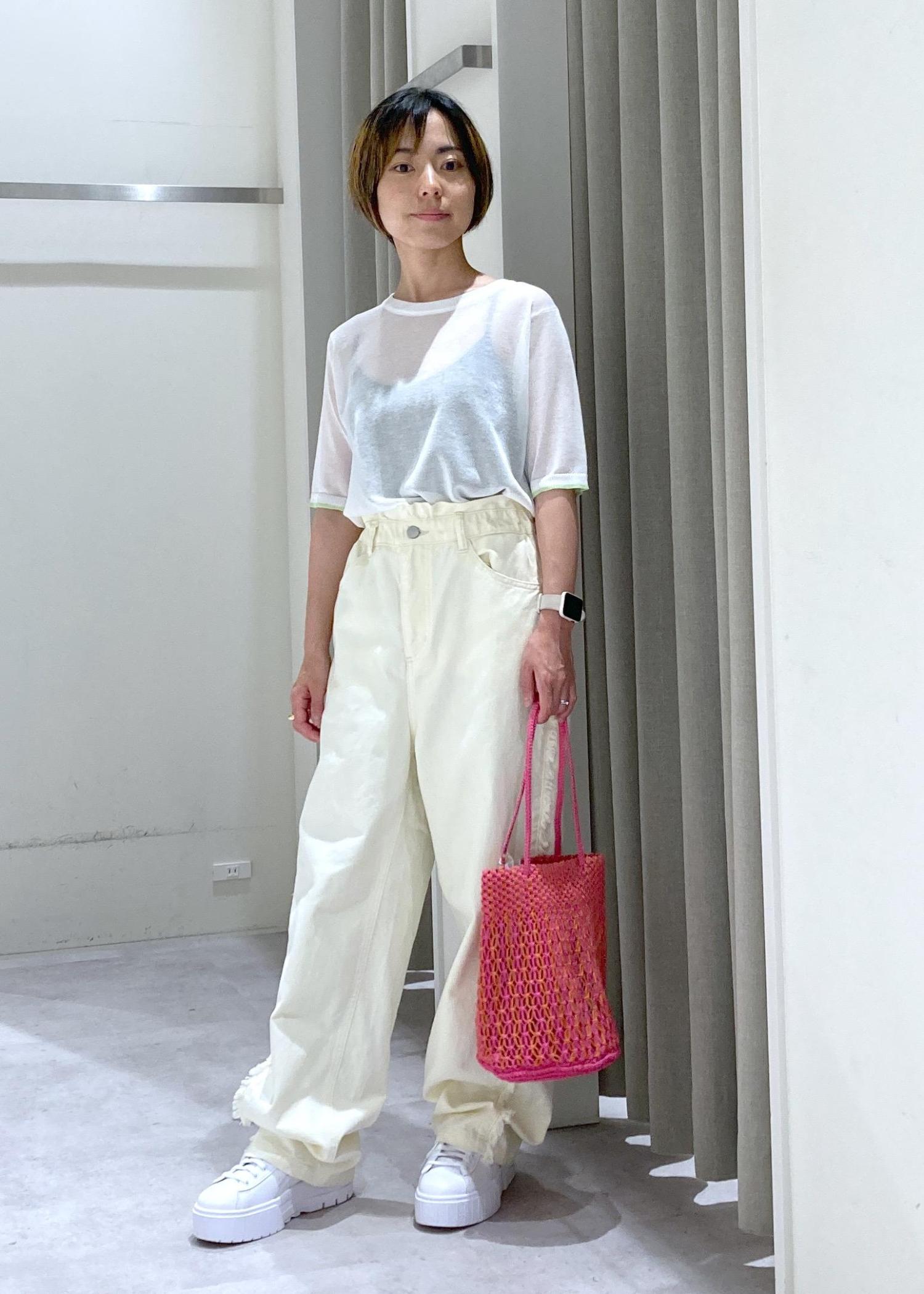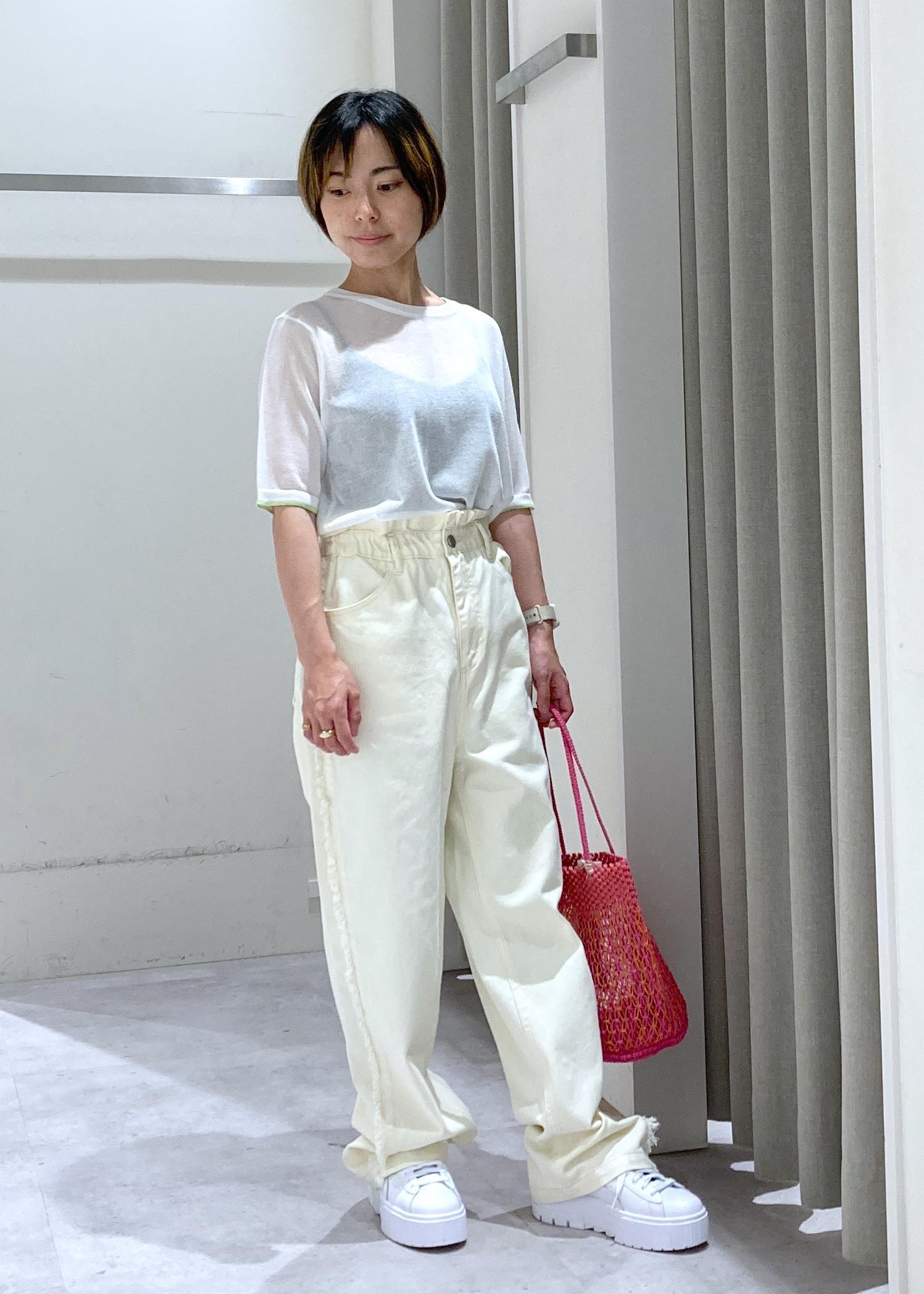 TopsをシアーTEEシャツにした事で、デニムとスニーカーでもカジュアル過ぎないコーディネートに仕上がっております。