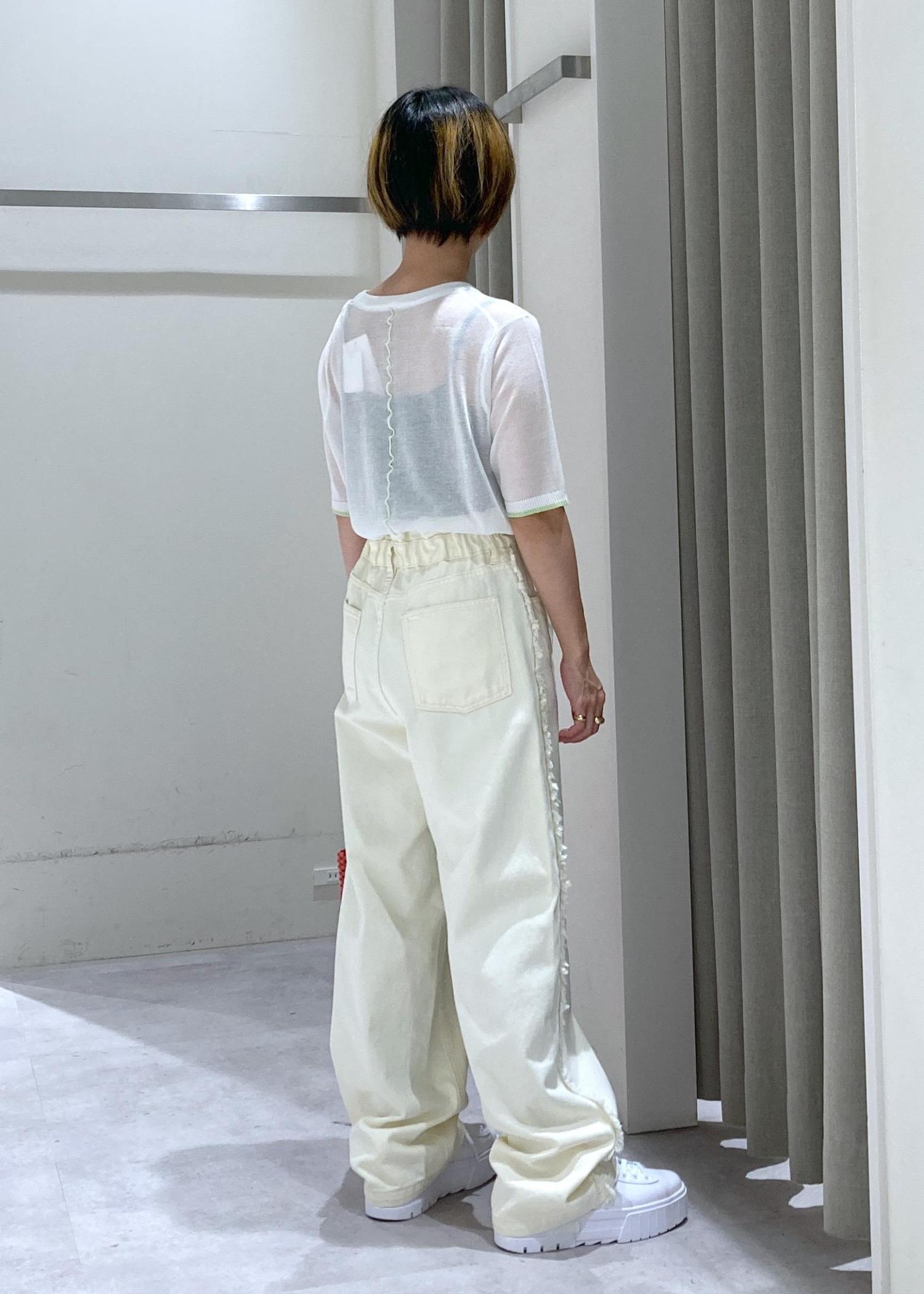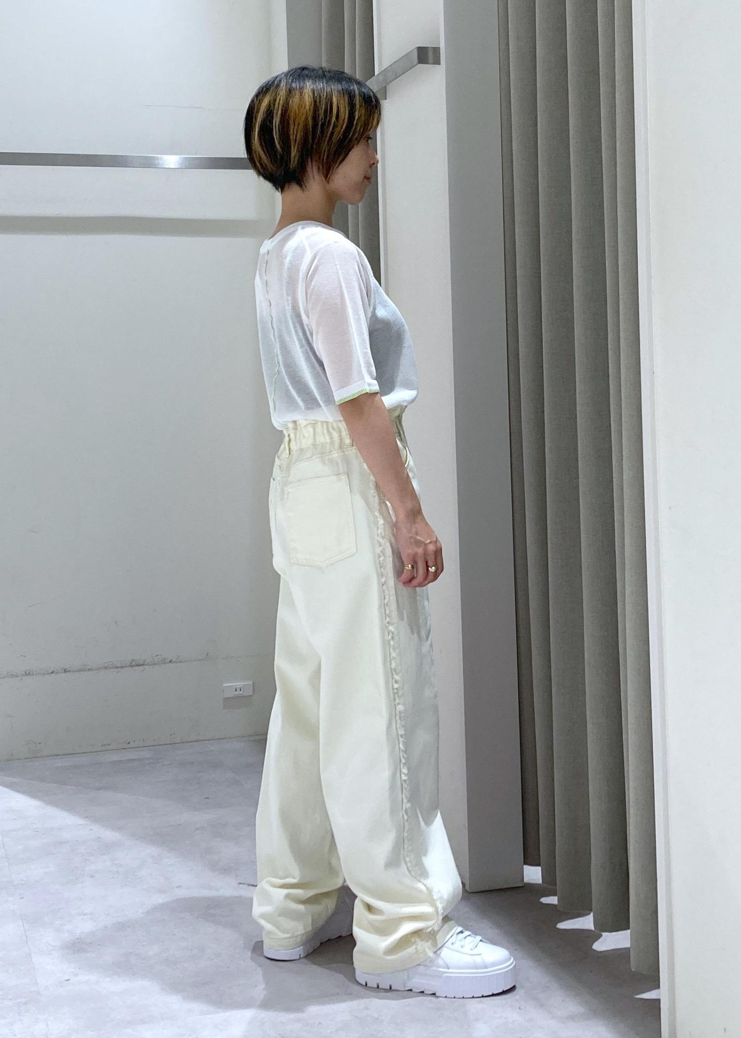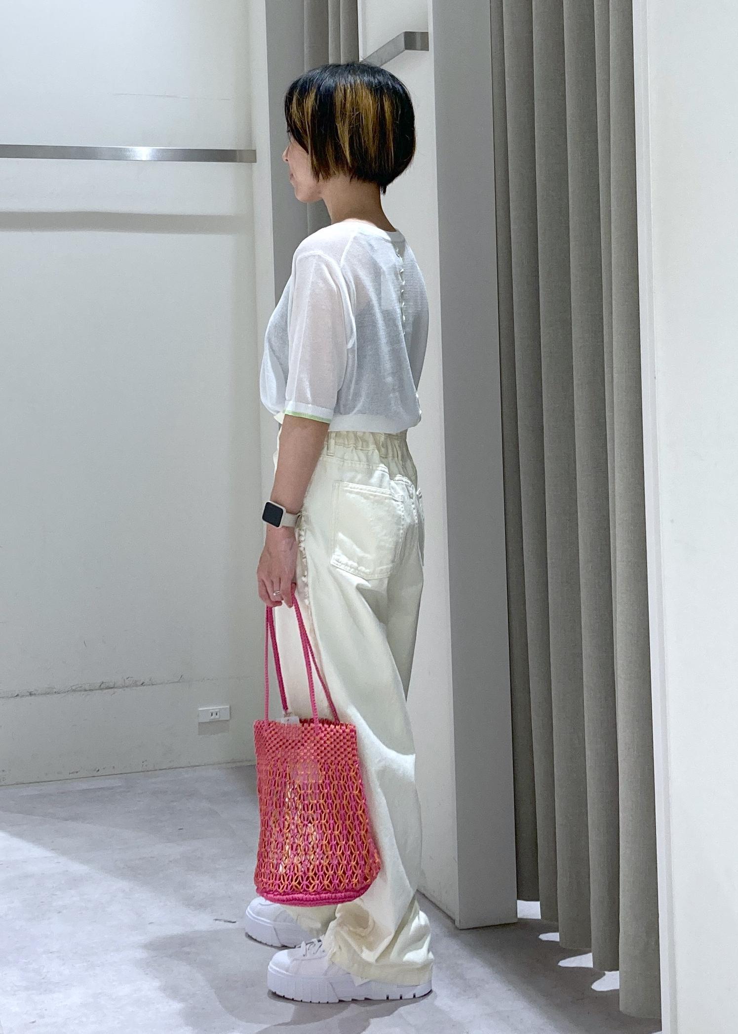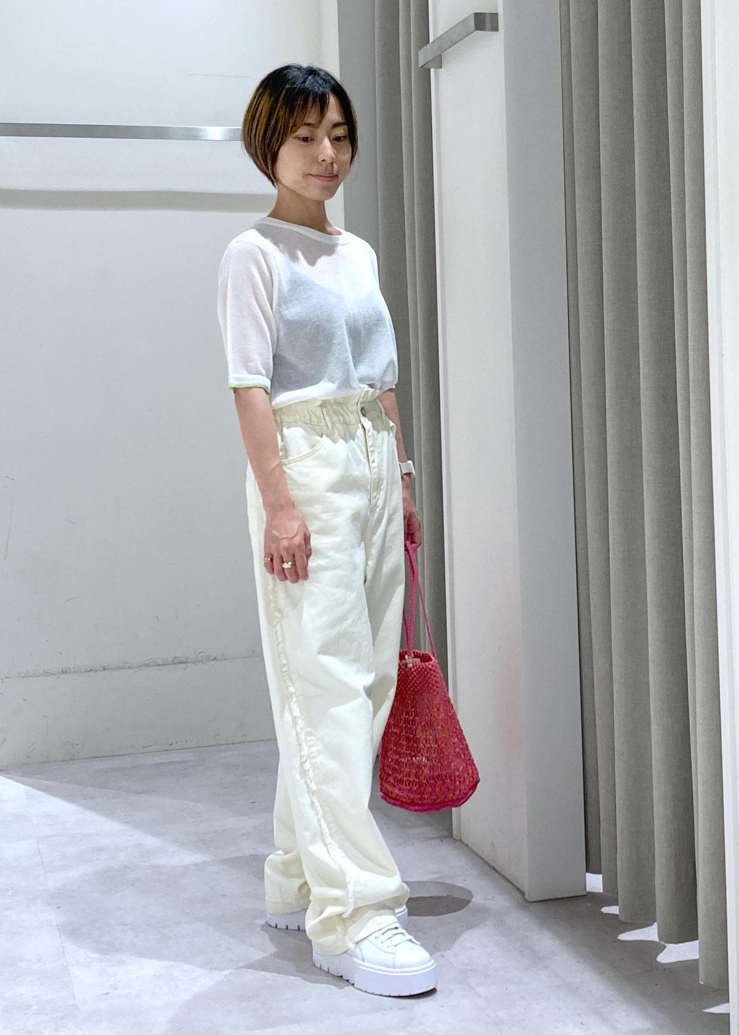 TopsをシアーTEEシャツにした事で、デニムとスニーカーでもカジュアル過ぎないコーディネートに仕上がっております。
