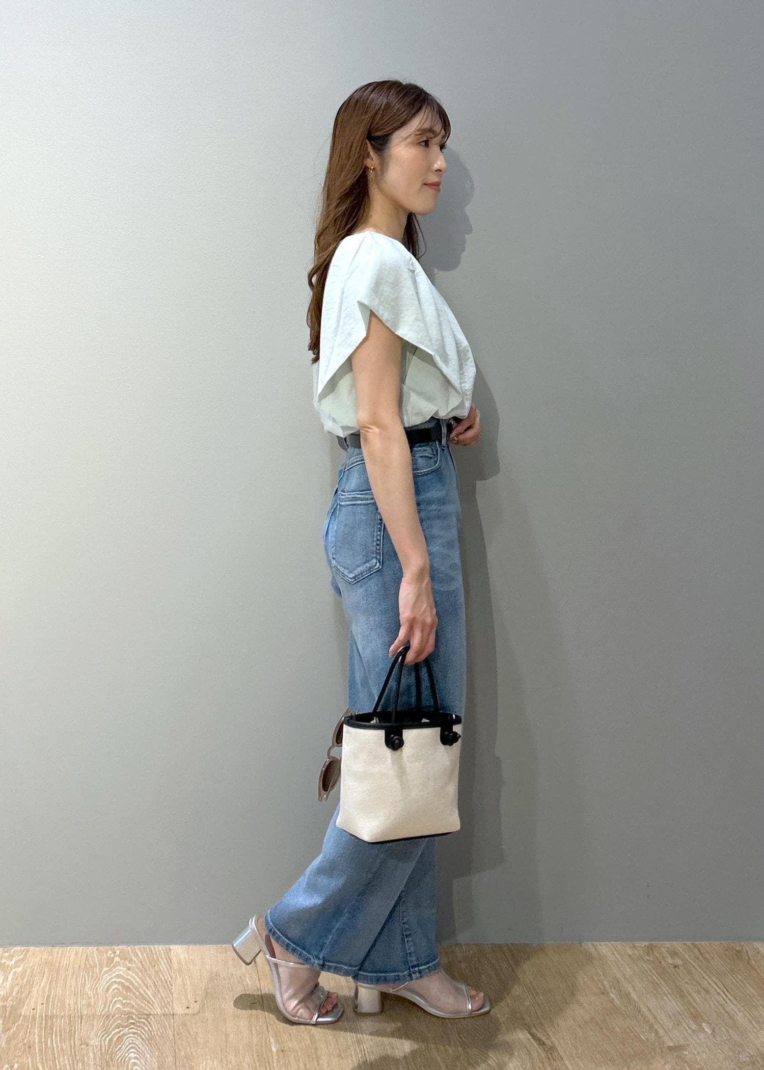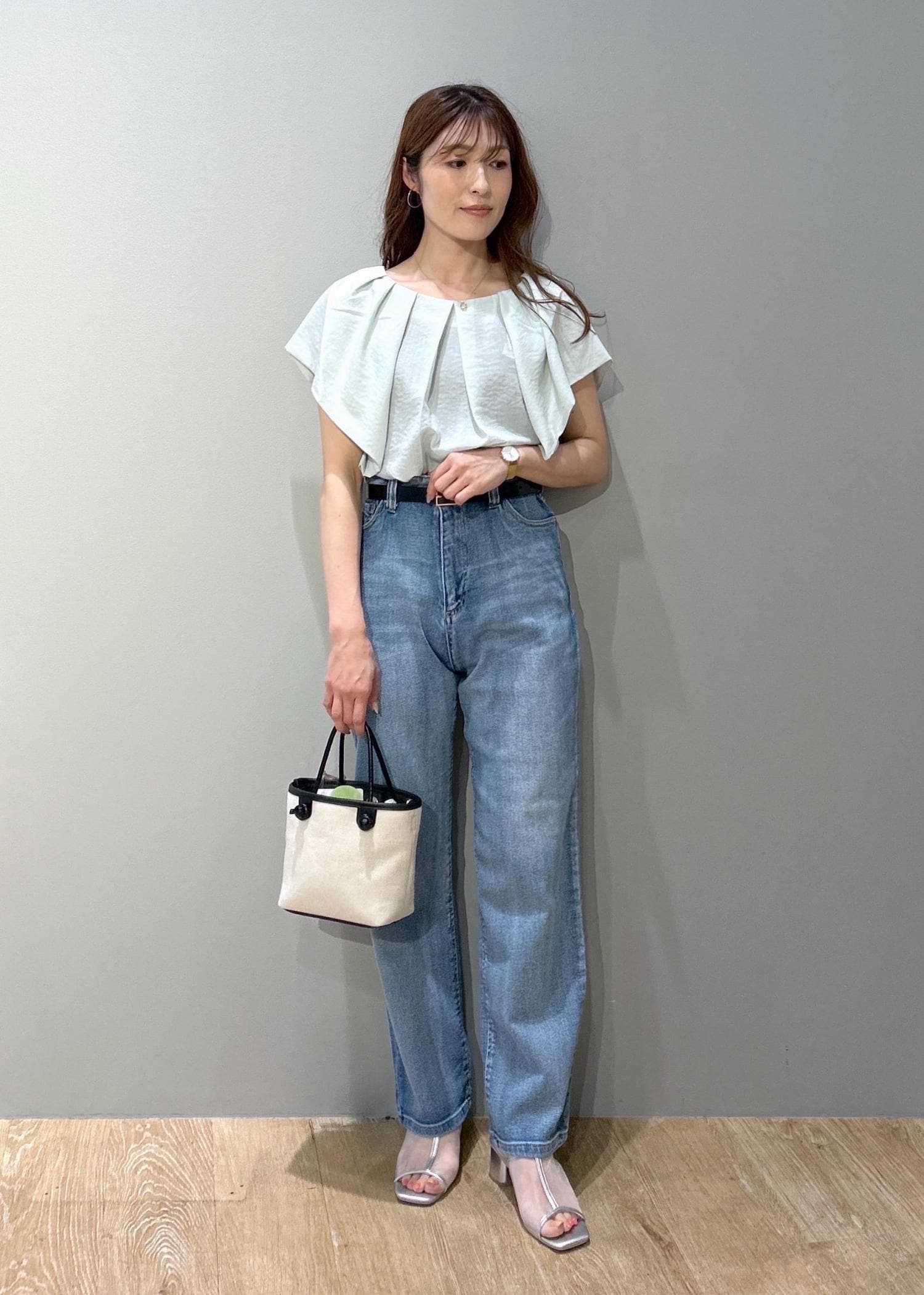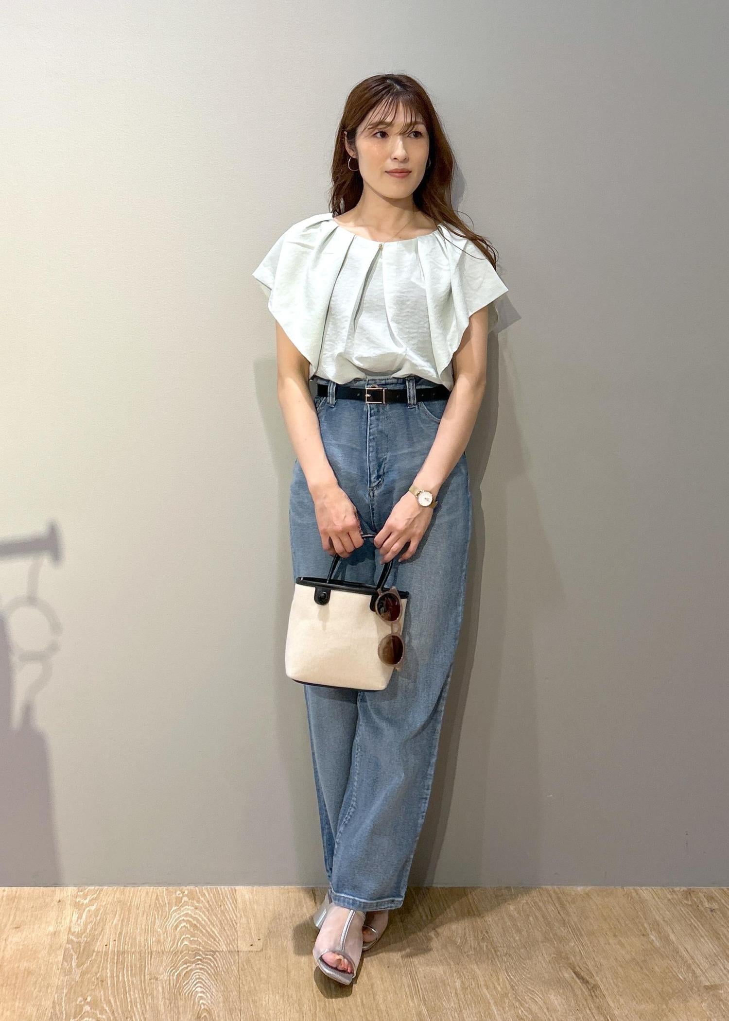 甘くなりすぎないようにデニム合わせでコーディネートしました。