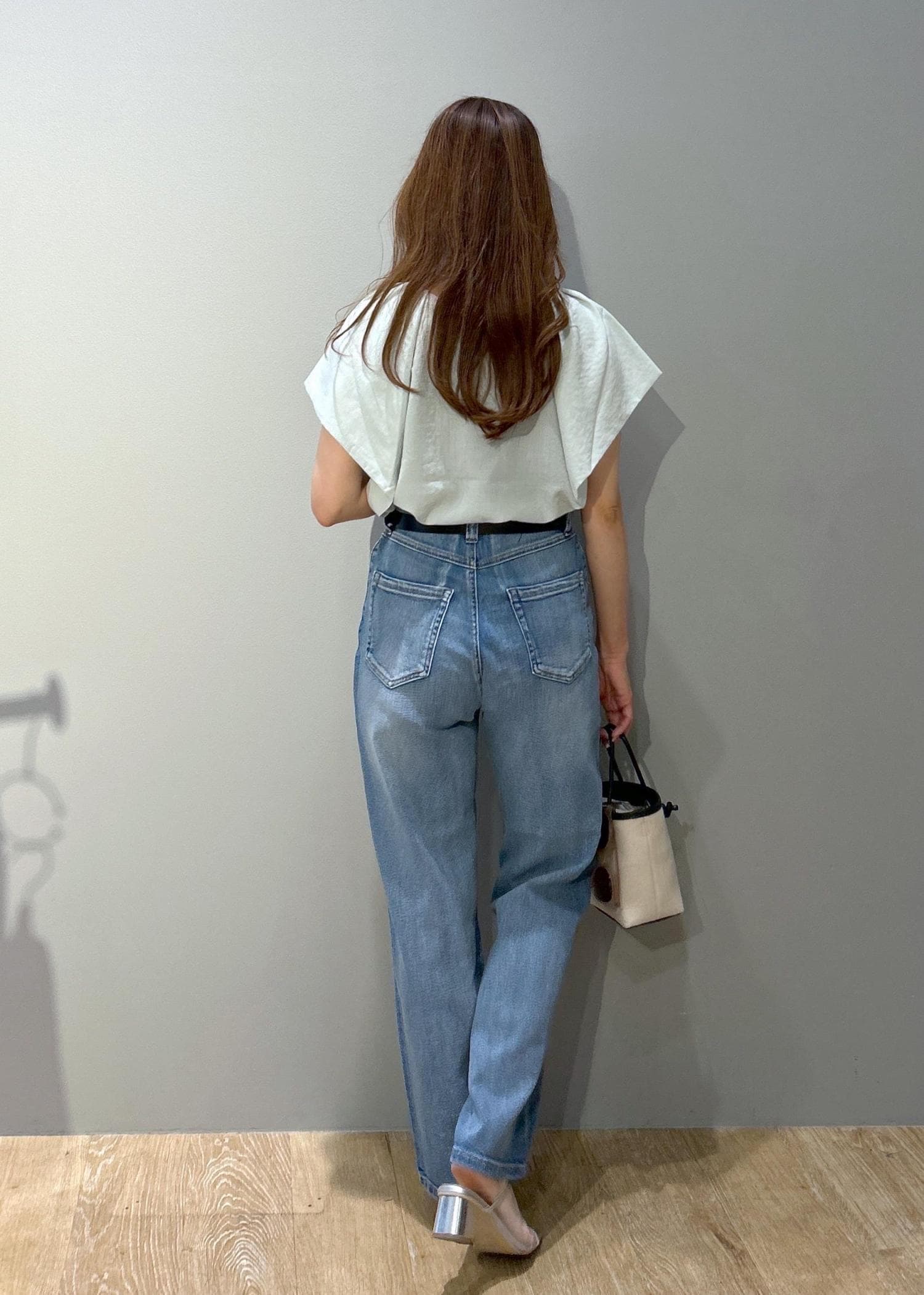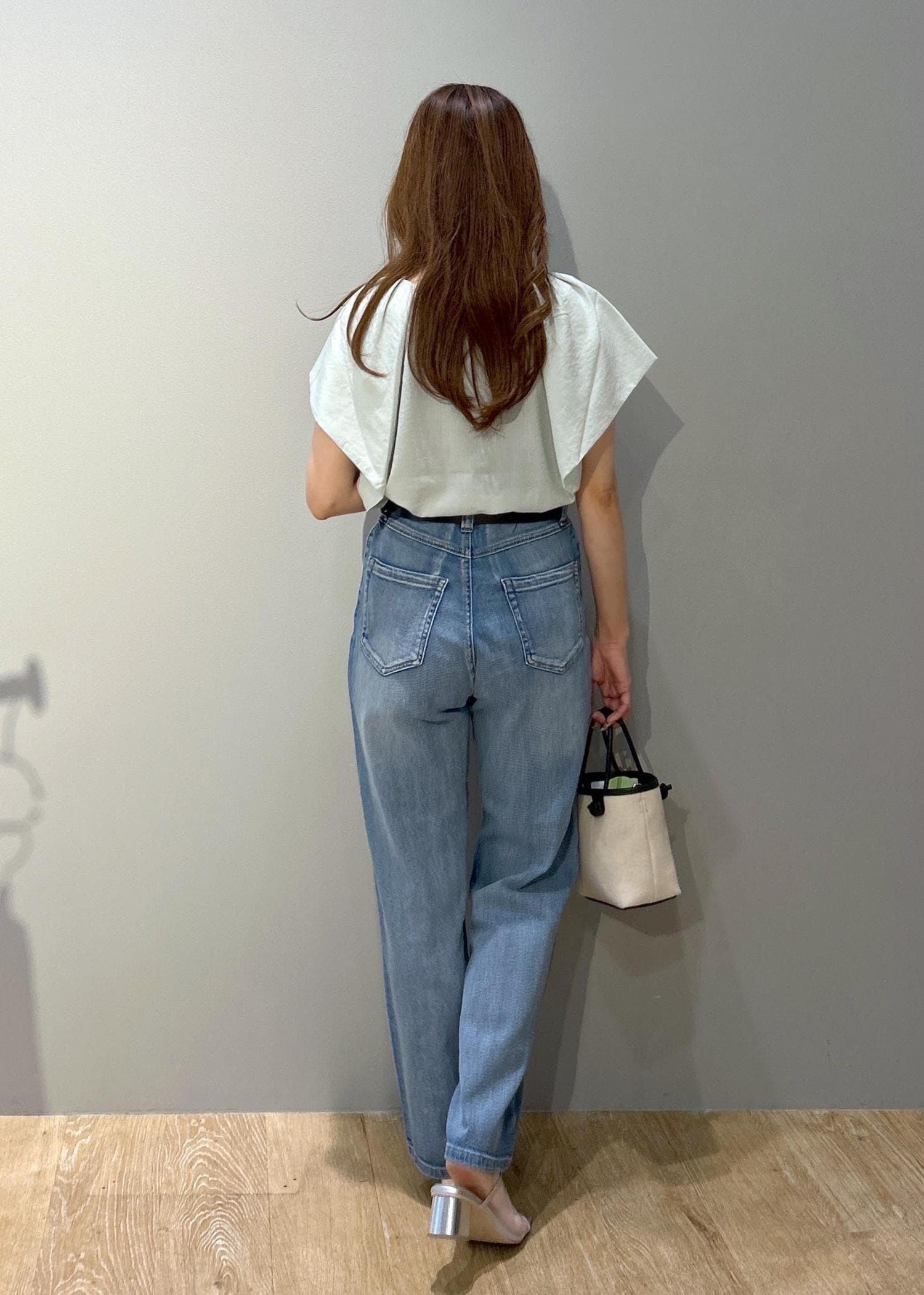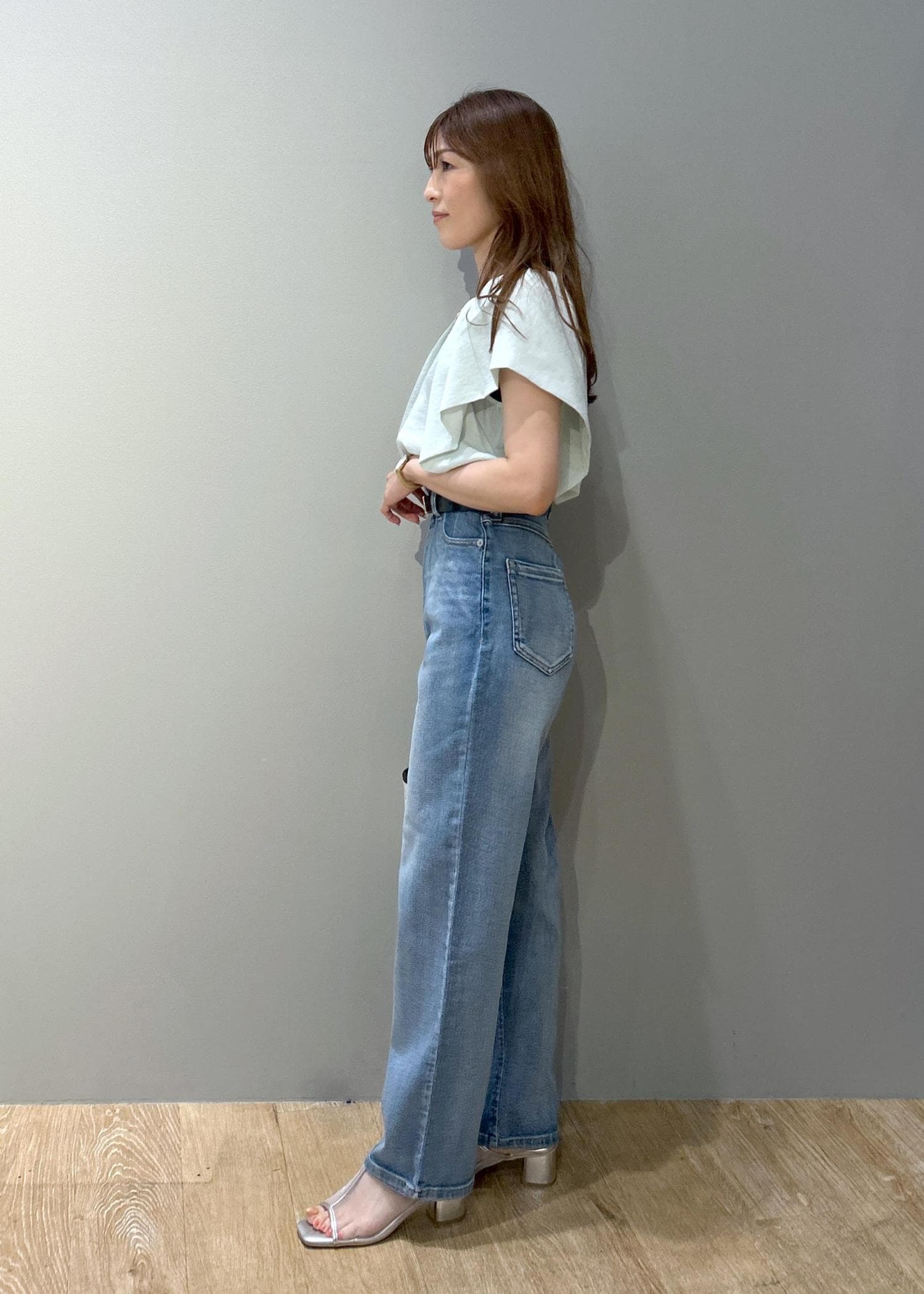 甘くなりすぎないようにデニム合わせでコーディネートしました。