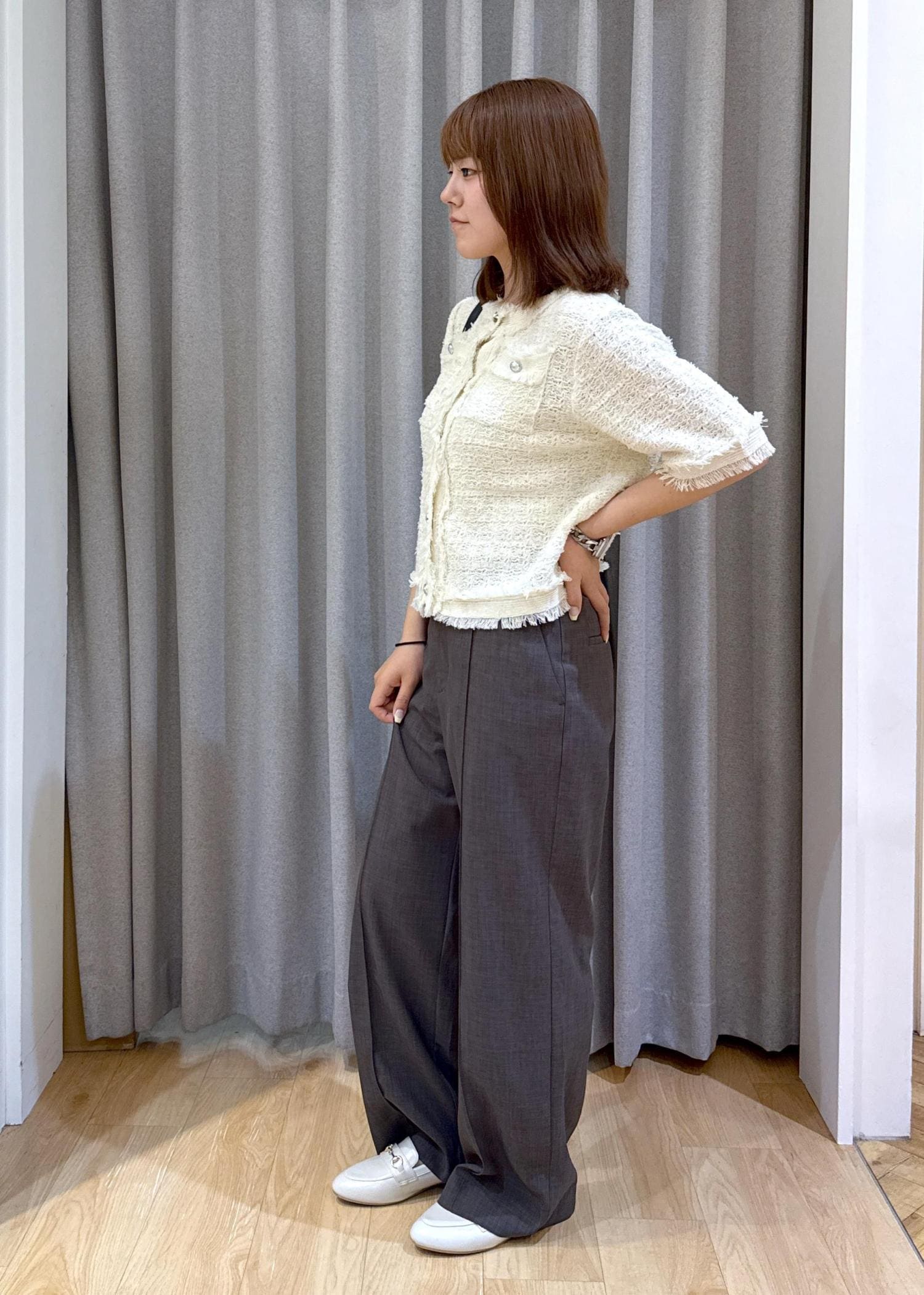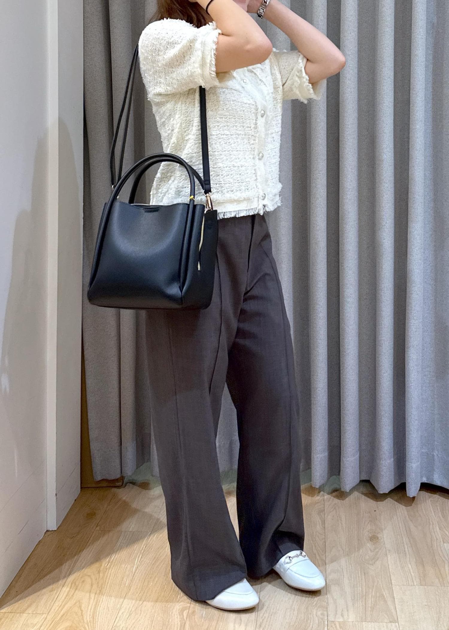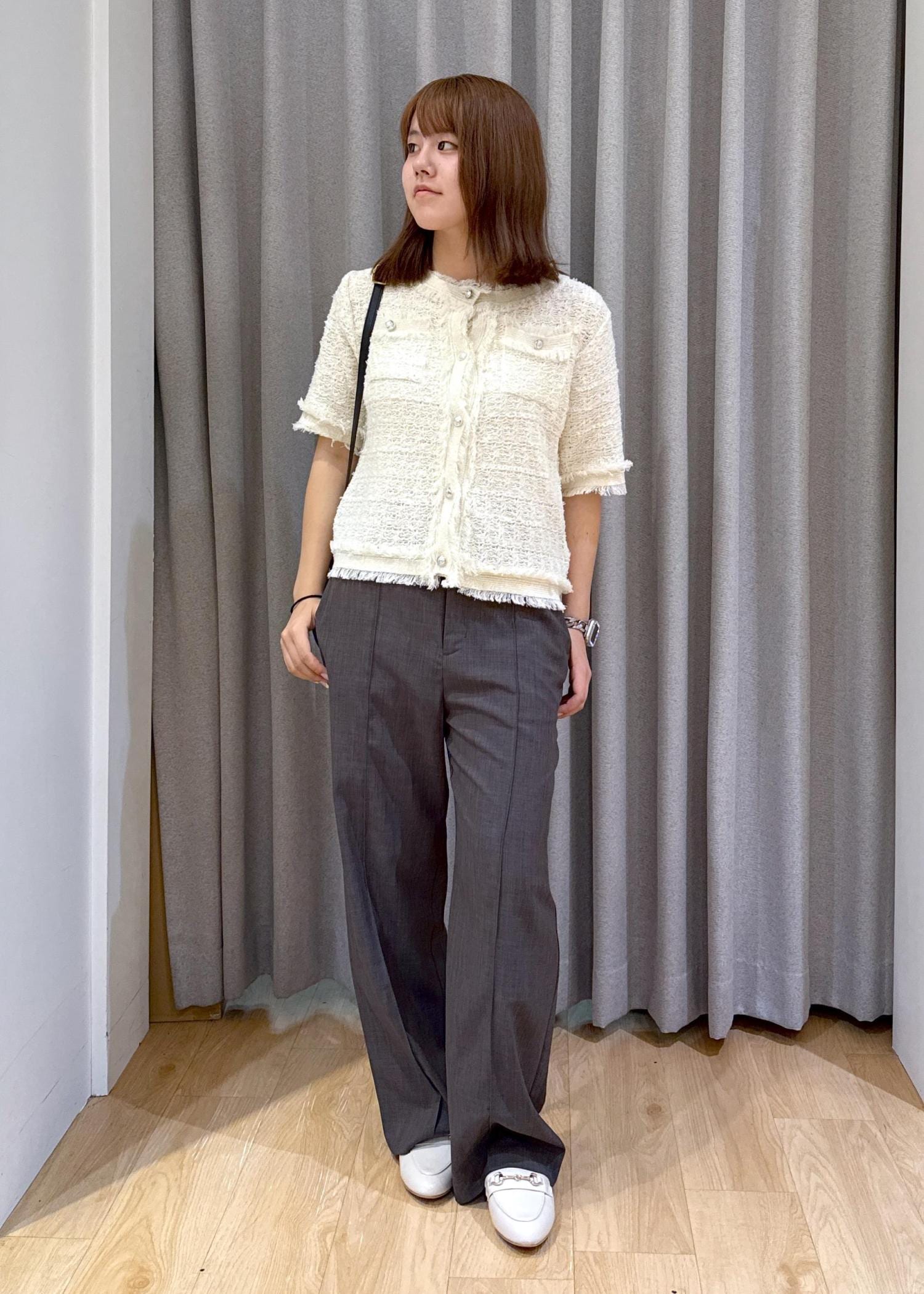 ツイードが甘めな印象ですが、シンプルなデザインなので