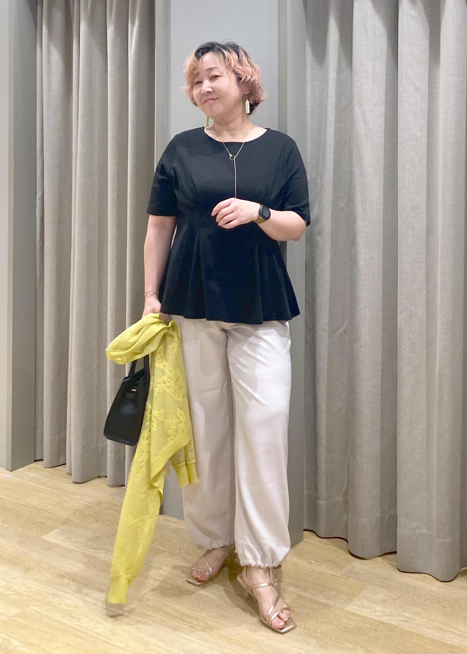 明るめのパンツで抜け感を出しつつ、黒トップスできちんと感もキープ出来ます。