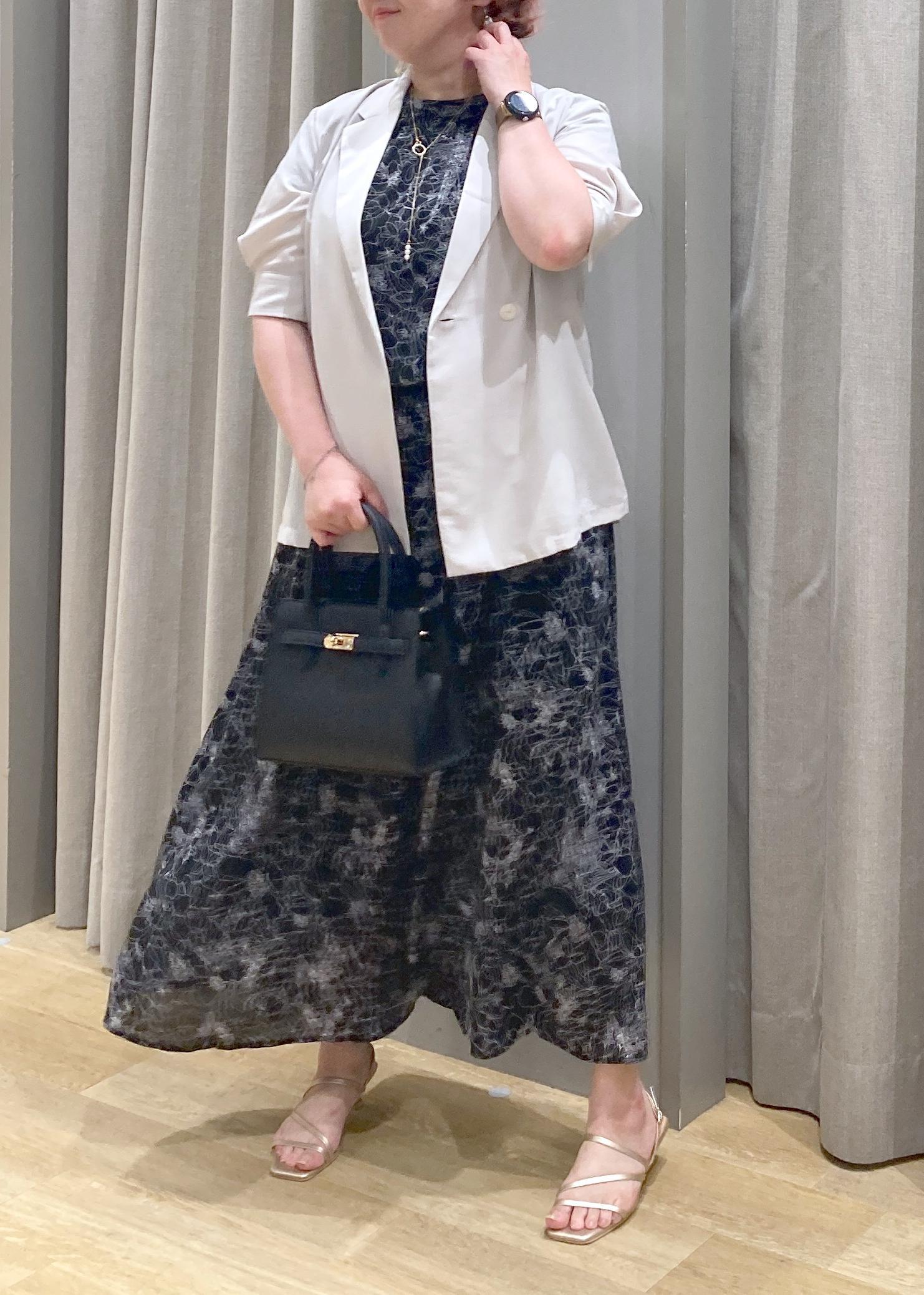 ふわっとワンピにジャケットを羽織るだけで、即お仕事仕様に✨