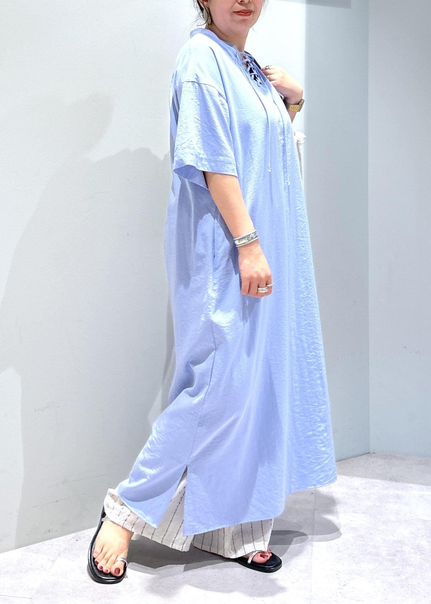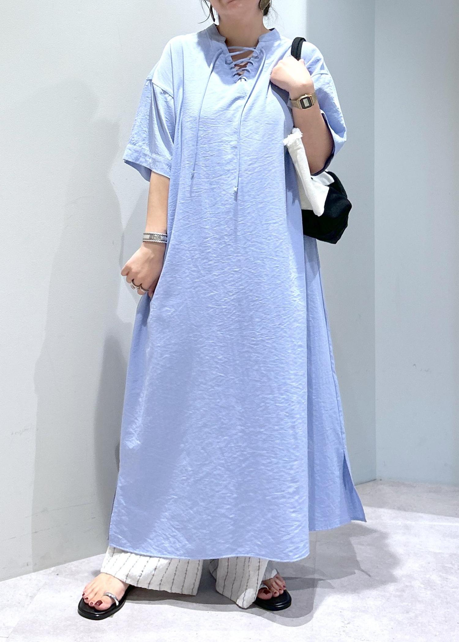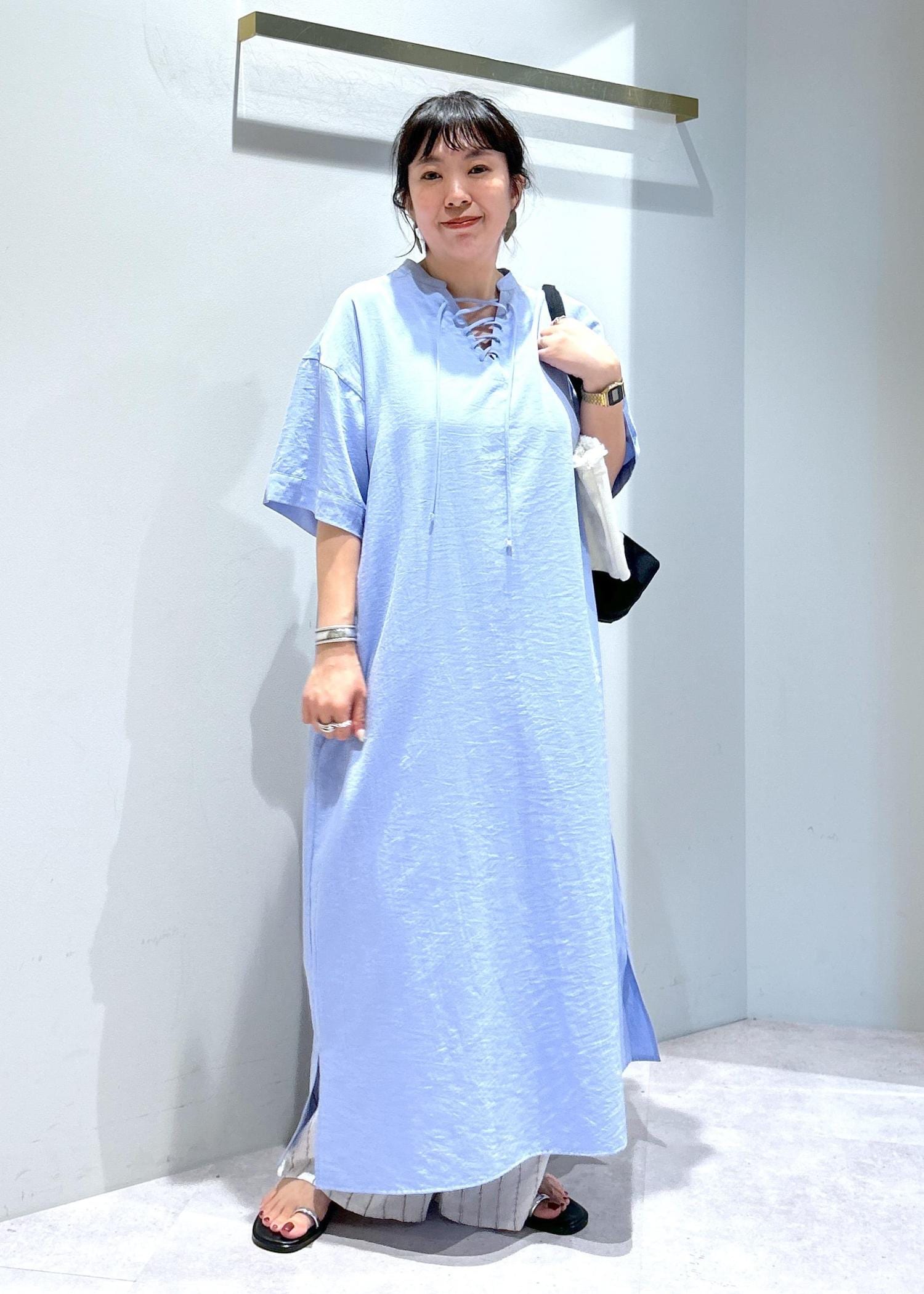 LE CERCLE par ropéレースアップカフタンワンピースブルー系 / F¥4,356レビュー152cmでくるぶし上の着丈です。