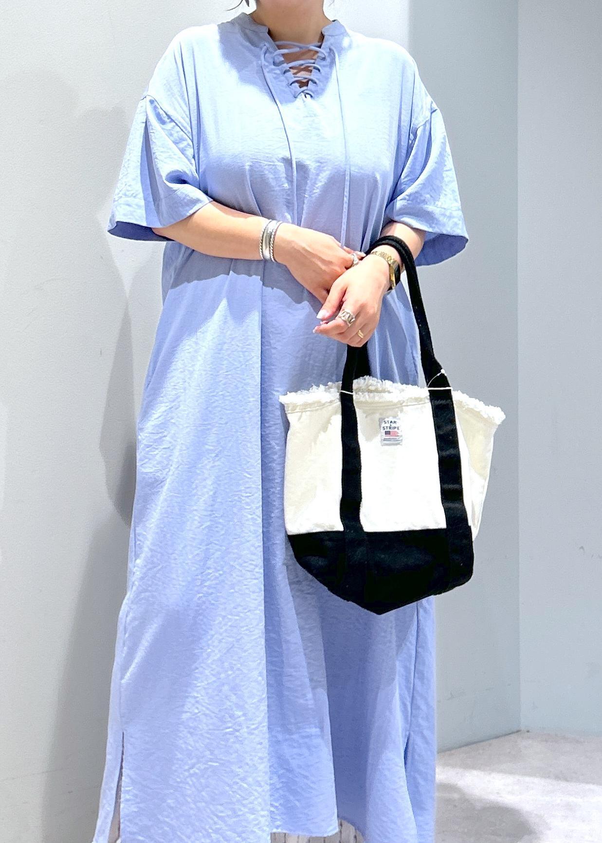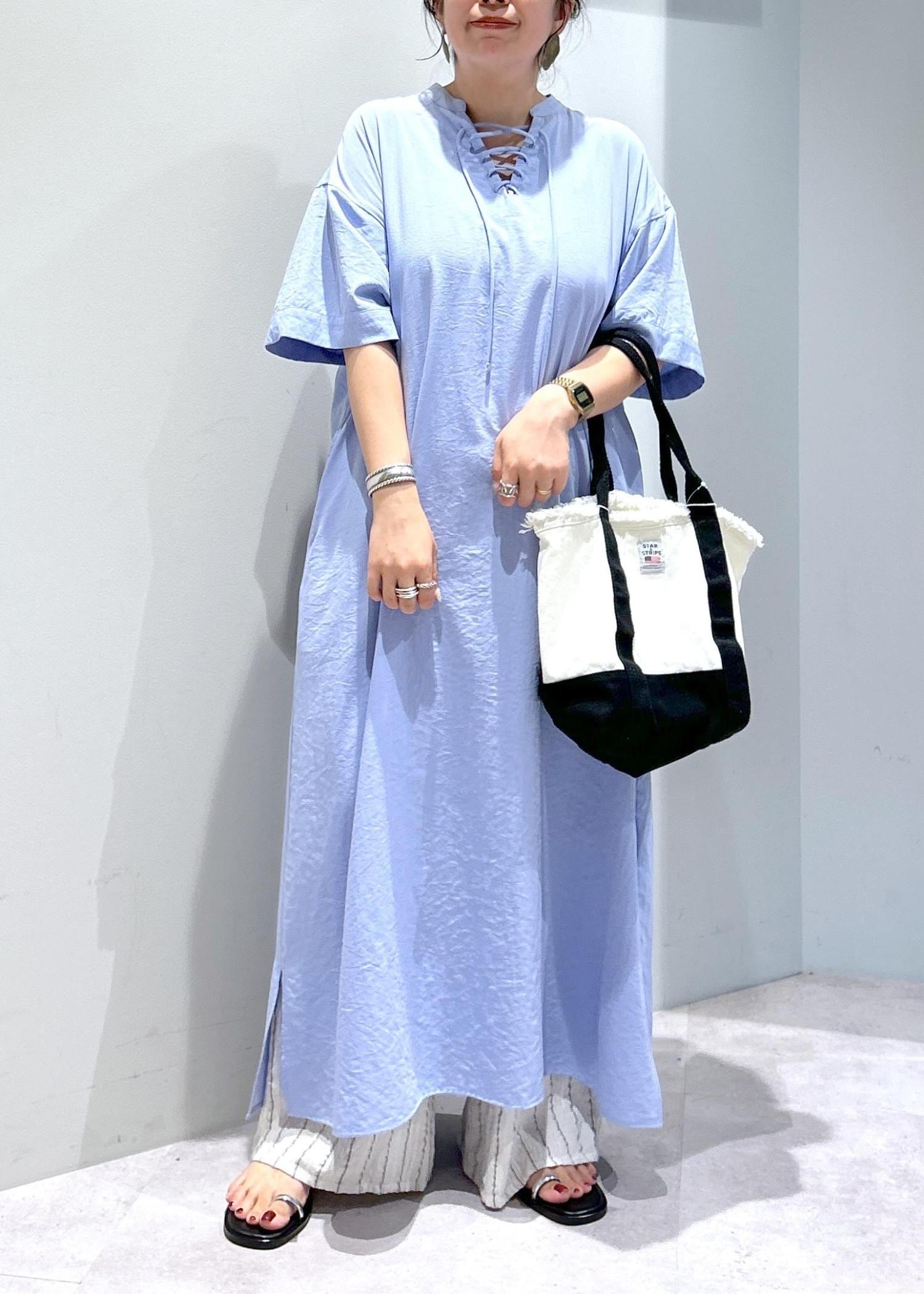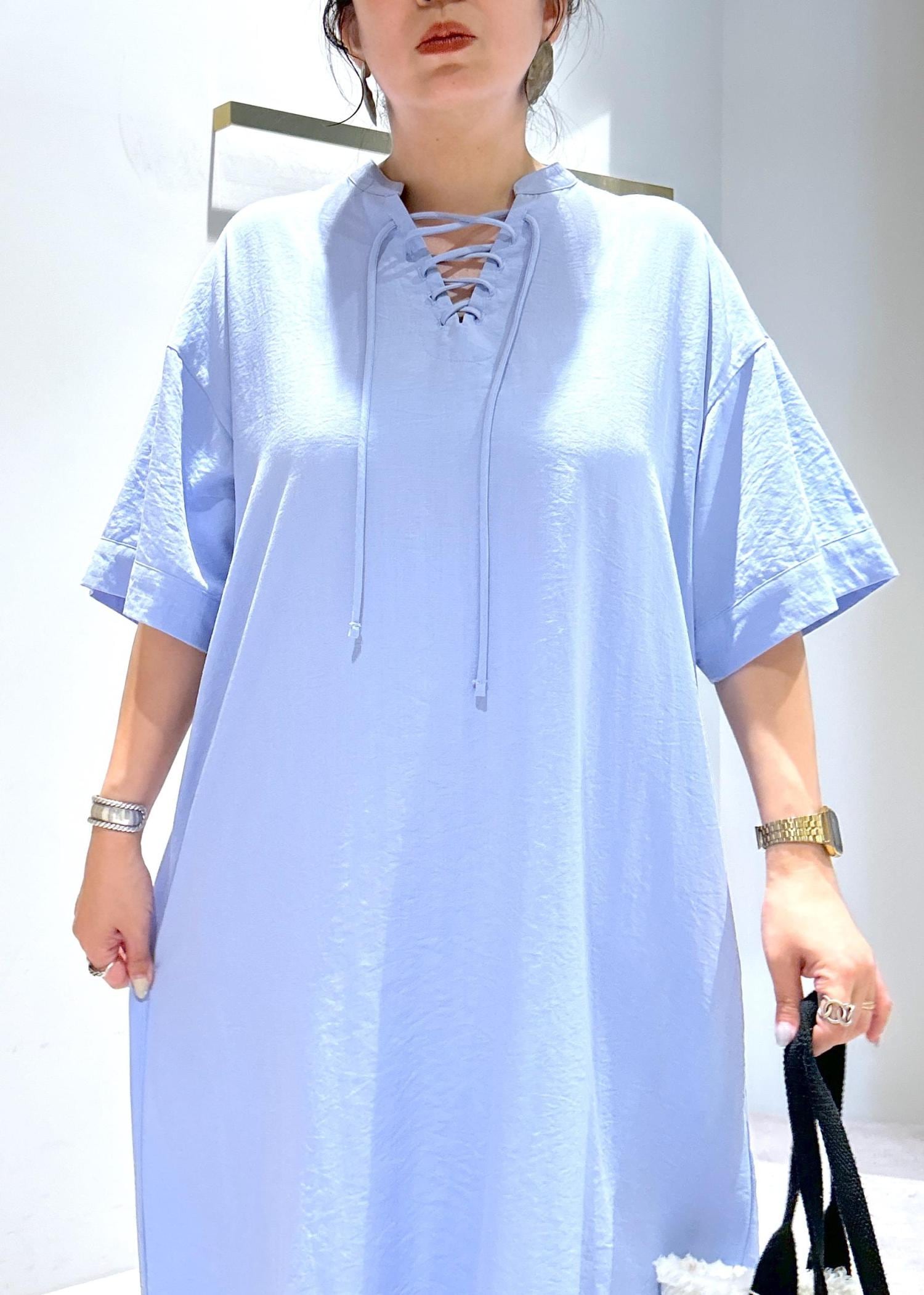 LE CERCLE par ropéレースアップカフタンワンピースブルー系 / F¥4,356レビュー152cmでくるぶし上の着丈です。