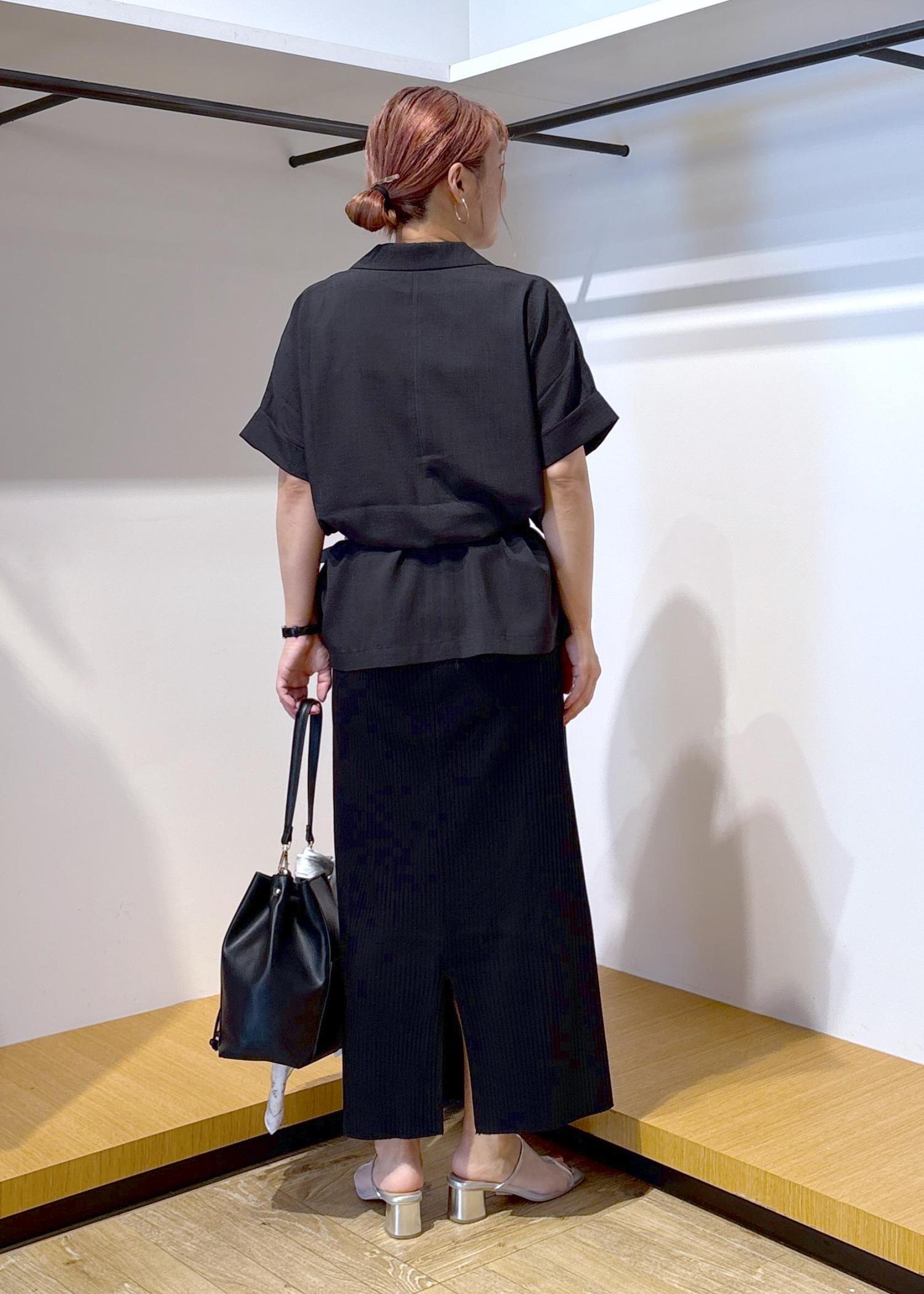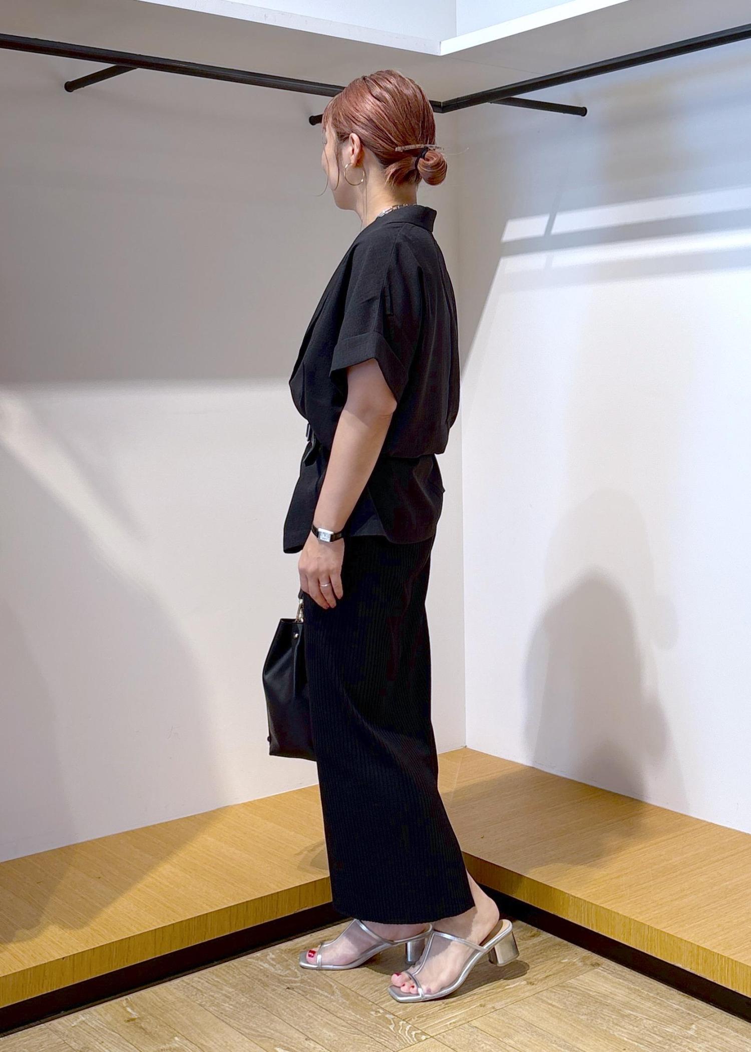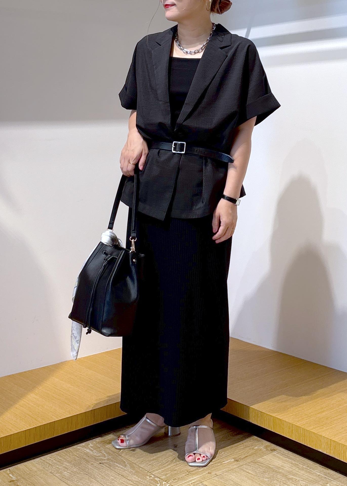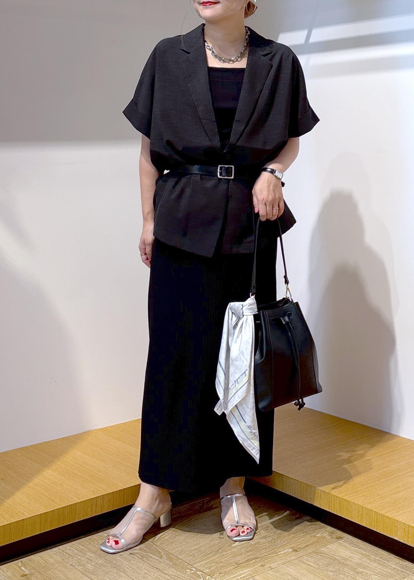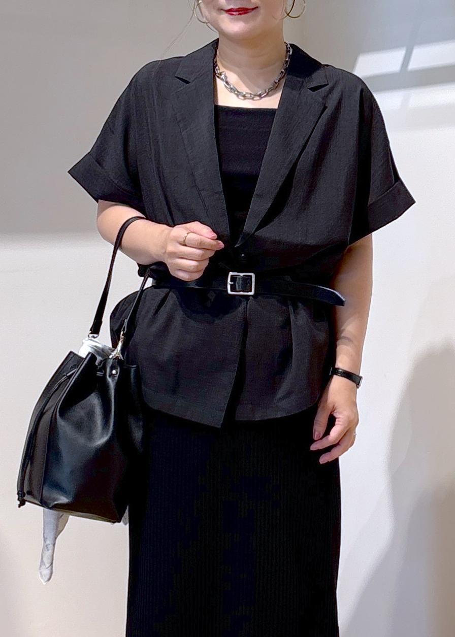 羽織りとして大活躍の半袖ジャケットですが、少し気分を変えてベルトでブラウジングして着用しました☆