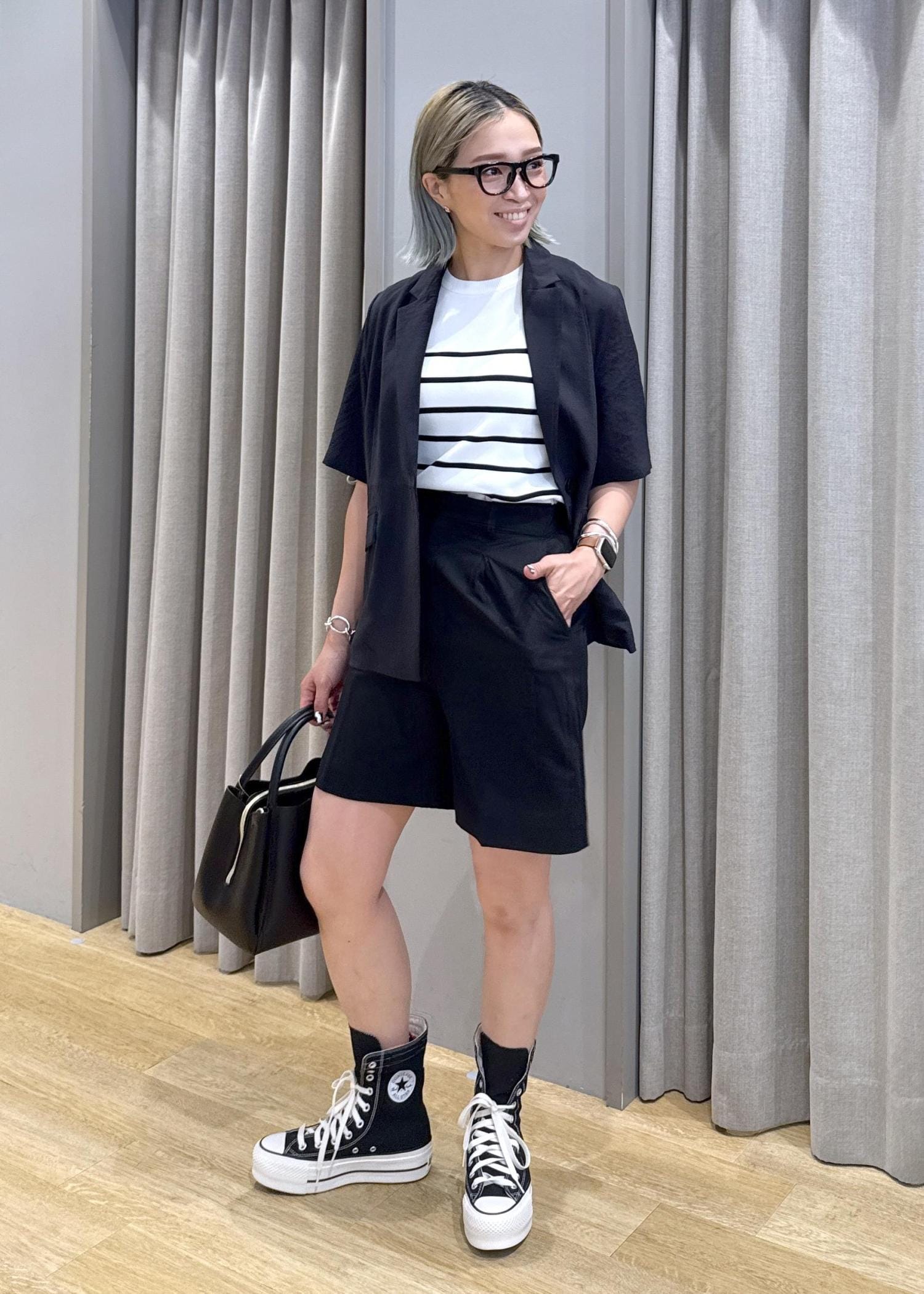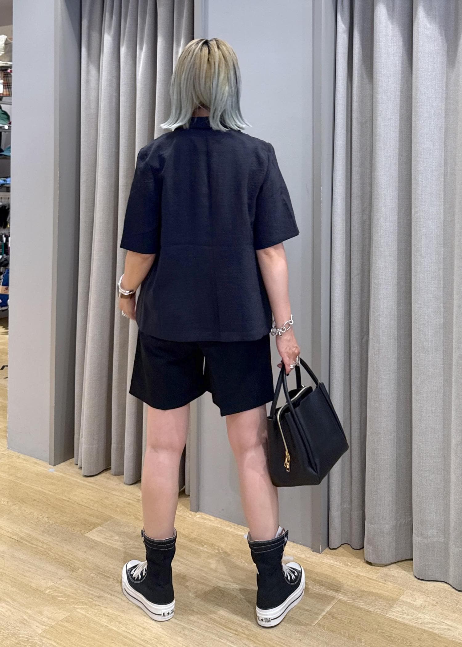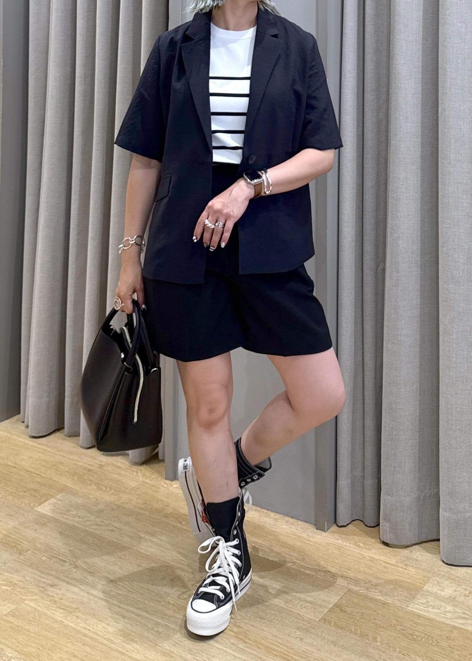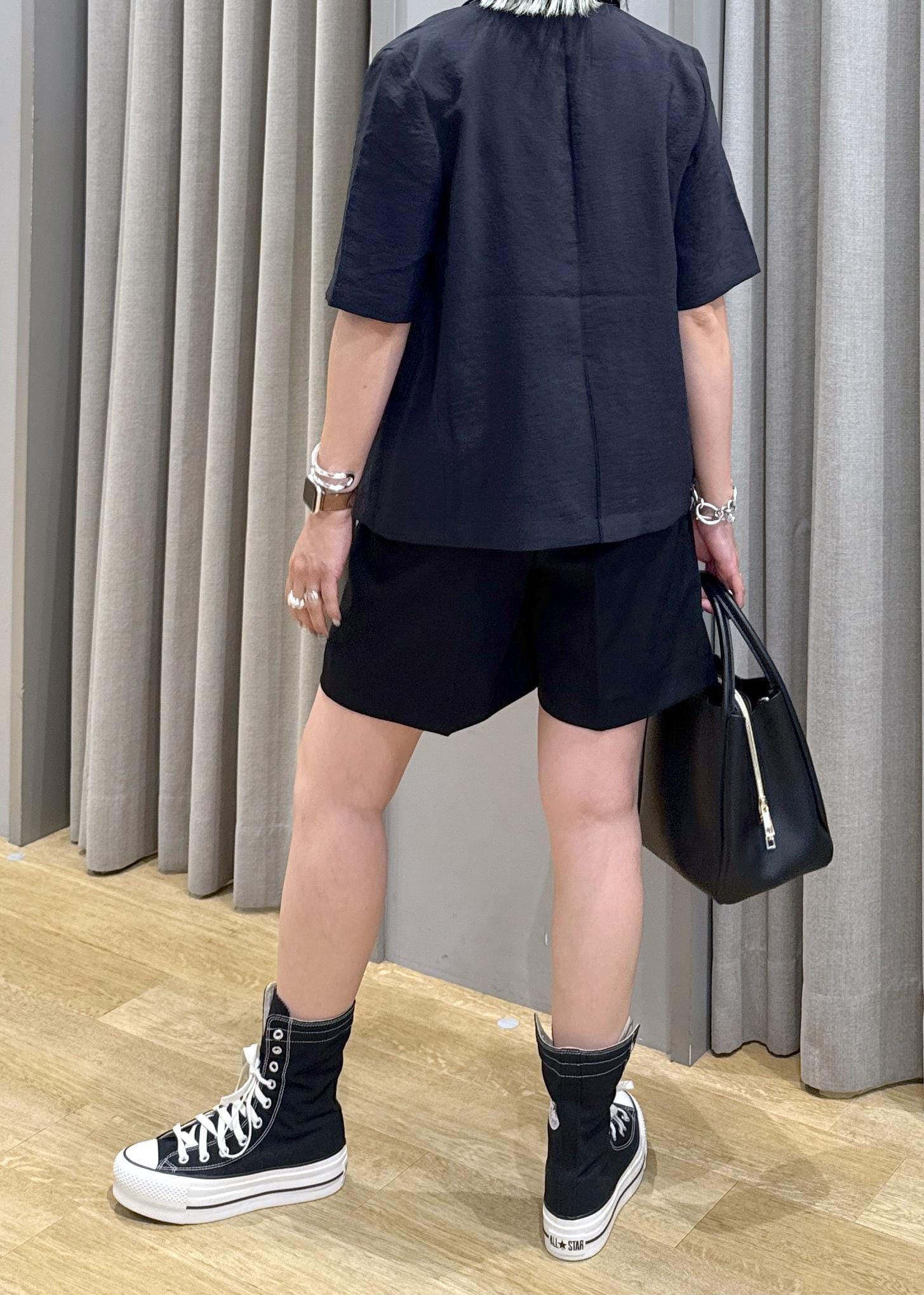 しっかりとした丈感とセンタープリーツで美脚効果抜群のハーフパンツ。