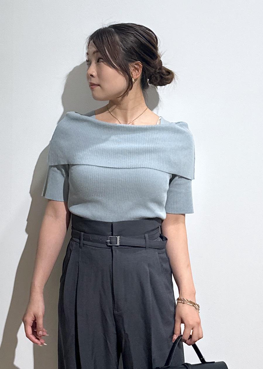 VIS【アンチピリング/UVケア/洗える】オフショルハーフスリーブニットライトグリーン / F¥4,939レビュー伸縮性のある素材感です。