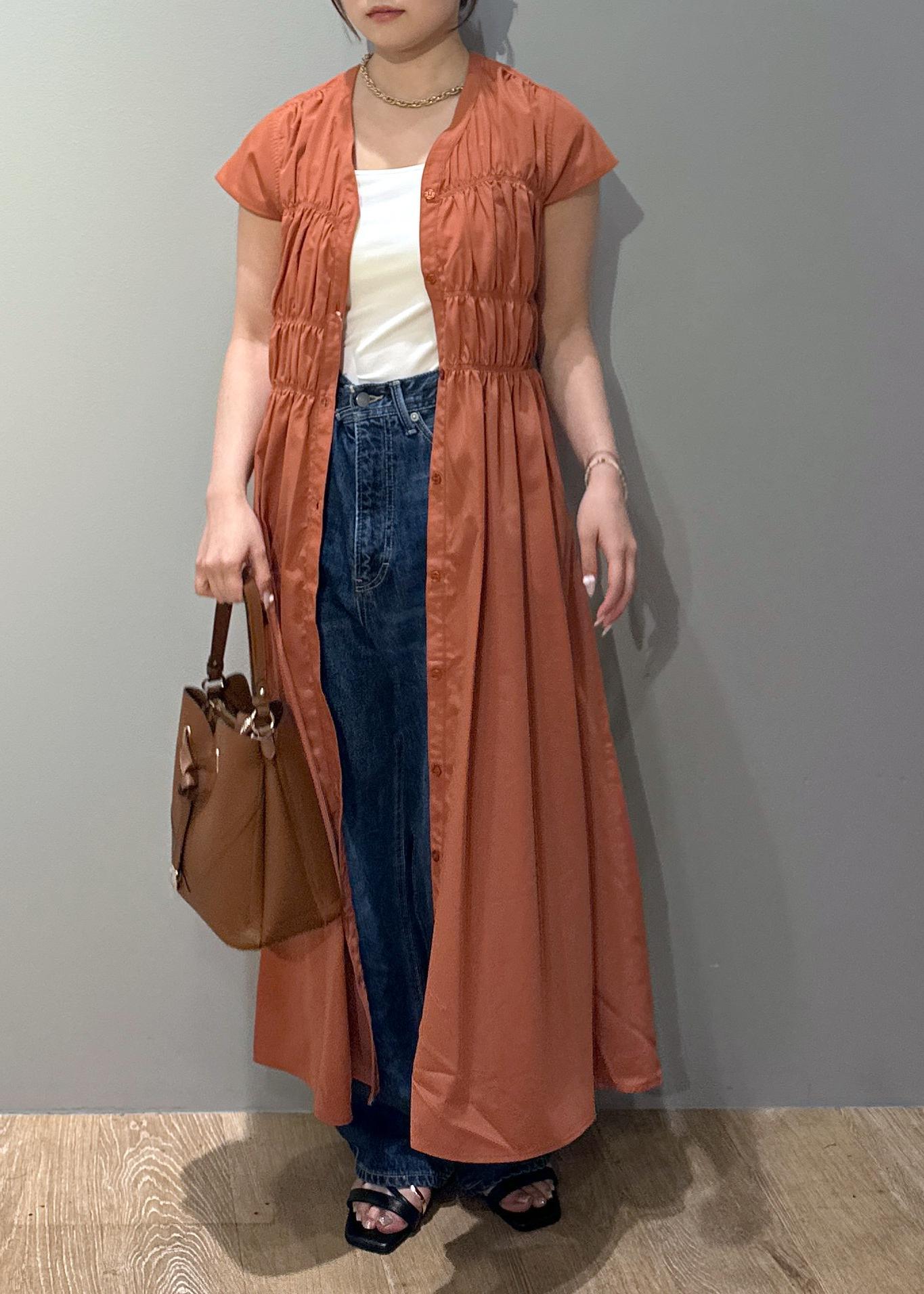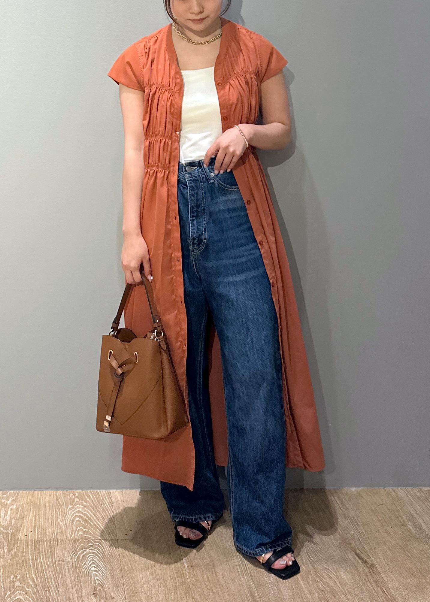 低身長さんや小柄な方は、足元に高さのある靴を着用すると、スッキリした印象で着用できるのでおすすめです! -