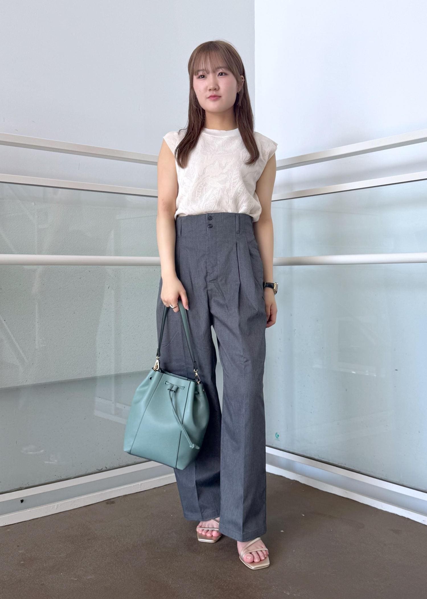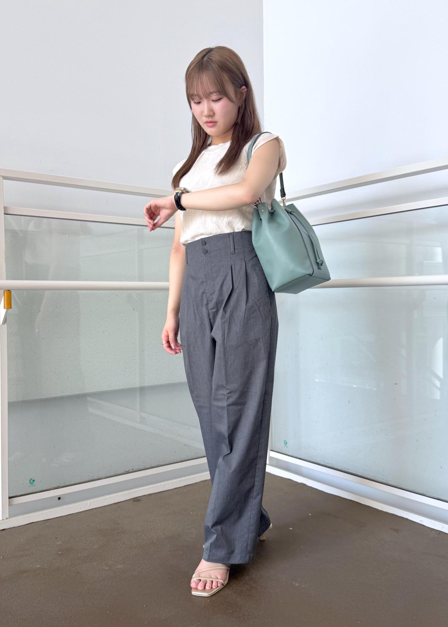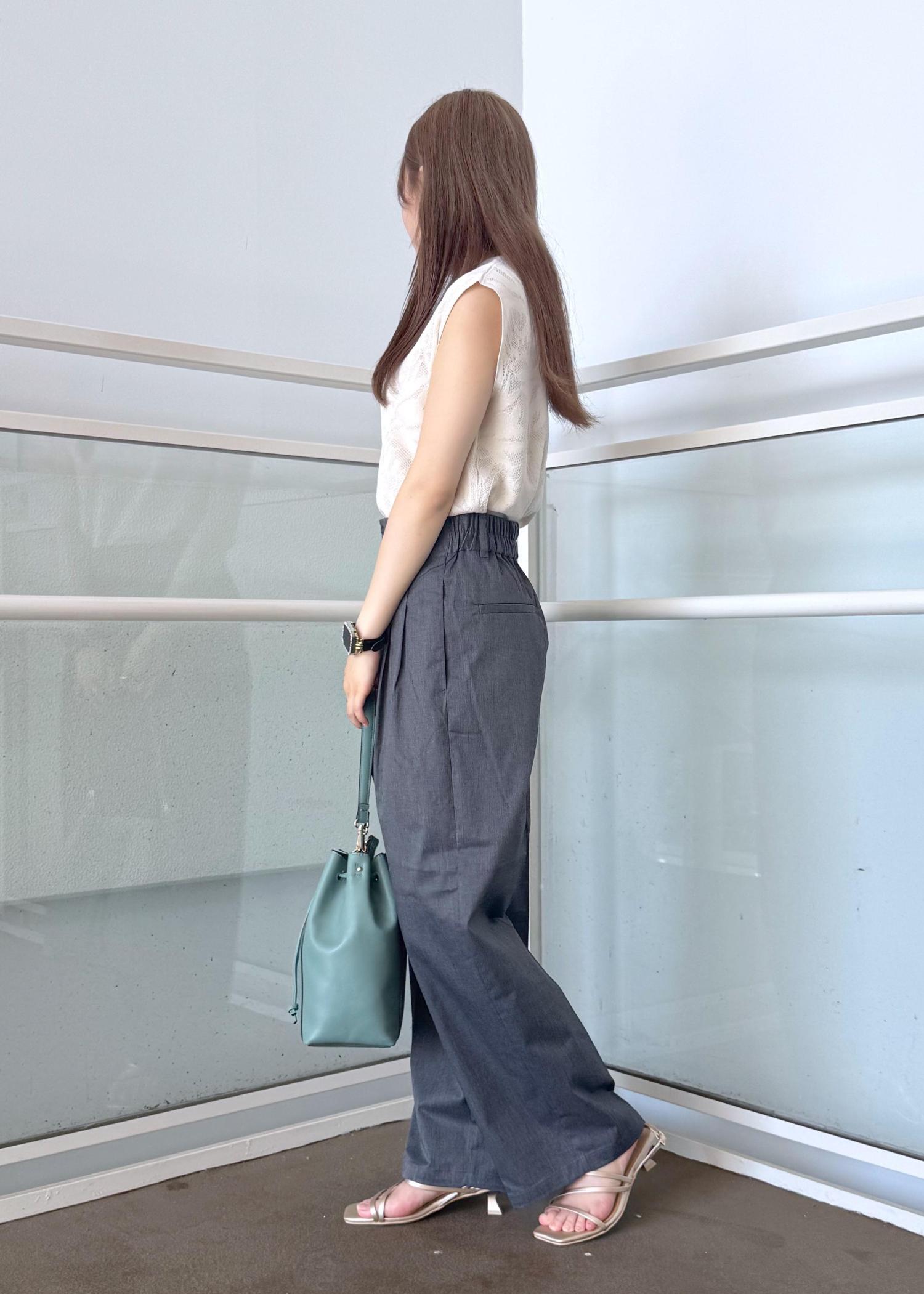 タックチノワイドパンツは、ストレッチ性があり、UVカットと接触冷感付きです!生地感がしっかりとしているので、オンオフ兼用できちんと感がでます!