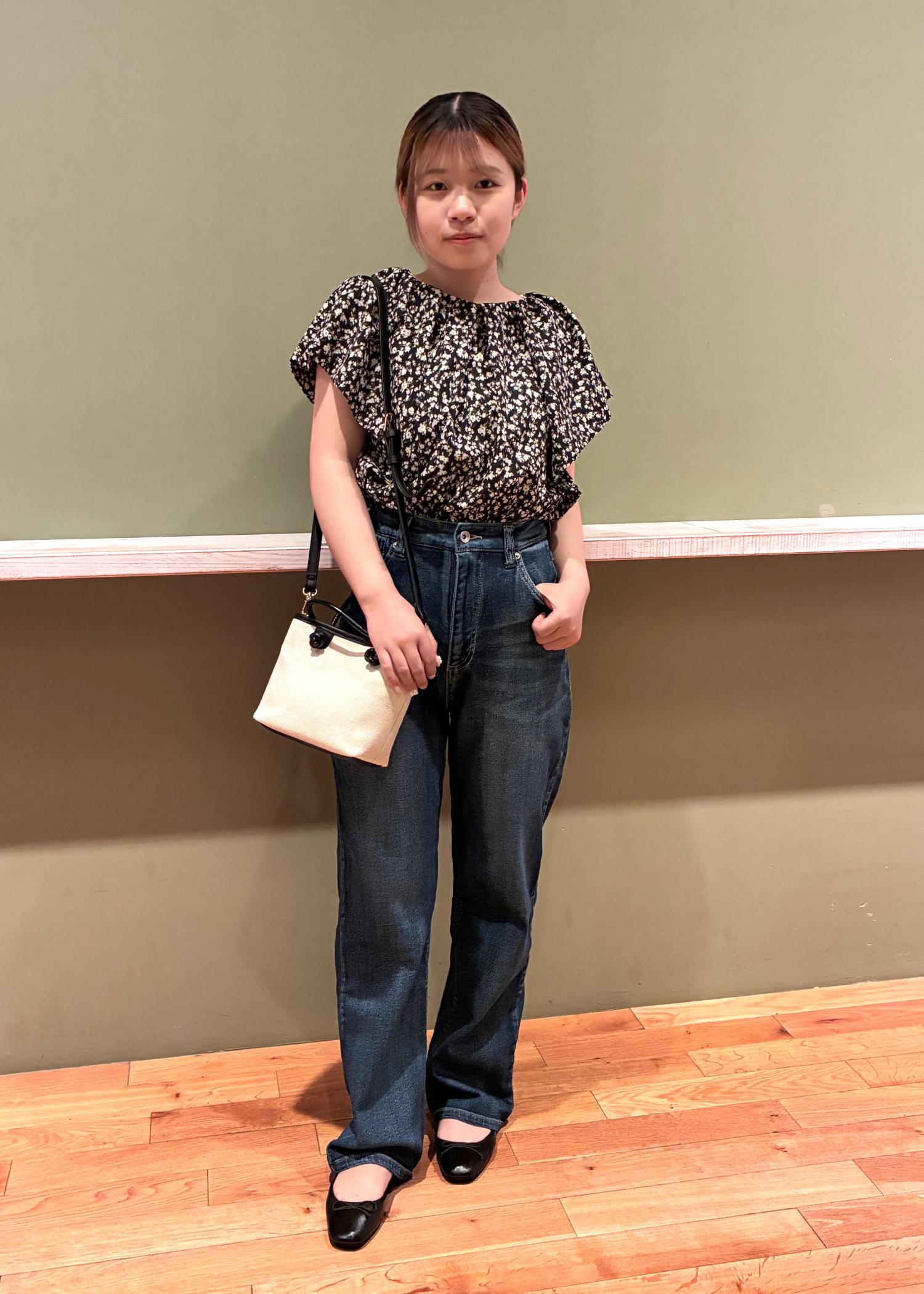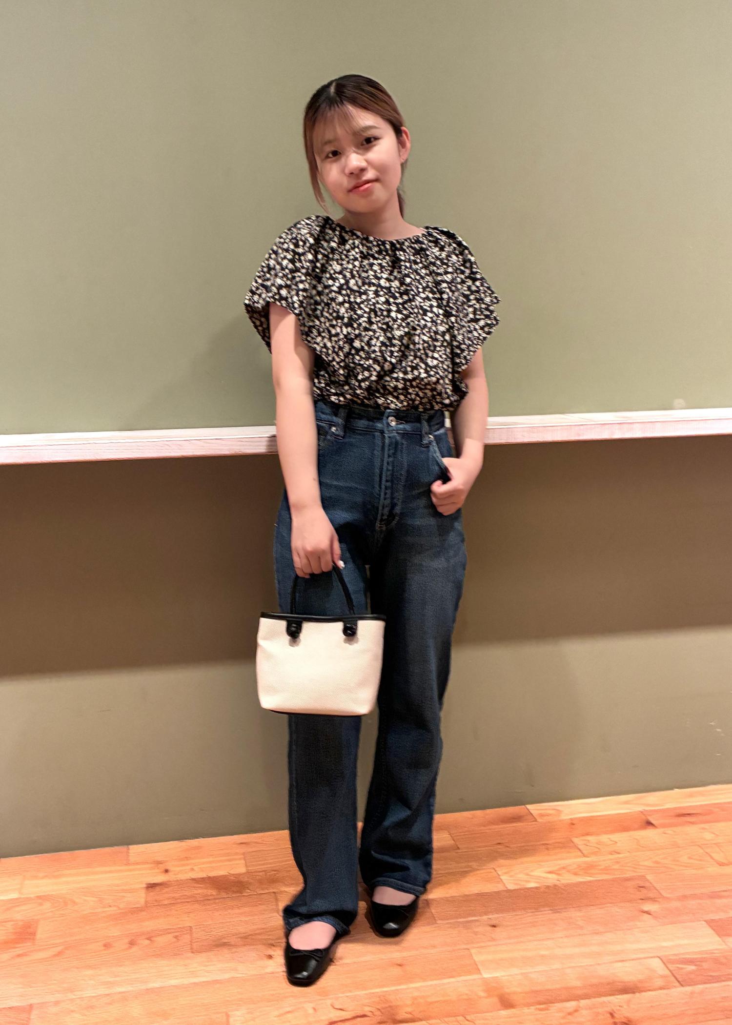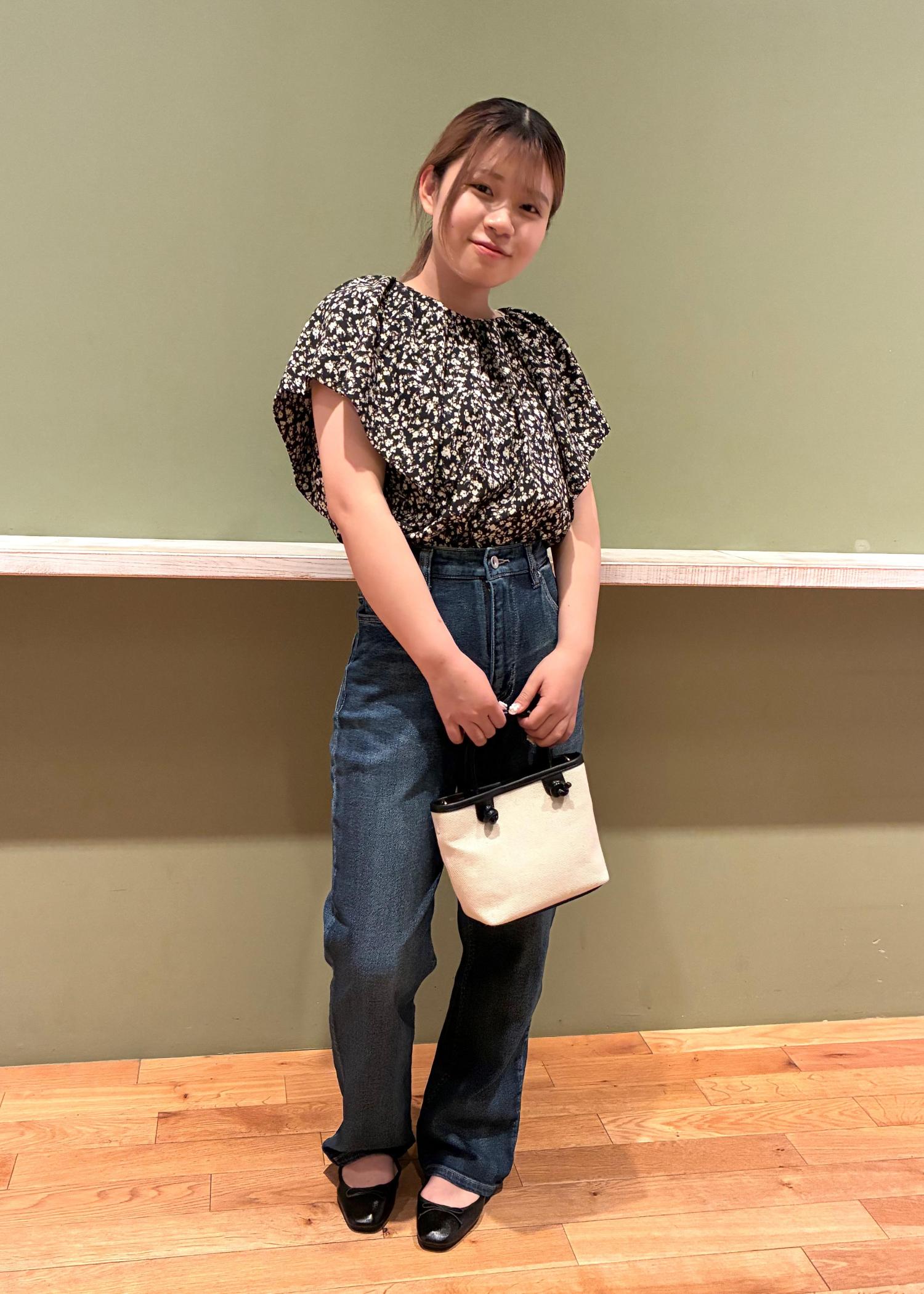 今回はブラックをメインにトップスの花柄で可愛らしさも取り入れた大人カジュアルなコーデにしてみました!