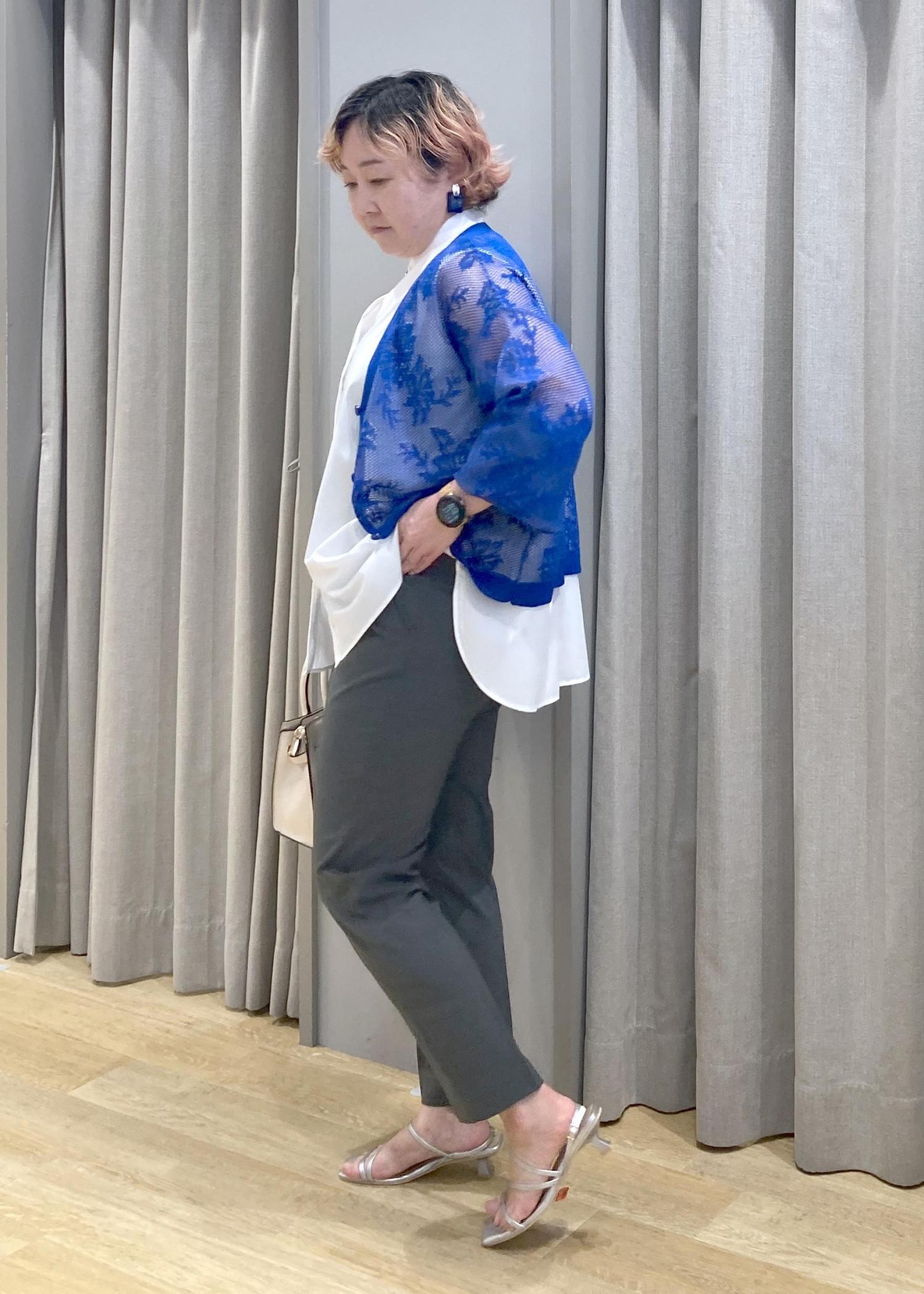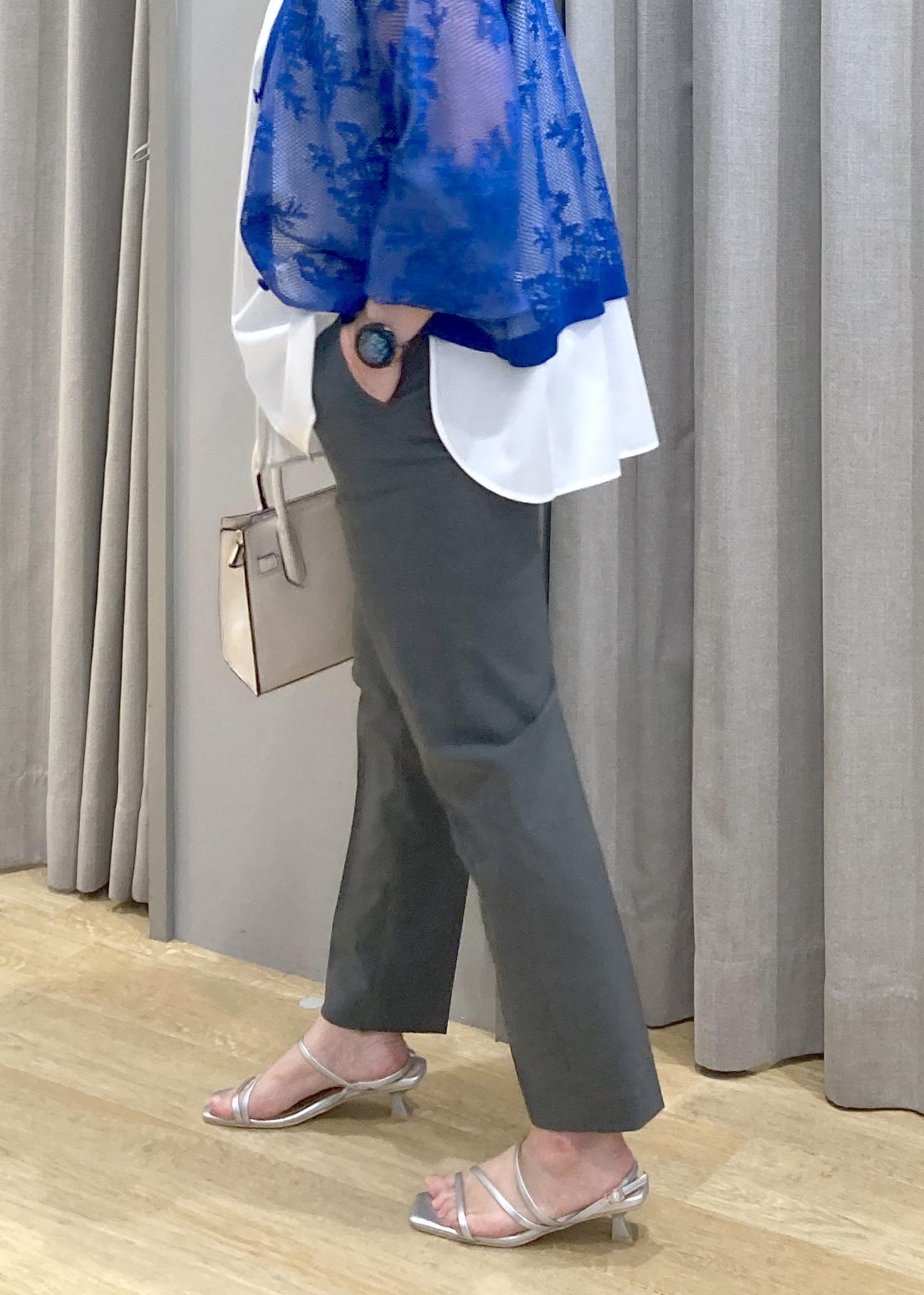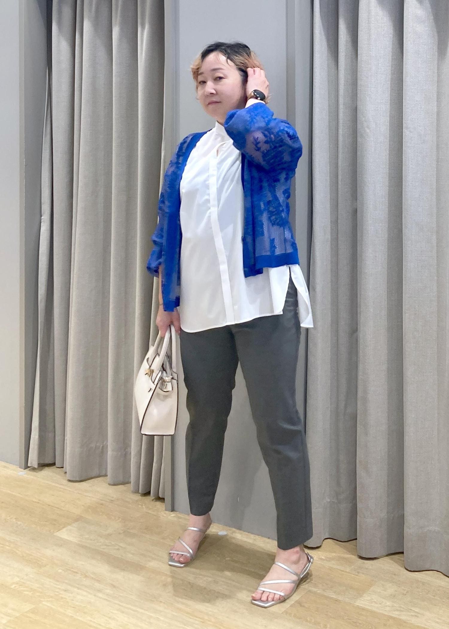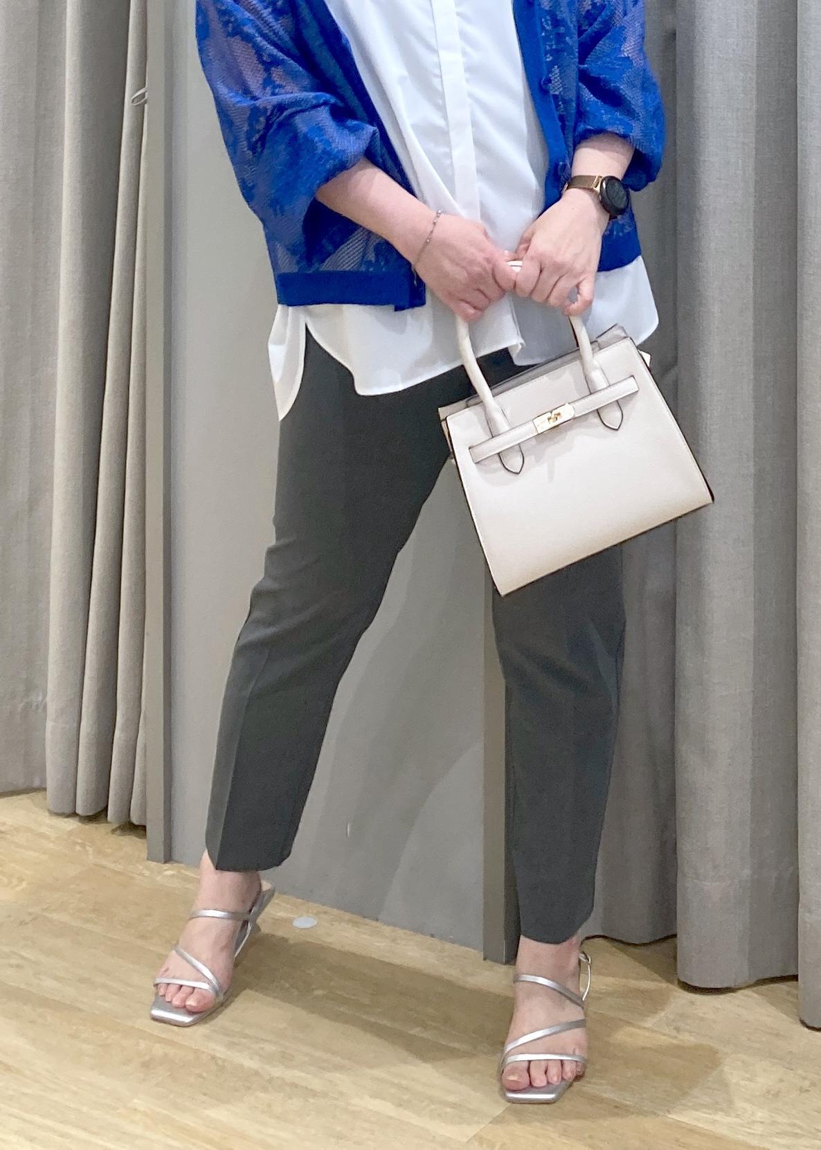 ボトムはテーパードでスッキリ見えするので、きちんと感も出て、お仕事にもぴったりです