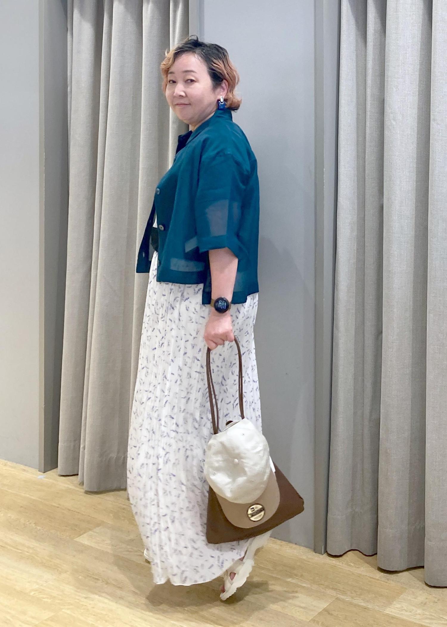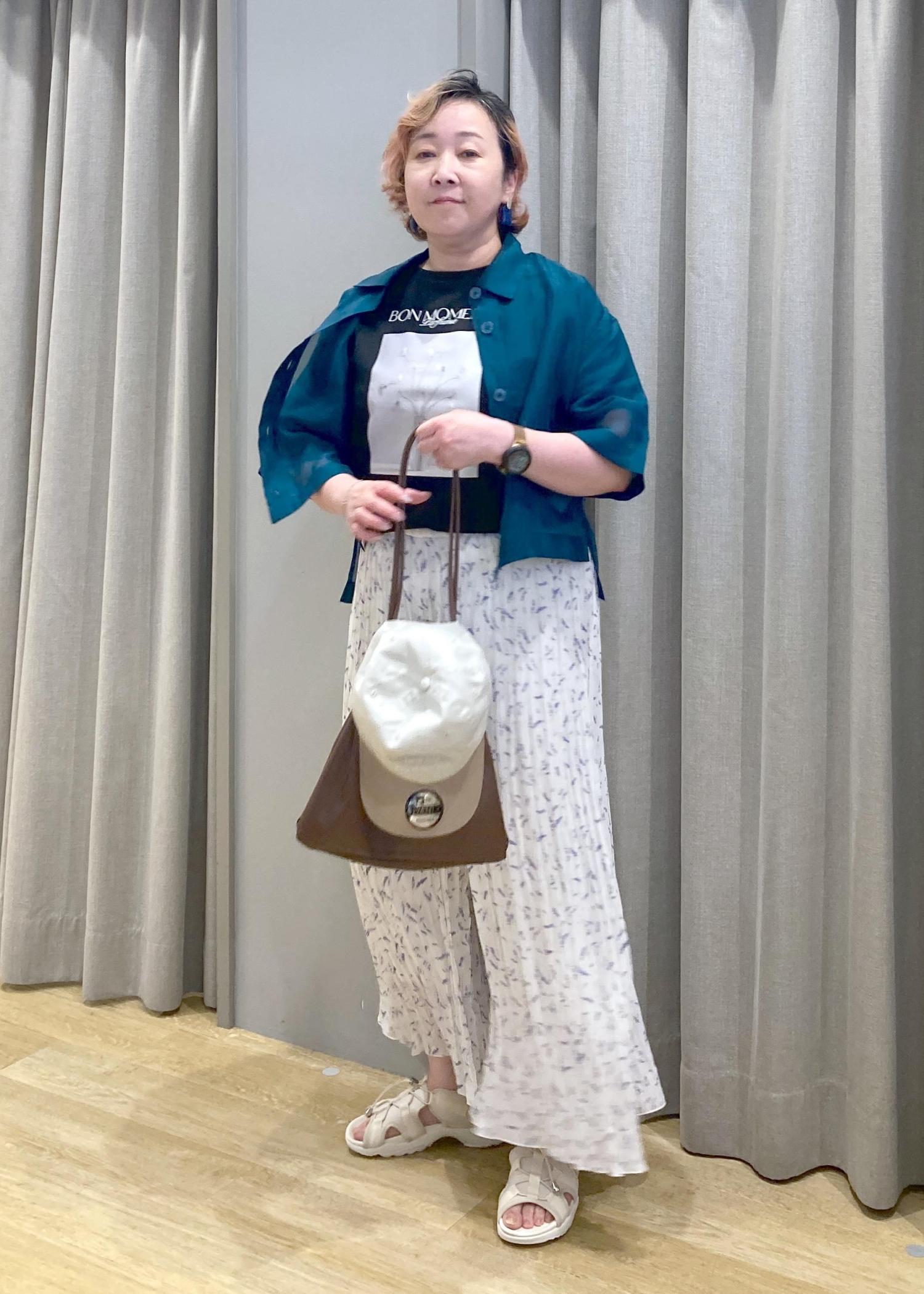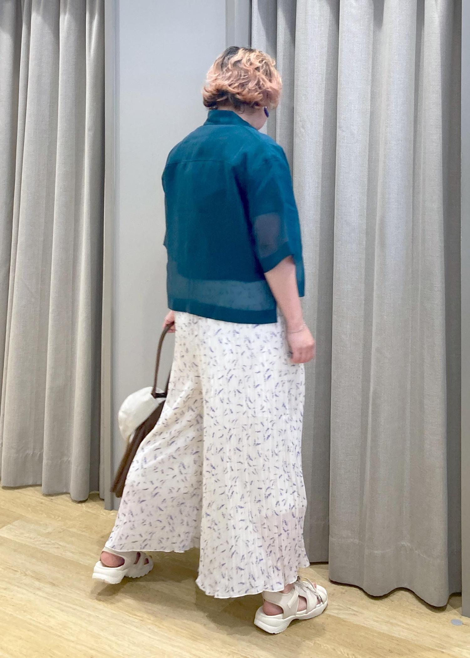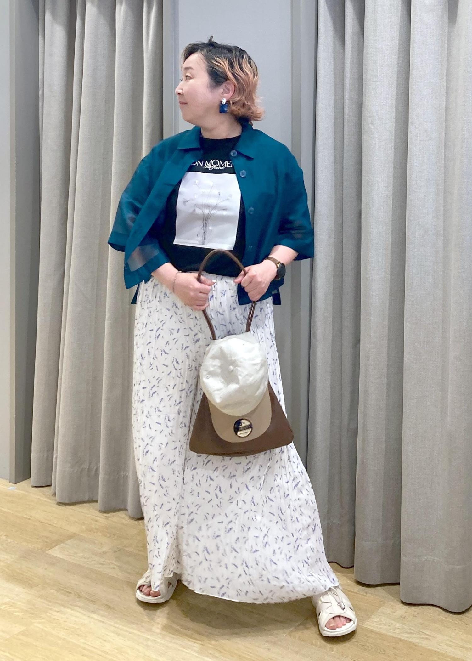 ゆったり羽織れるシアーシャツは、体型をさりげなくカバーしつつ涼しげな印象に♪