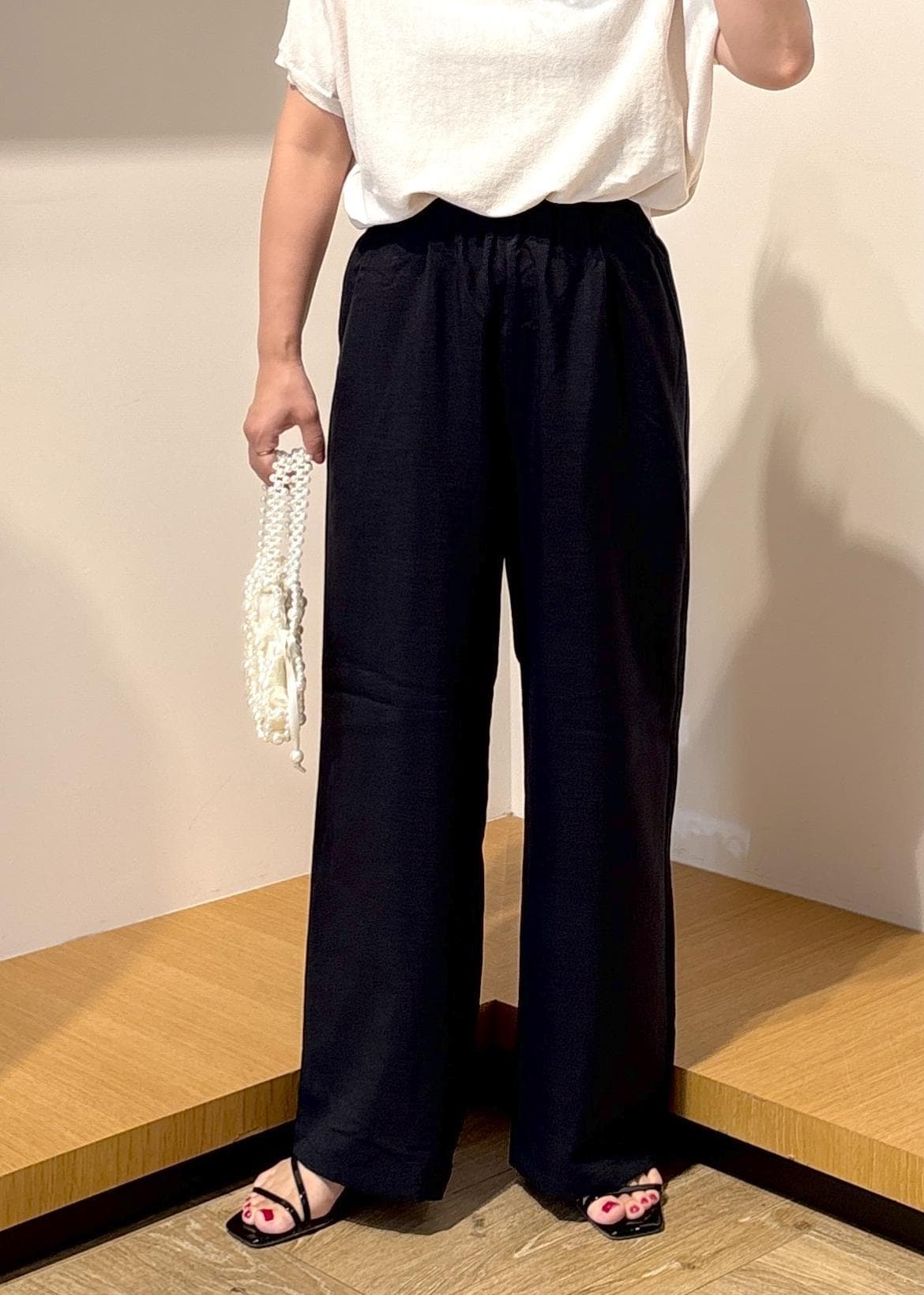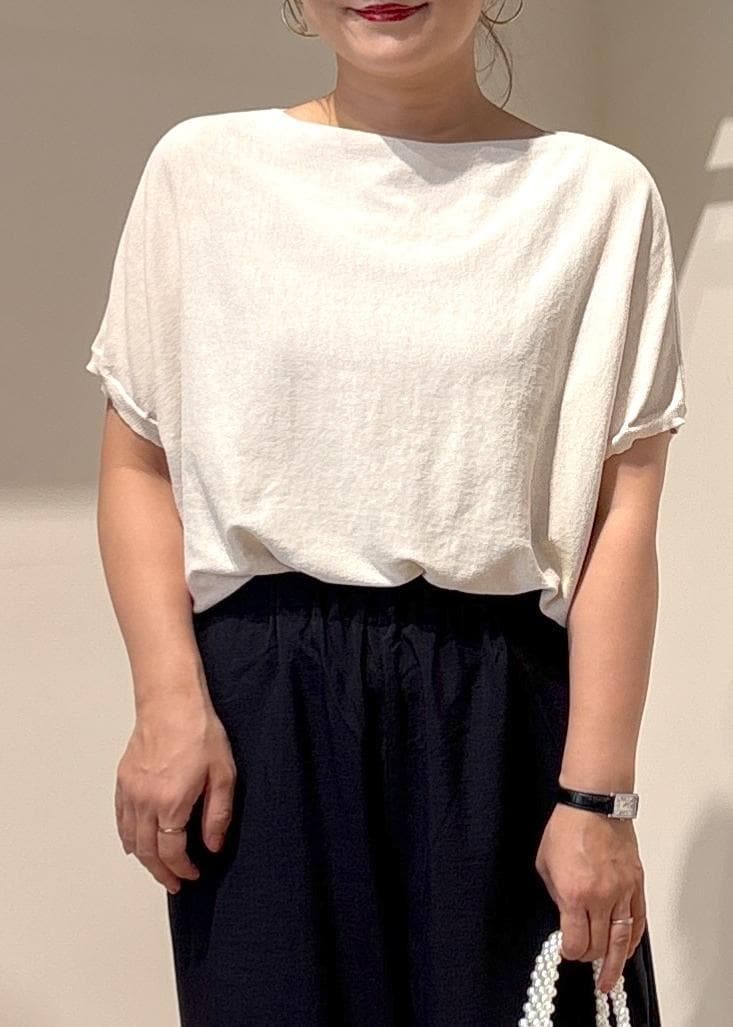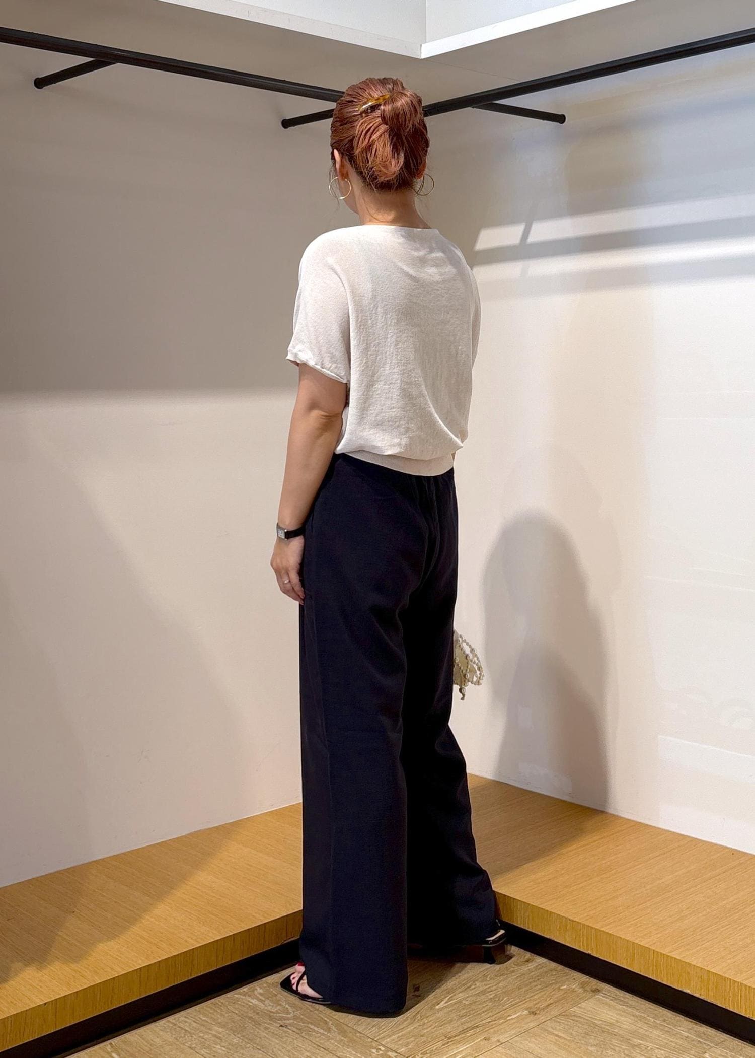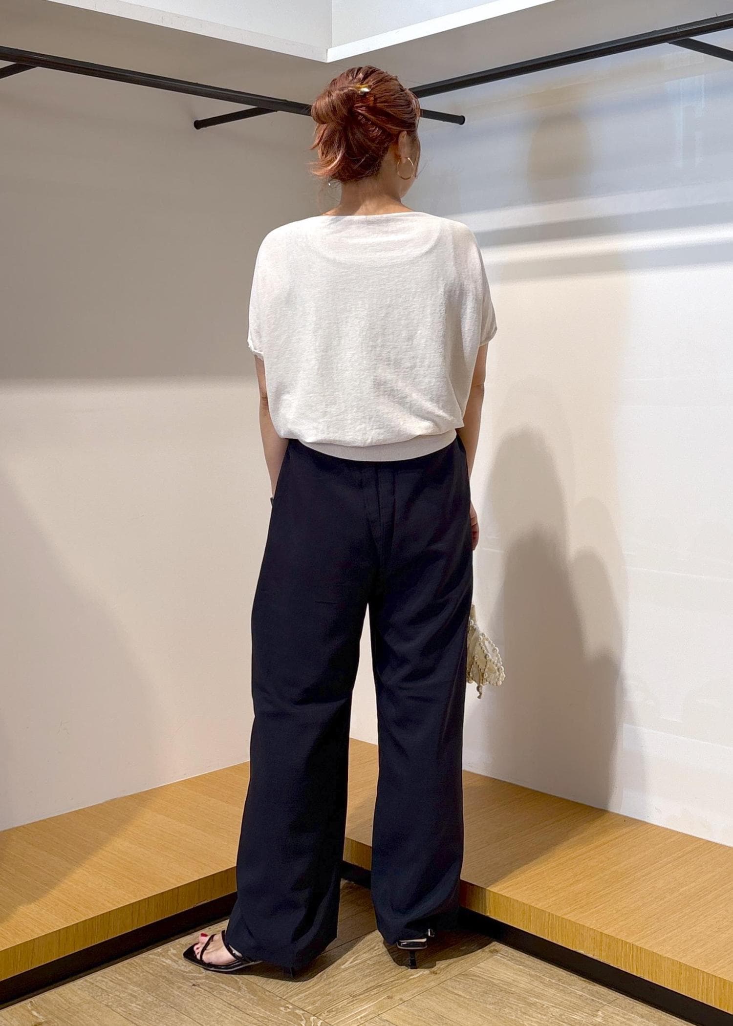 汗をかいても体にピタピタ張り付かないゆるっとしたトップスに、風通しの良いさらさらなワイドパンツを合わせてストレスフリーです!