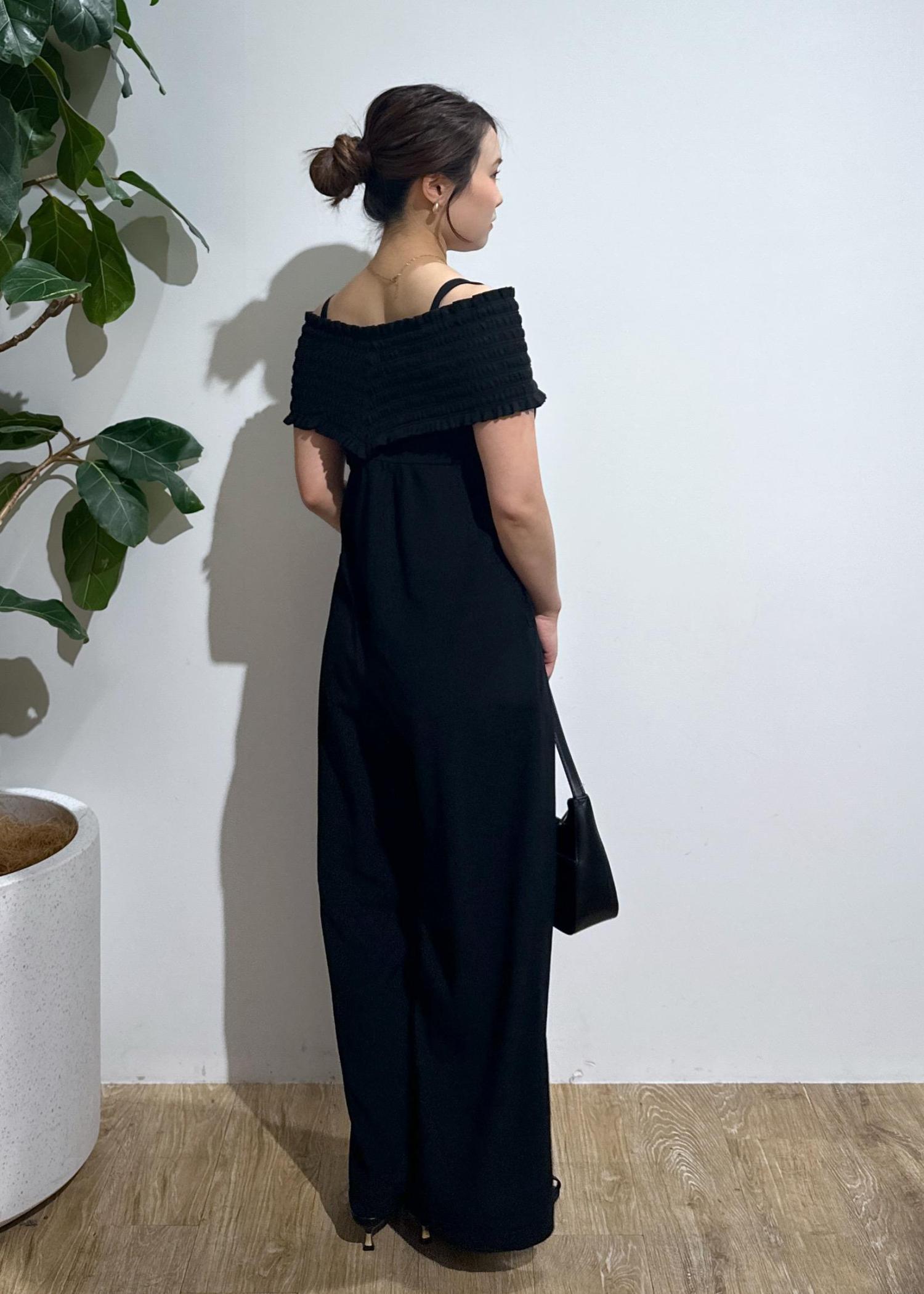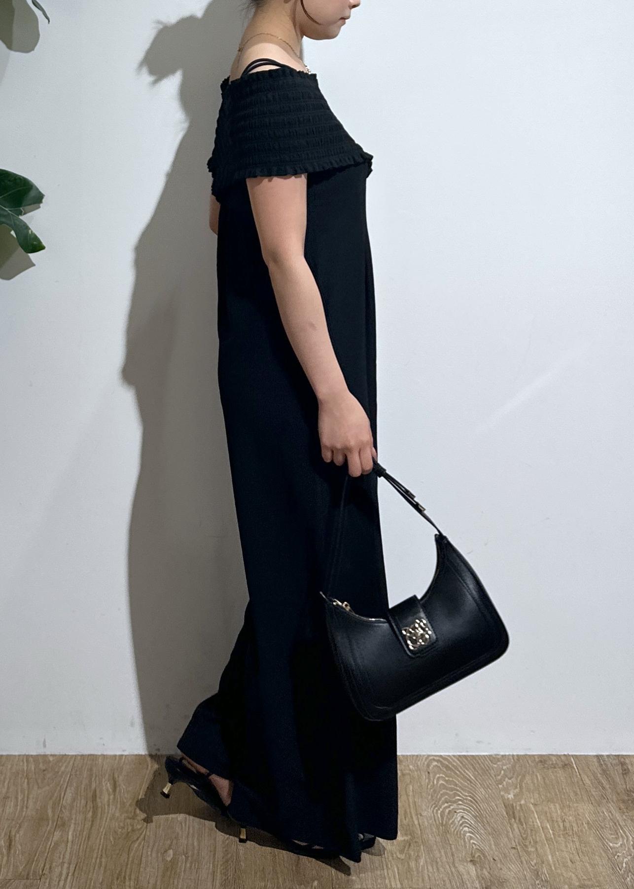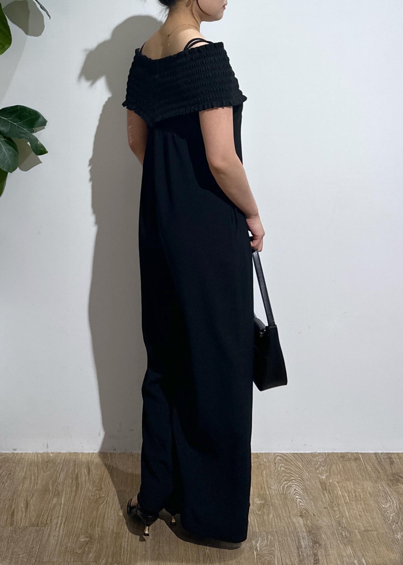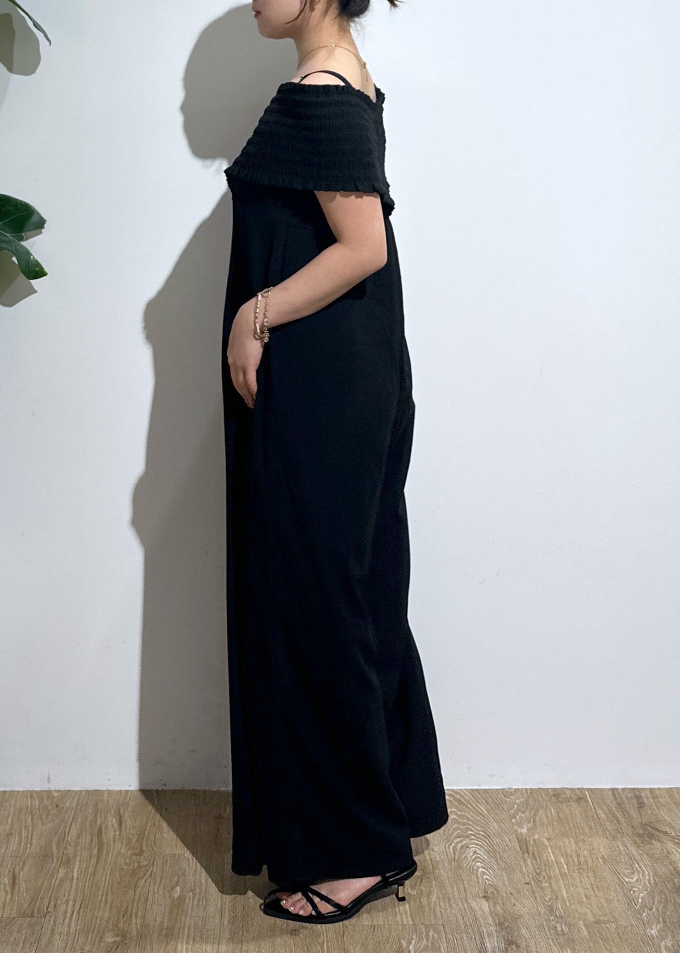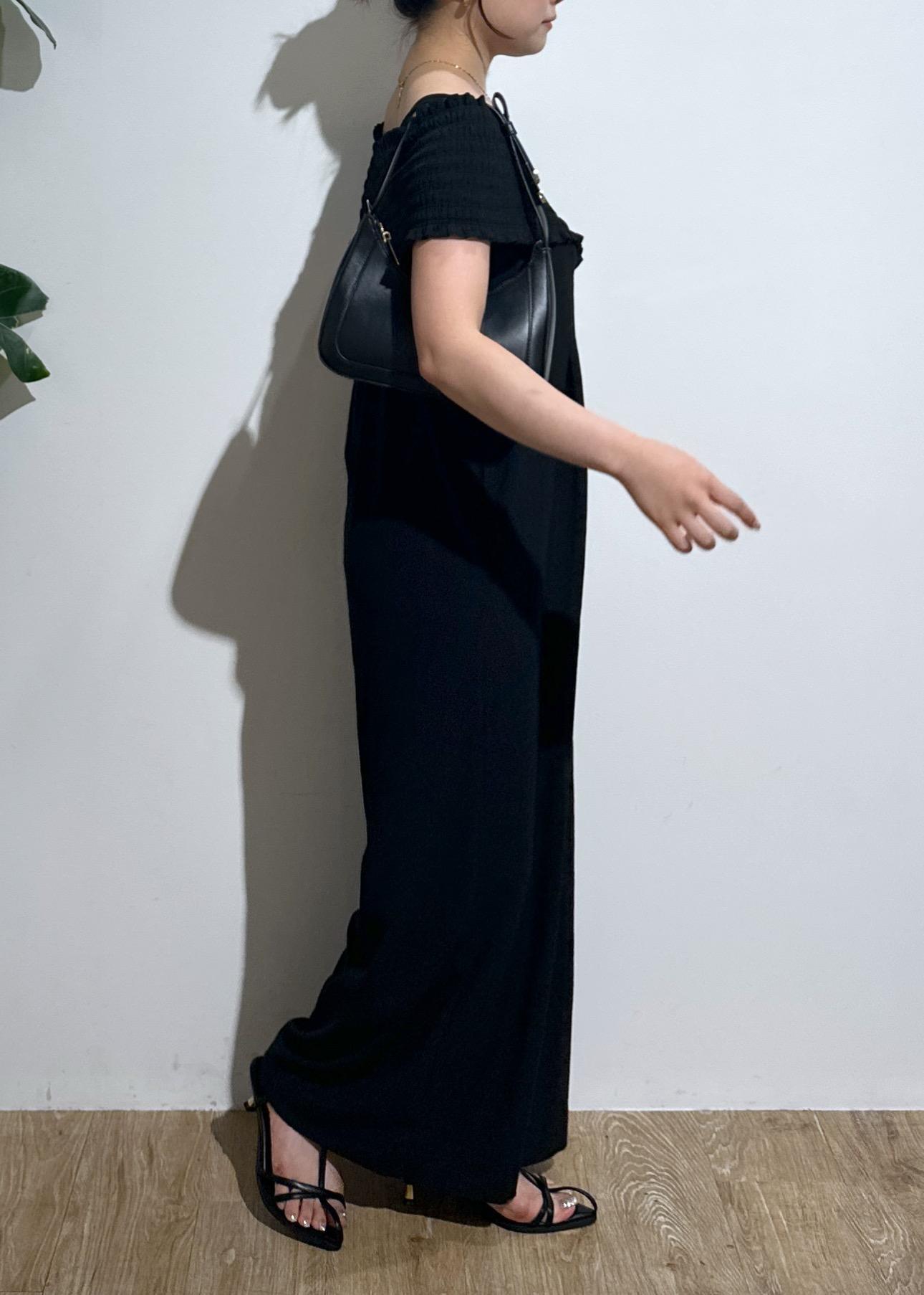 アウトレットVISシャーリングオフショルダーオールインワンブラック / F¥6,327レビューゆとりがあり、肩紐は調節可能なので幅広い体型の方が着用しやすいオールインワンです。