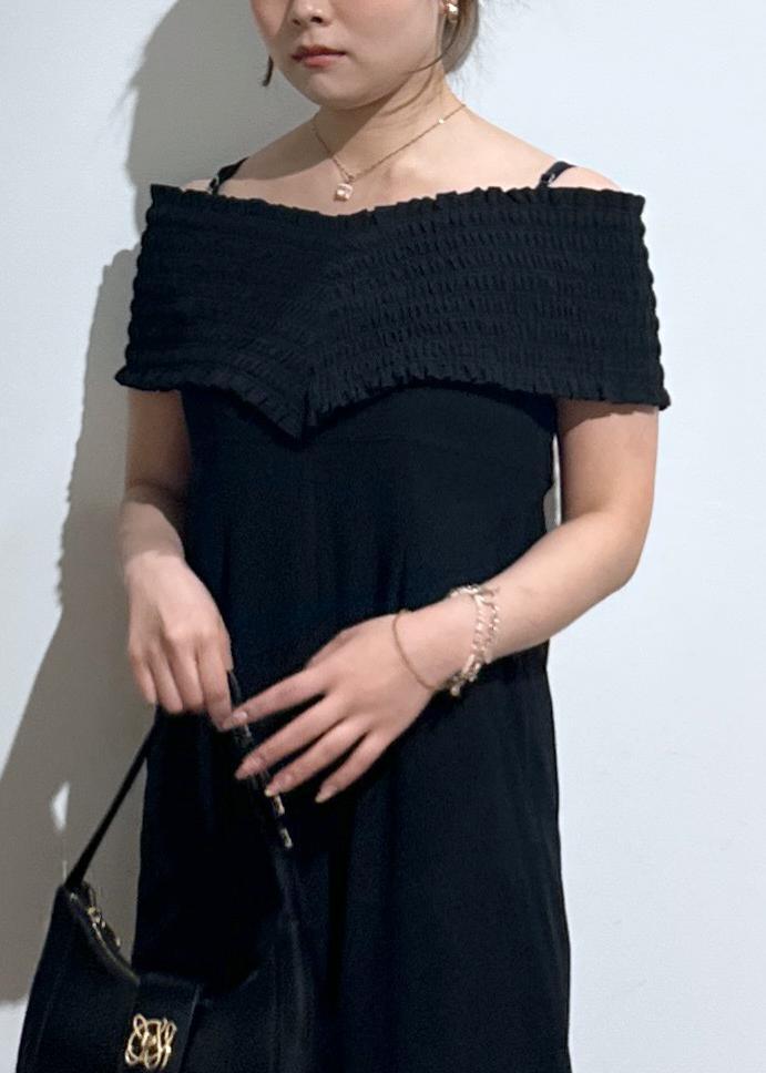 肩をあまり出したくない方は、オンショルダーで着用しても〇 -