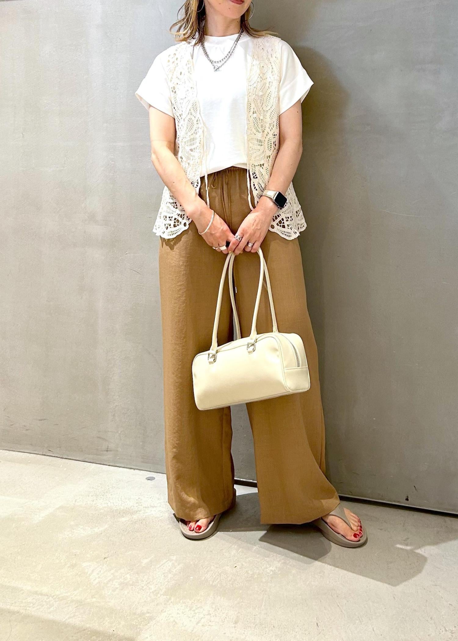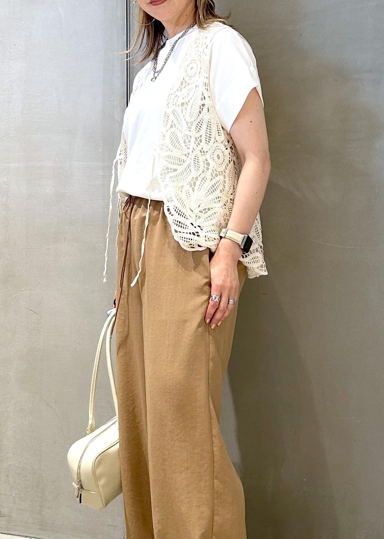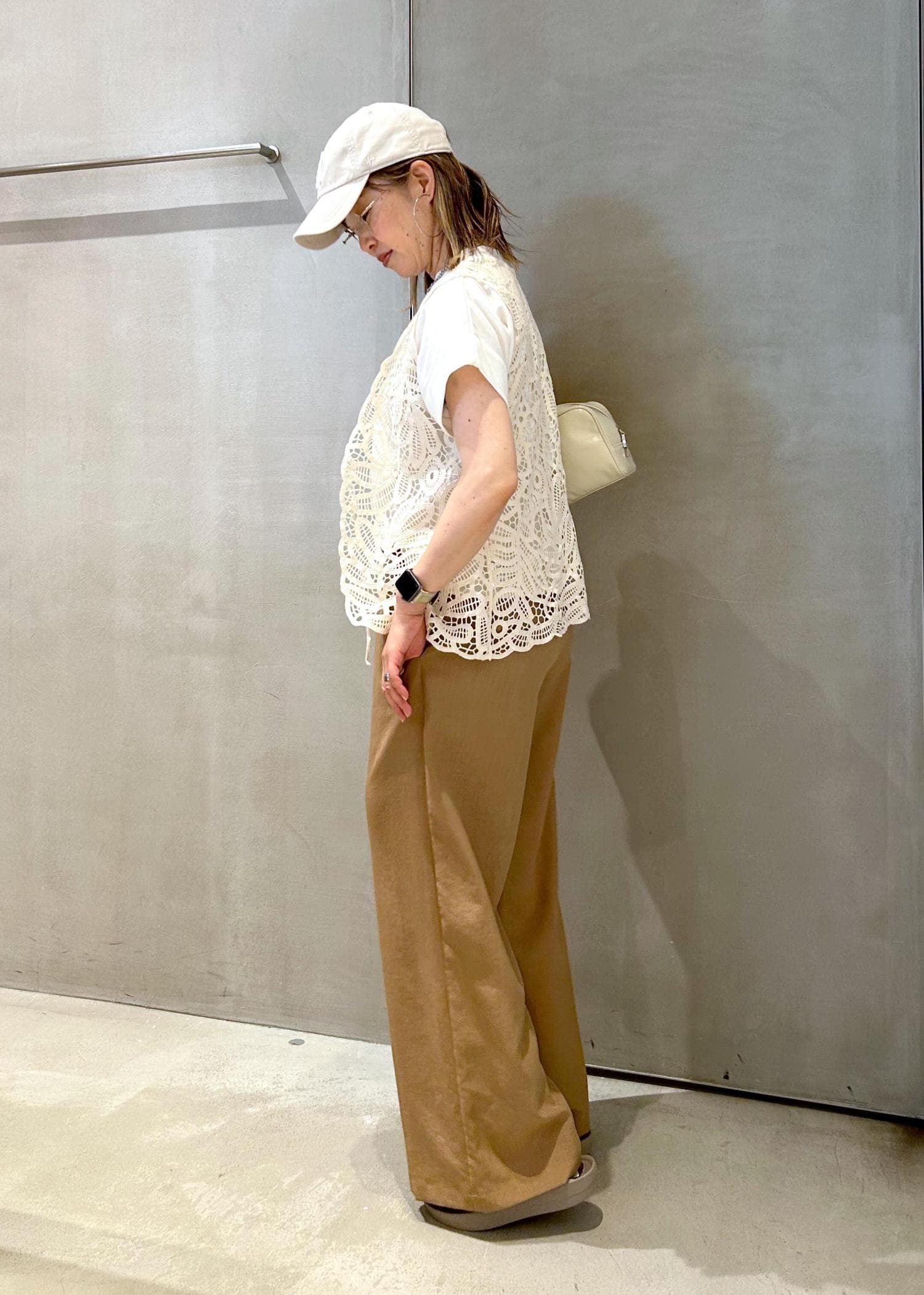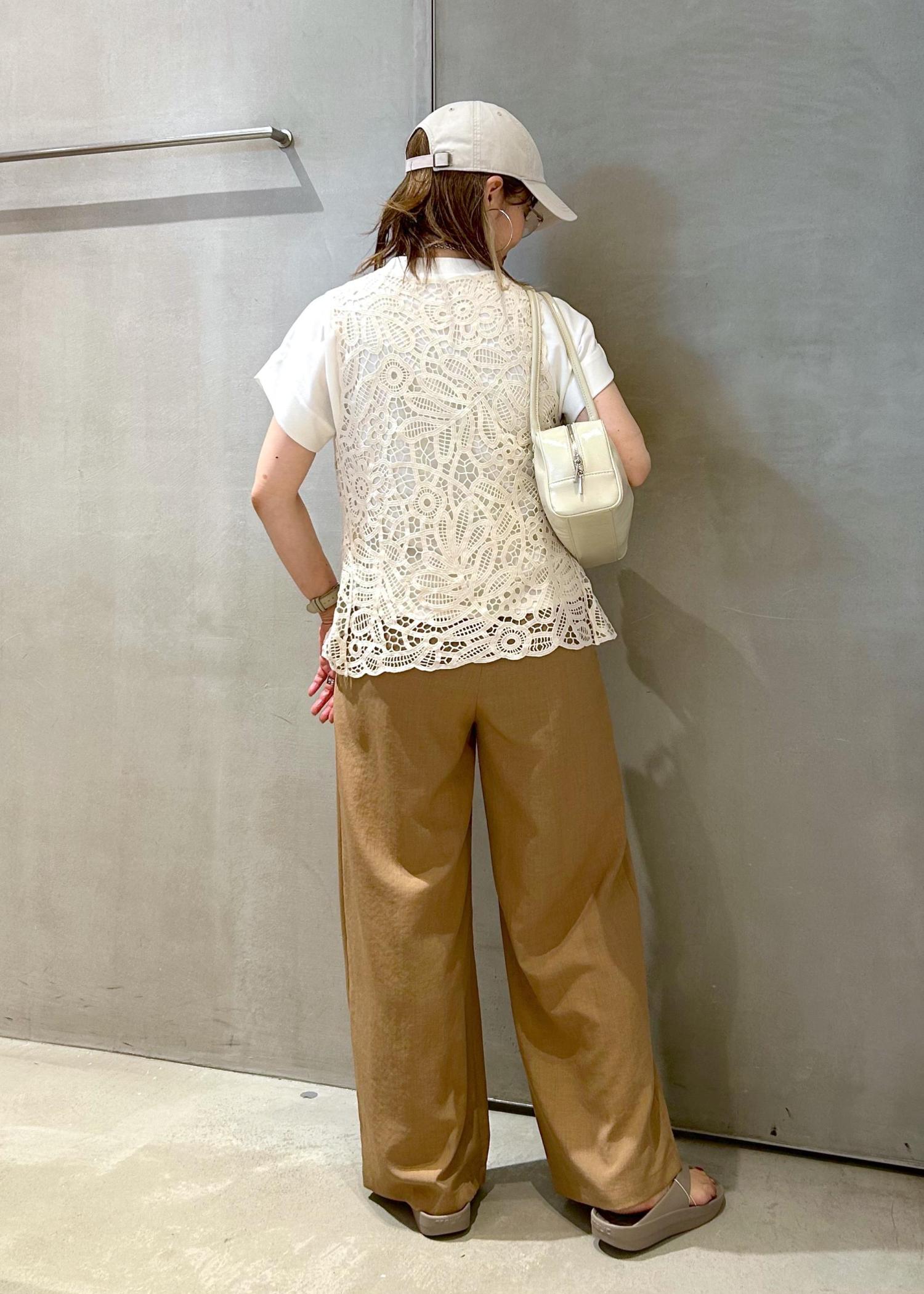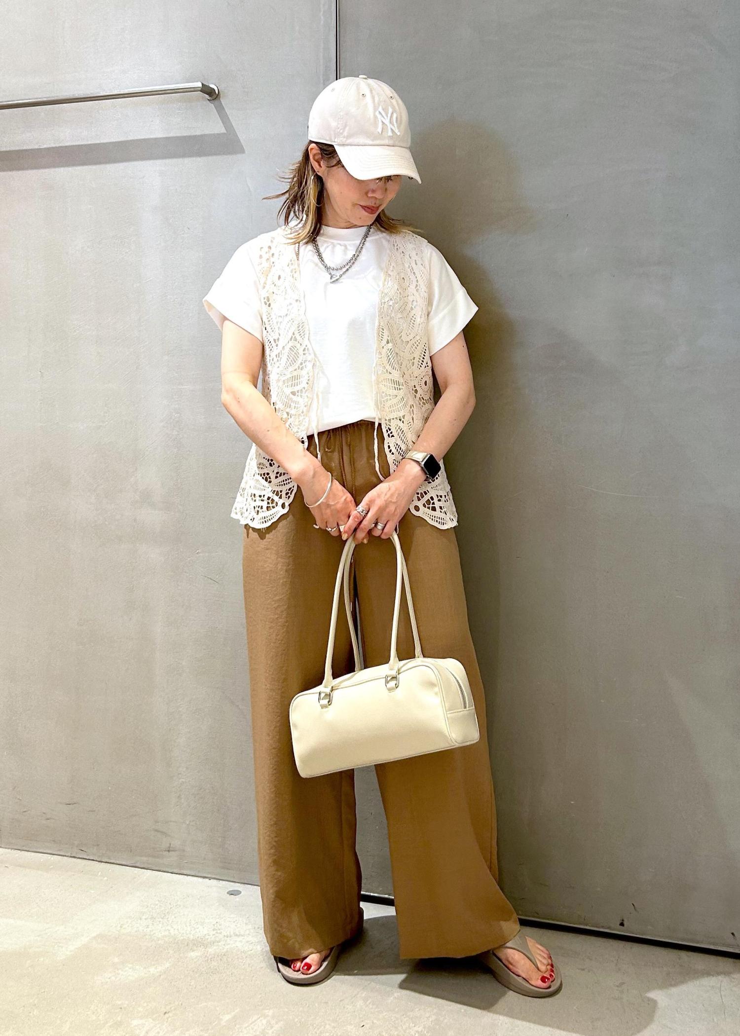 プラスワンアイテムのベストでTシャツコーデを華やかにしてみました。