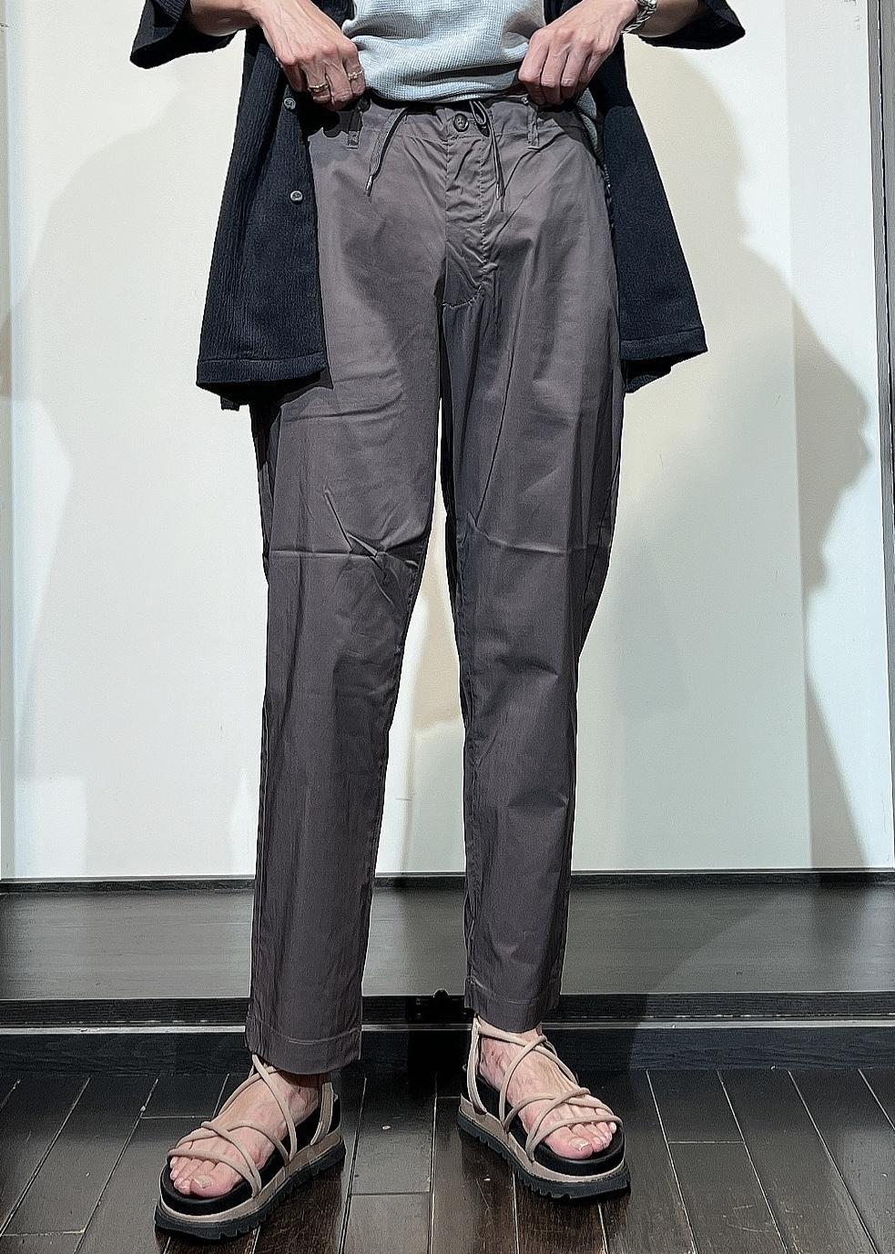 伸縮性のある細身のテーパードで9分丈のイージーパンツです。