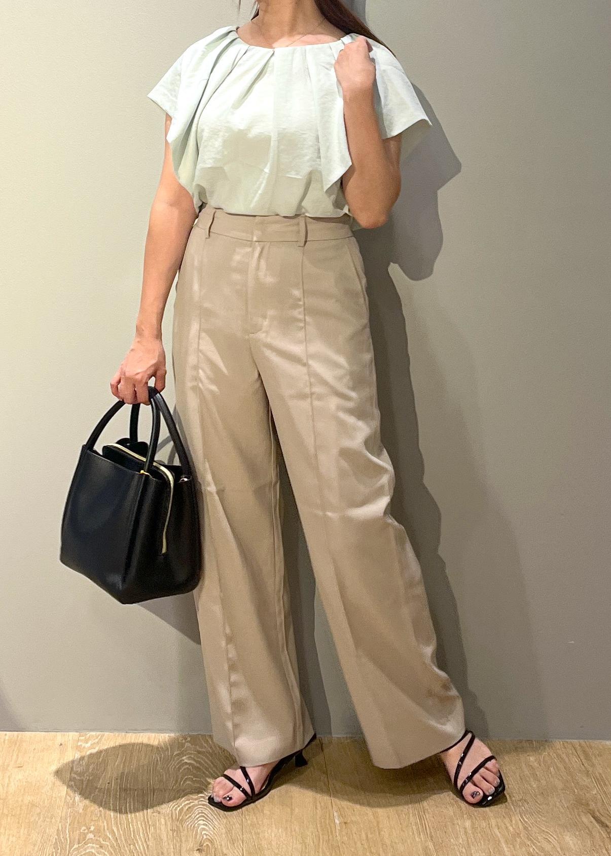 アウトレットROPÉ PICNIC【UVカット・速乾】【リネンライク・シリーズ】ピンタックワイドスラックスパンツ/セットアップ対応ベージュ / 38¥3,993レビュー麻調のサラッとした素材感とUVカット機能付きで暑い夏にもぴったりなパンツです。センタープレスが入っているのでシルエットも美しいです。