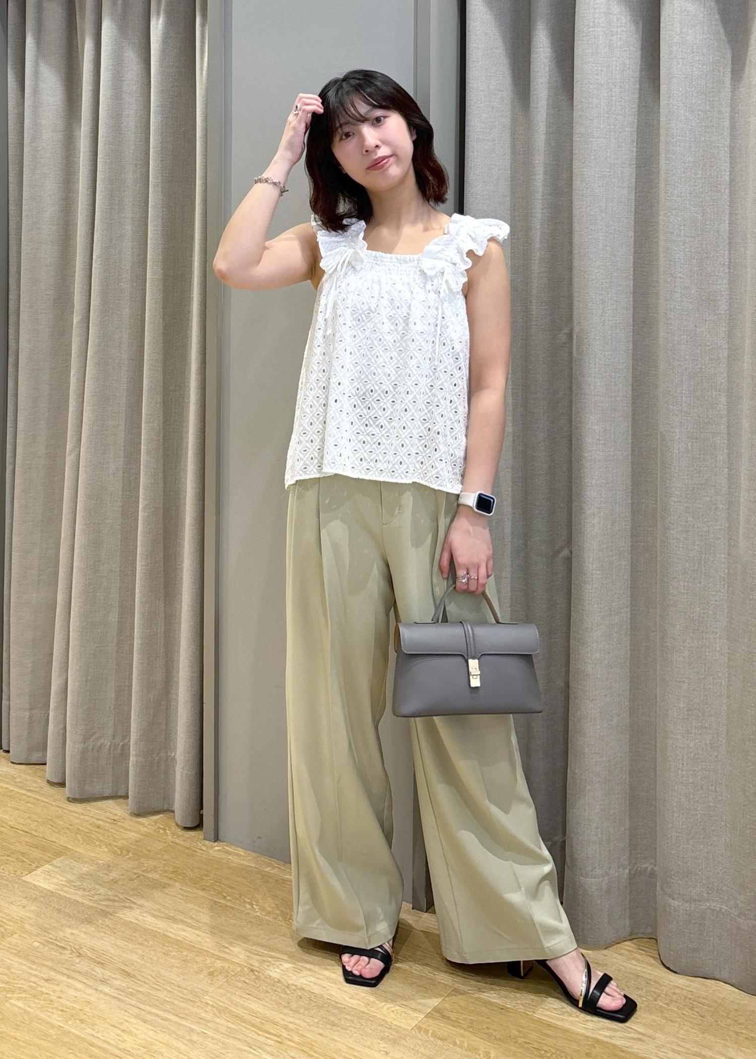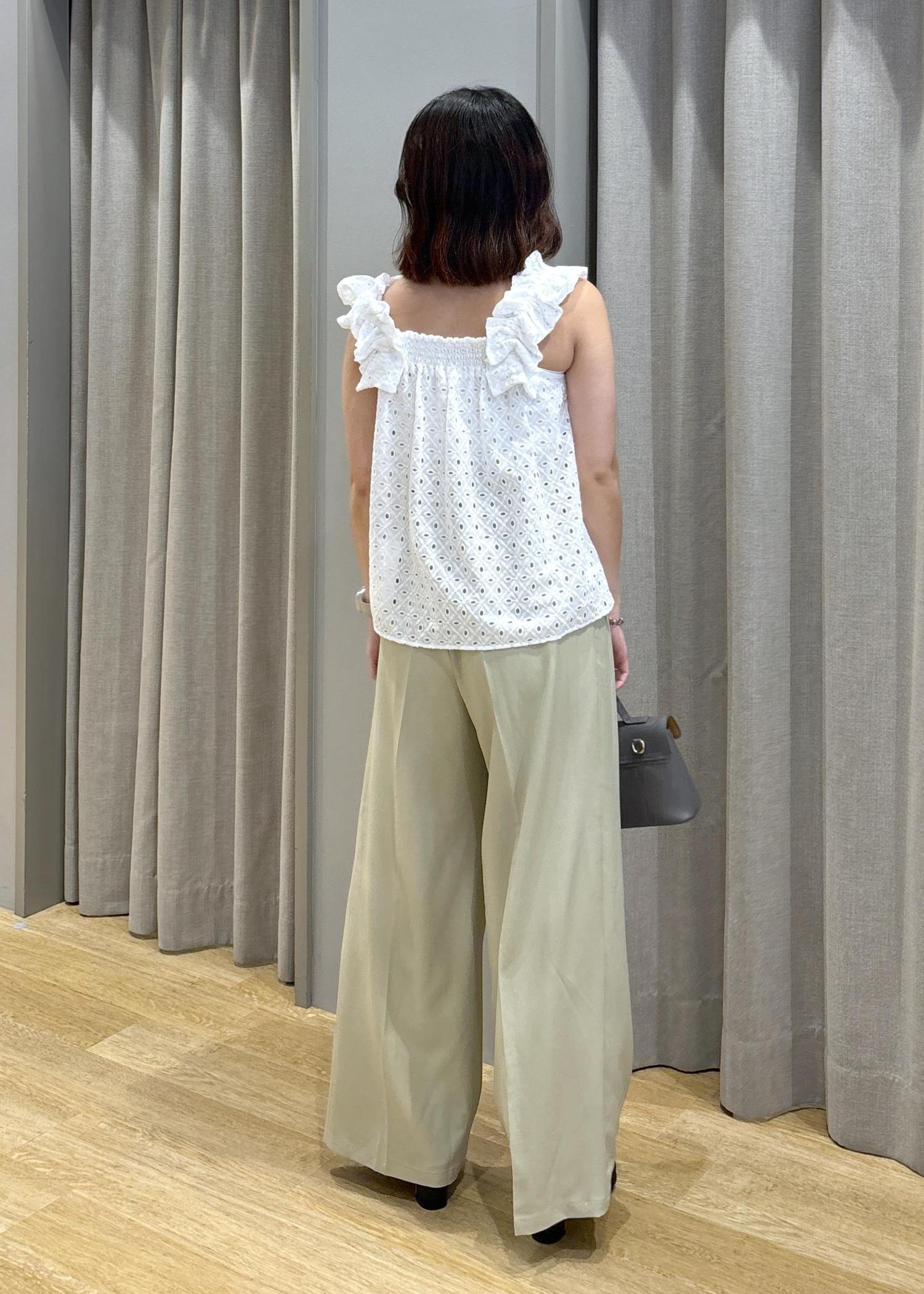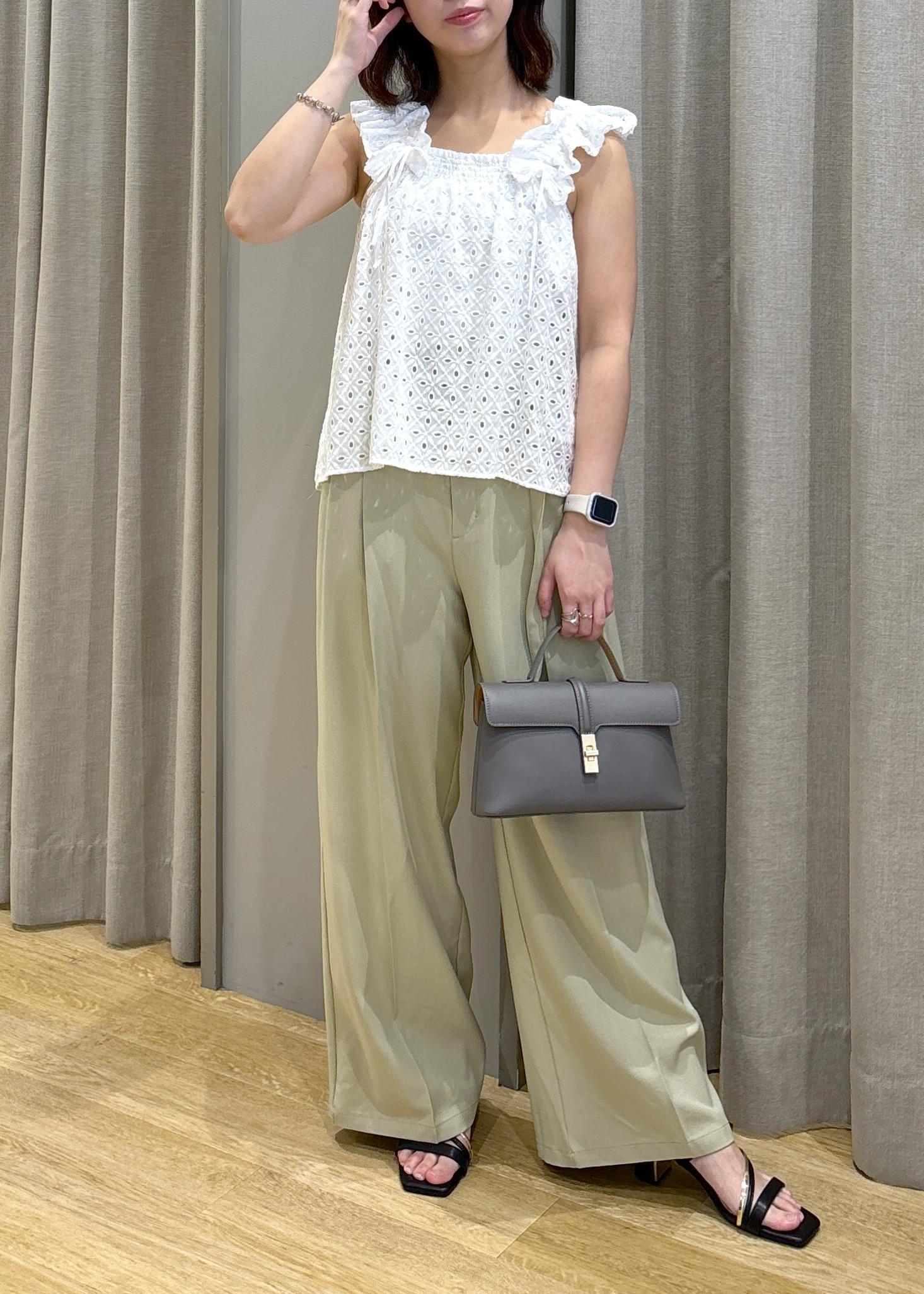 エンブロイダリーレースブラウス×タックワイドスラックス