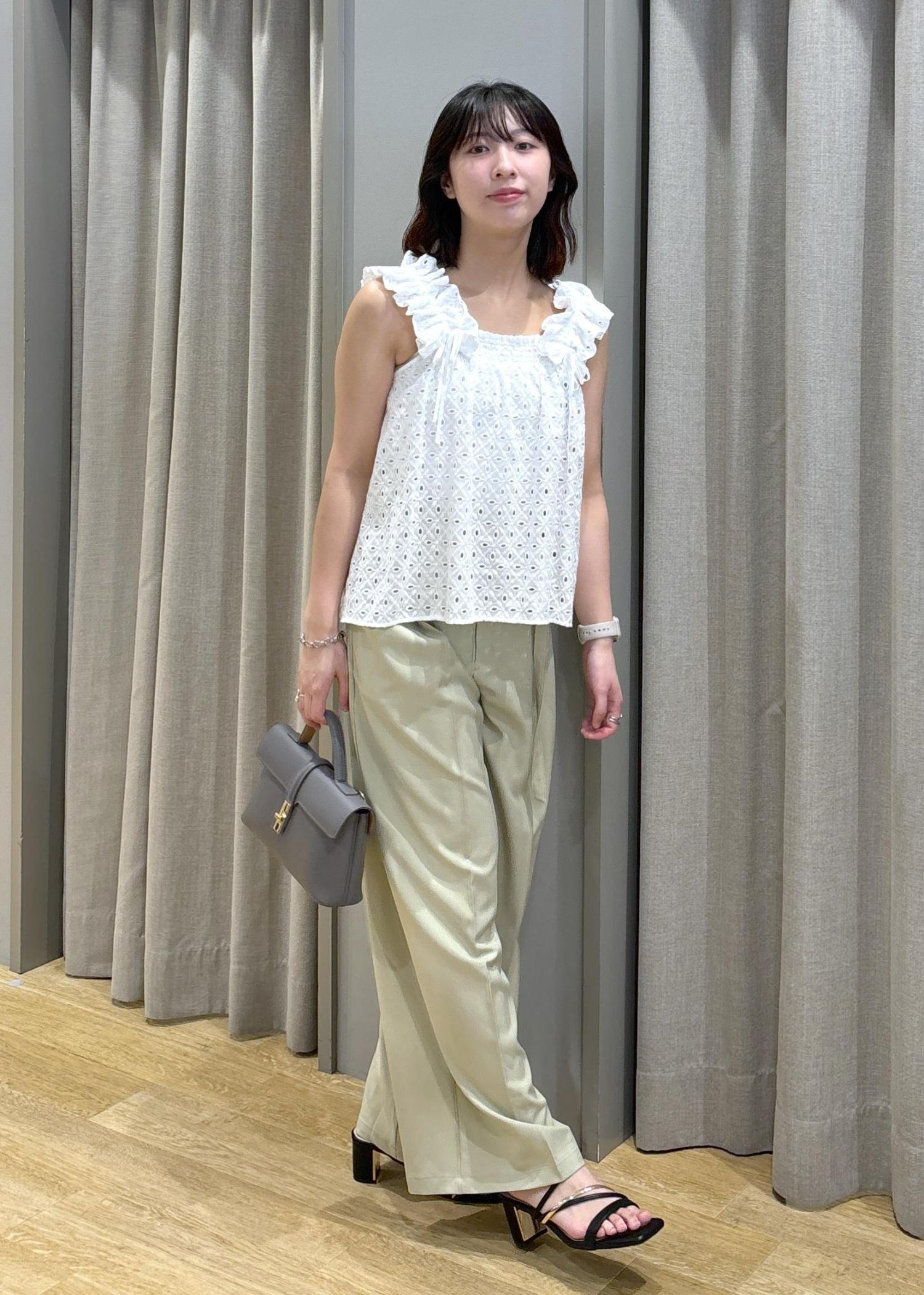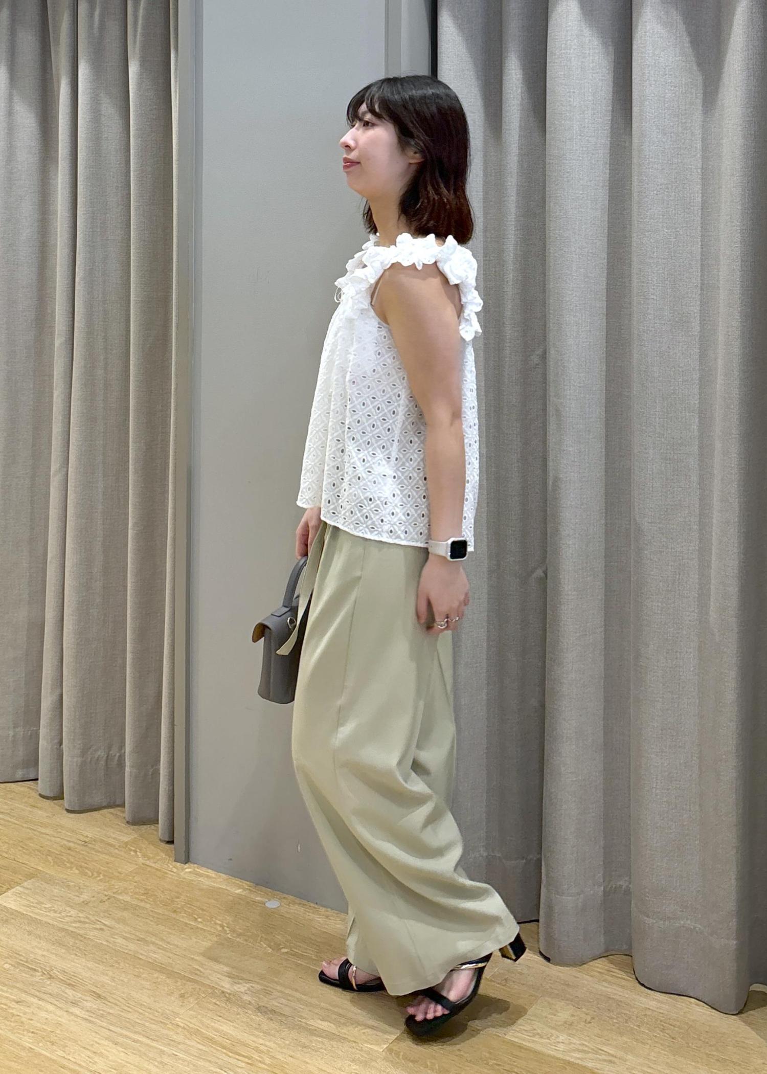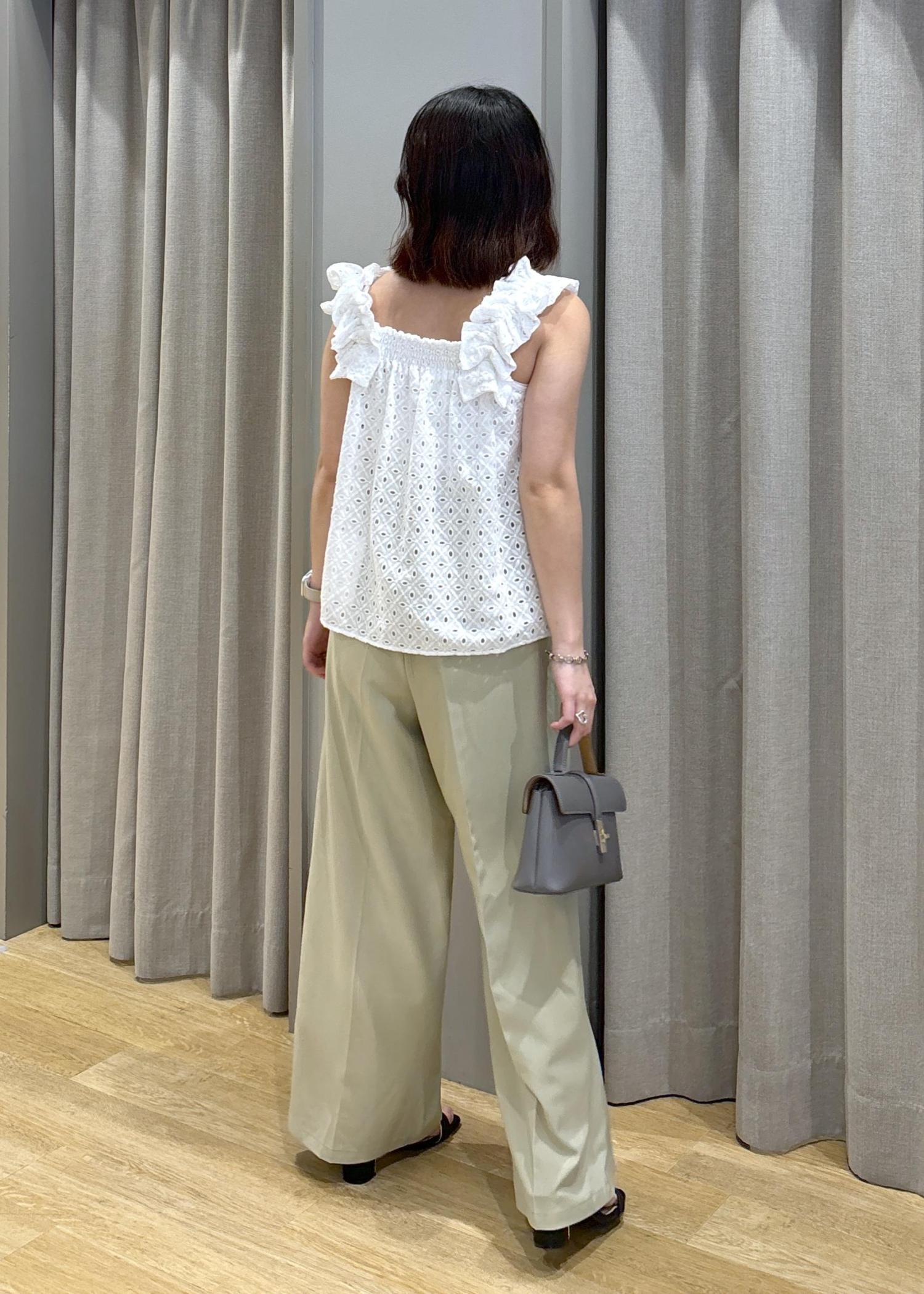 エンブロイダリーレースブラウス×タックワイドスラックス