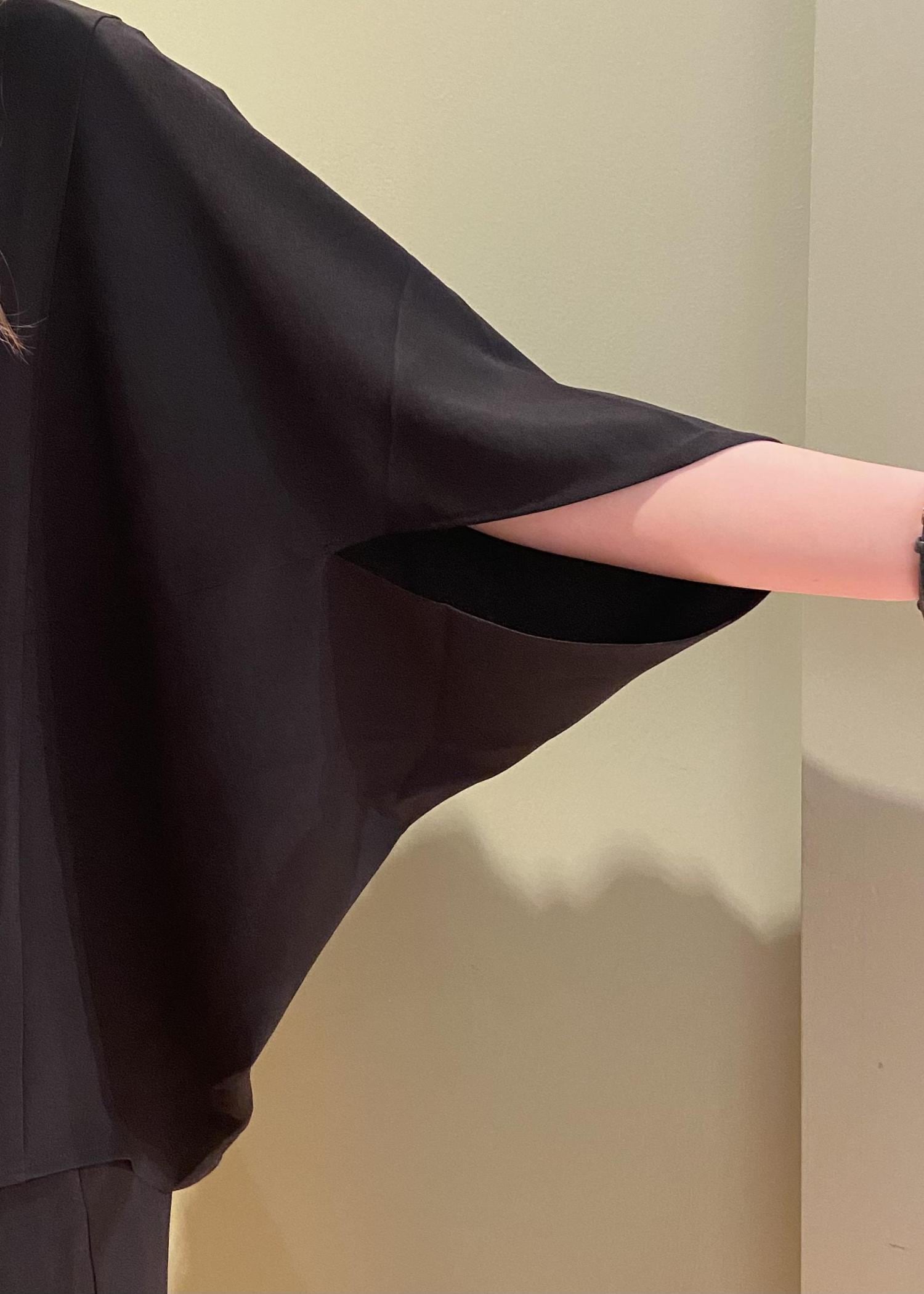 袖は7分袖くらいでドルマンスリーブになっているので二の腕カバーできます。