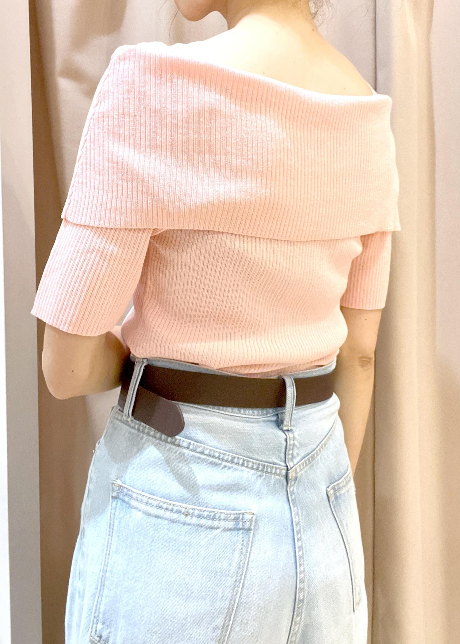 ピンクの【アンチピリング/UVケア/洗える】オフショルハーフスリーブニット