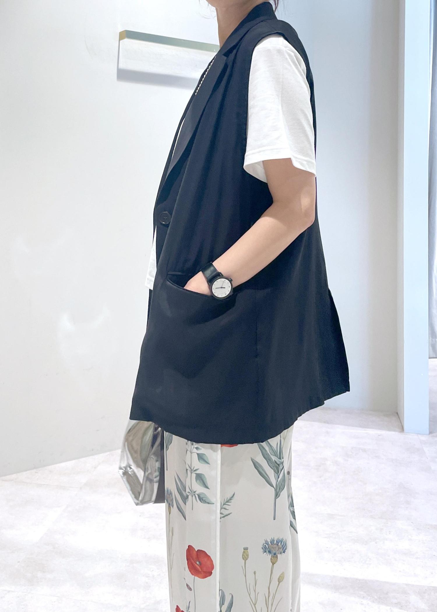 お持ちのTシャツやノースリーブに合わせるだけで簡単に今っぽいこなれ感がでます!