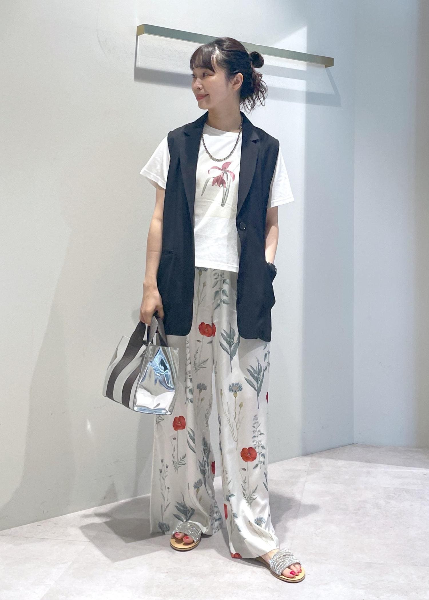 ニューヨーク植物園(NYBG)とLE CERCLE par ropé の別注Tシャツとイージーパンツを合わせたコーディネートです。