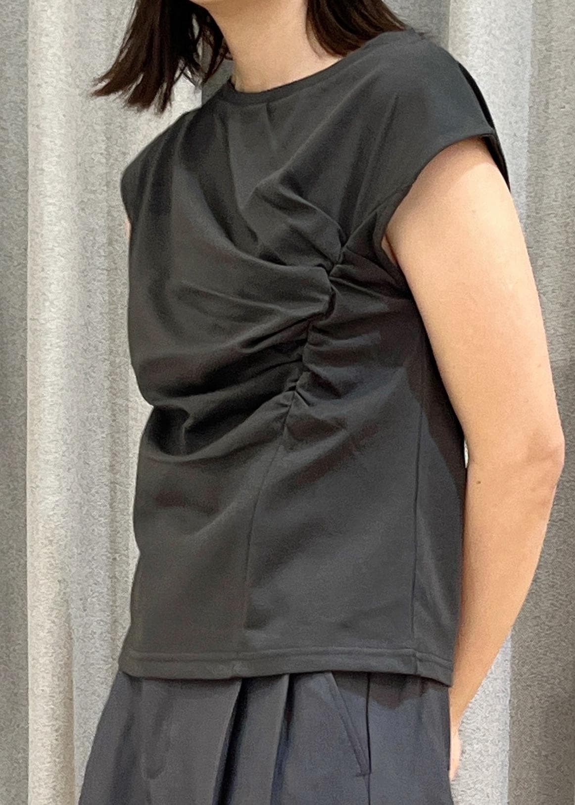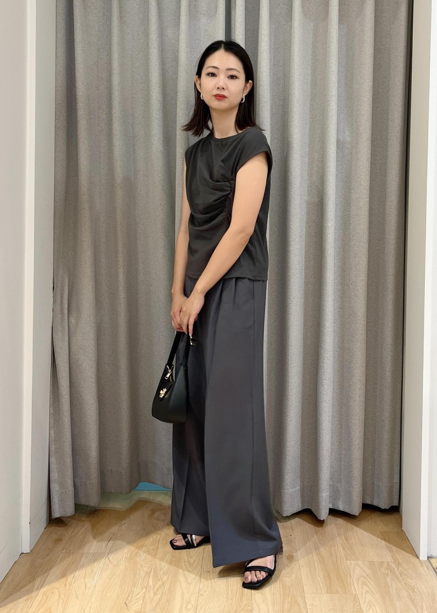 アウトレットVISアシメギャザートップスチャコール / F¥1,975レビューTシャツのようなサラッとした素材です。程よくフィットしてくれて柔らかくインもしやすいです。ヒップにかかるかかからないかの着丈です。
