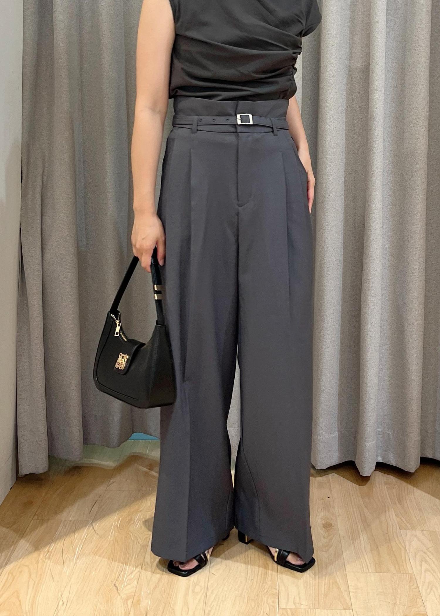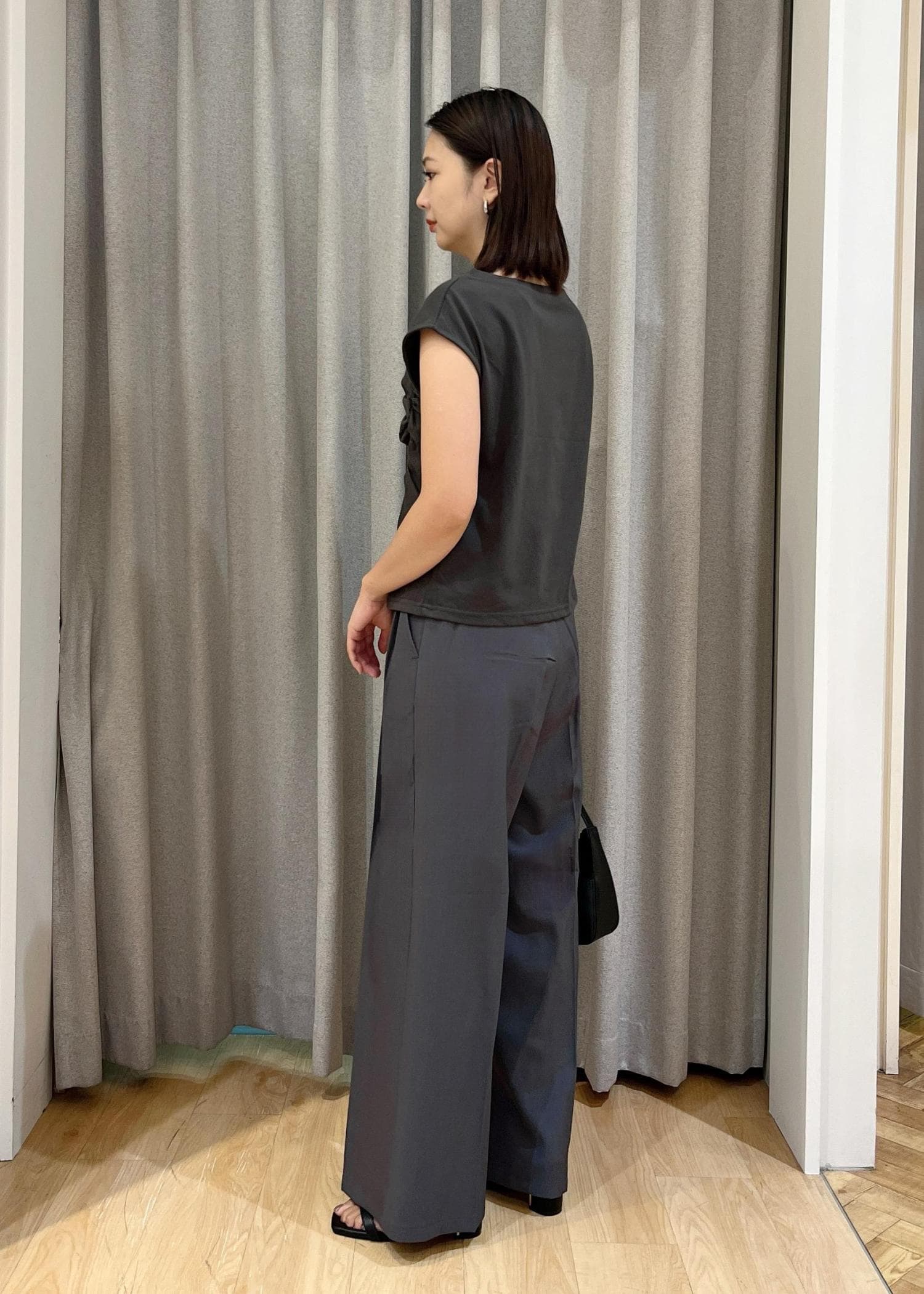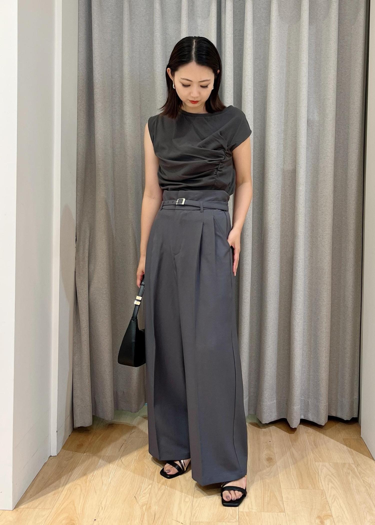 VIS【新色追加】【防シワ/接触冷感】ベルトディテールタックワイドスラックスパンツチャコール / M¥6,589レビューサラッとしていて接触冷感機能付きなのでとても涼しいです。Mサイズでウエスト周りピッタリで着丈は足首あたりです。